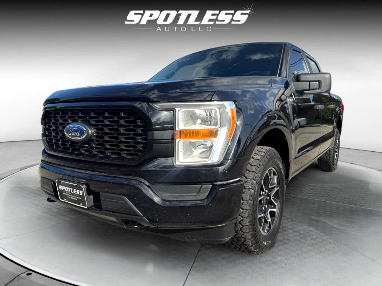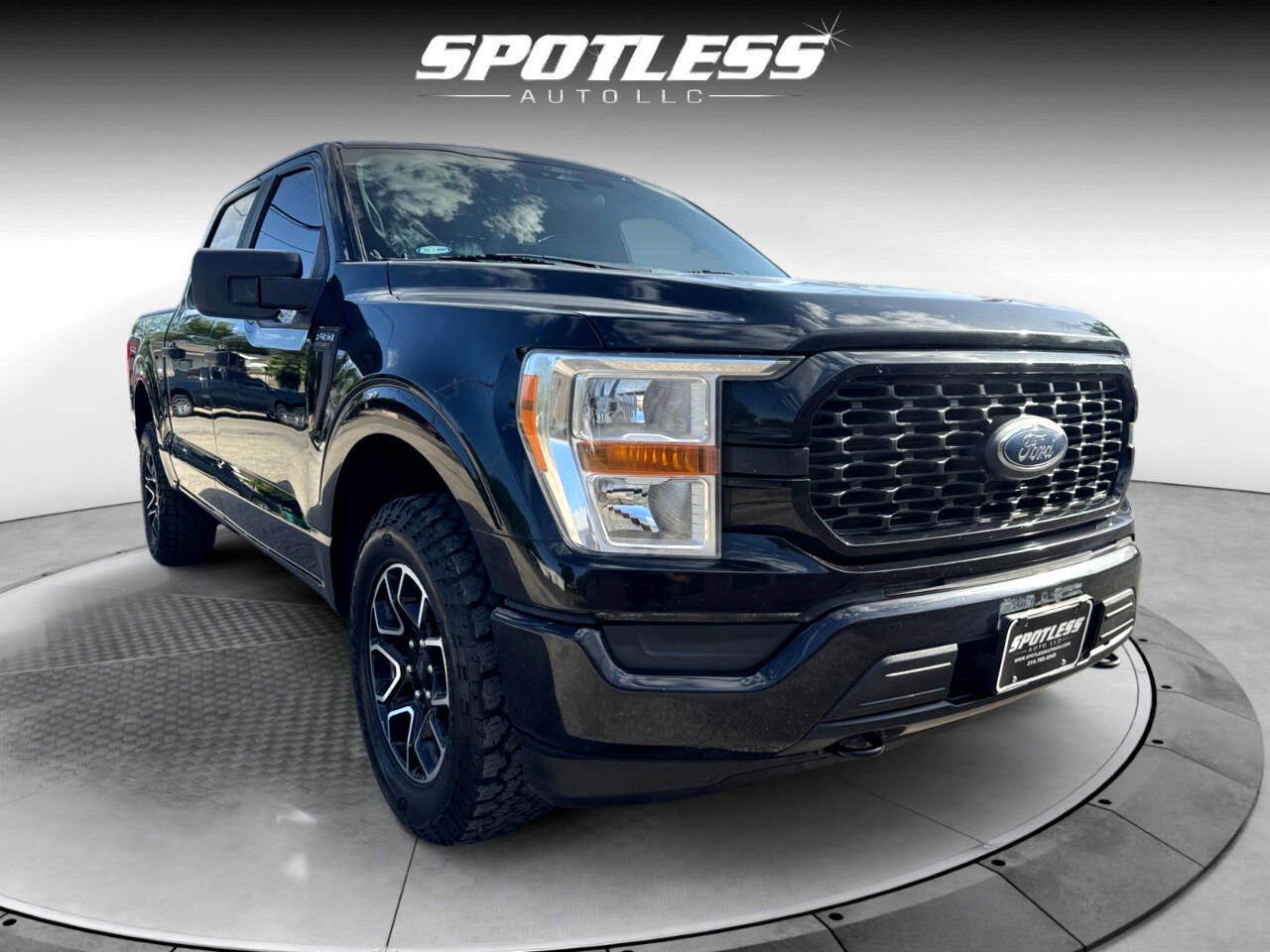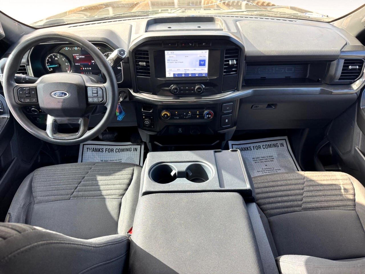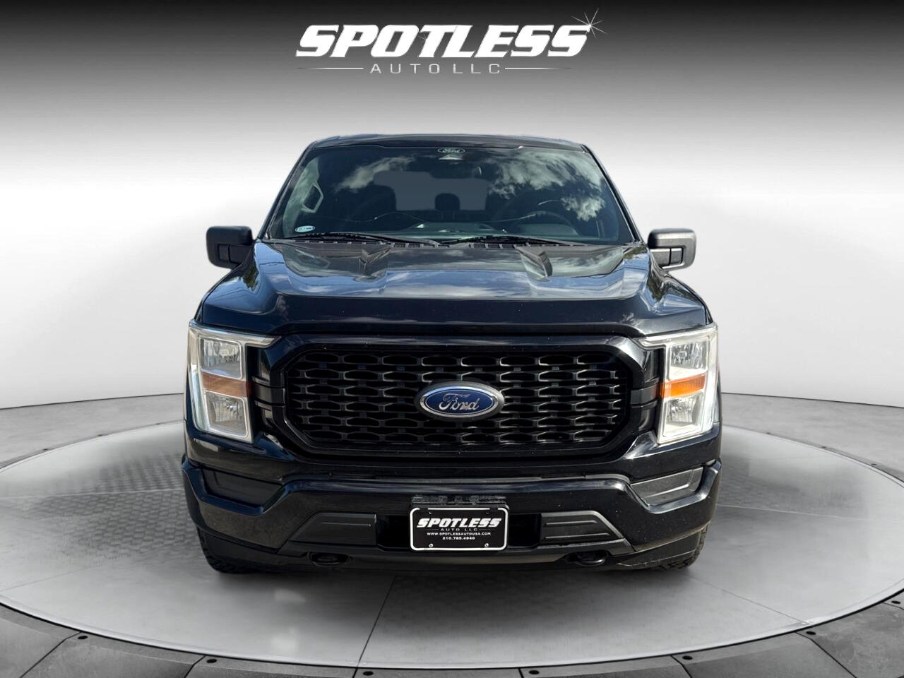 Agate Black Metallic 2022 Ford F-150 XL 4WD 10-Speed Automatic 2.7L V6 EcoBoost 4WD. Equipment Group 101A High (Cruise Control and Reverse Sensing System), FX4 Off-Road Package (4x4 FX4 Off-Road Bodyside Decal, Hill Descent Control, Monotube Rear Shocks, Off-Road Tuned Front Shock Absorbers, and Rock Crawl Mode), GVWR: 6,470 lbs Payload Package, STX Appearance Package (Body-Color Front & Rear Bumpers, Box Side Decals, Molded-In Color Black Honeycomb Style Grille, Radio: AM/FM SiriusXM w/360L, Rear Window Defroster, Rear Window Fixed Privacy Glass, SYNC 4 w/Enhanced Voice Recognition, and Unique Sport Cloth 40/20/40 Front-Seats), 4WD, 3.73 Axle Ratio, 4-Wheel Disc Brakes, 6 Speakers, ABS brakes, Air Conditioning, AM/FM radio, Auto High Beam, Auto High-beam Headlights, Auto Start-Stop Removal, Brake assist, Cloth 40/20/40 Front Seat, Compass, Delay-off headlights, Driver door bin, Dual front impact airbags, Dual front side impact airbags, Electronic Locking w/3.55 Axle Ratio, Electronic Stability Control, Emergency communication system: SYNC 4 911 Assist, Exterior Parking Camera Rear, Front anti-roll bar, Front Center Armrest, Front reading lights, Front wheel independent suspension, Fully automatic headlights, Illuminated entry, Lane-Keeping System, Low tire pressure warning, Occupant sensing airbag, Outside temperature display, Overhead airbag, Overhead console, Panic alarm, Passenger door bin, Passenger vanity mirror, Power door mirrors, Power steering, Power windows, Pre-Collision Assist w/Automatic Emergency Braking, Radio data system, Radio: AM/FM Stereo w/6 Speakers, Rear step bumper, Rear-View Camera, Remote keyless entry, Security system, Speed-sensing steering, Split folding rear seat, Steering wheel mounted audio controls, SYNC 4, Tachometer, Telescoping steering wheel, Tilt steering wheel, Traction control, Trip computer, Variably intermittent wipers, Voltmeter, Wheels: 17" Silver Steel, and Wheels: 18" 6-Spoke Machined Aluminum.