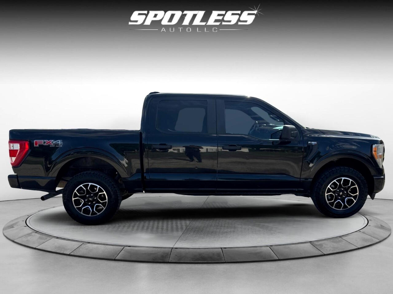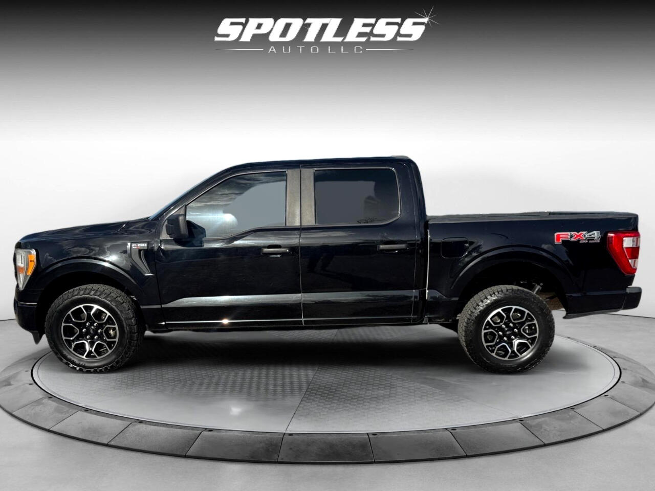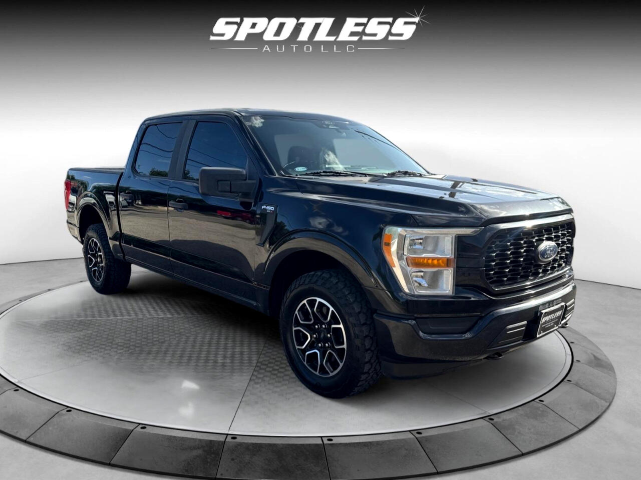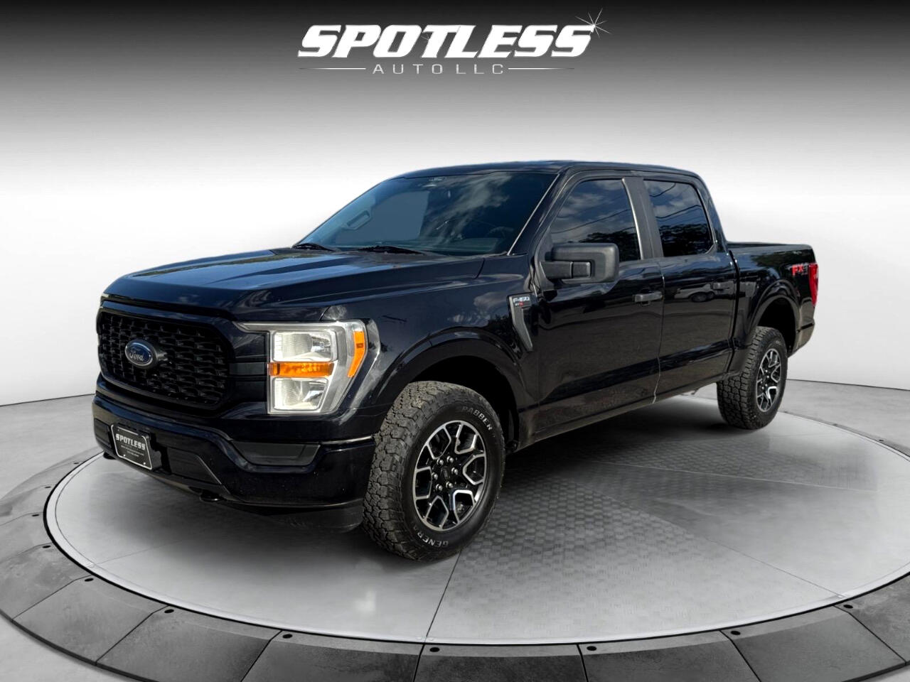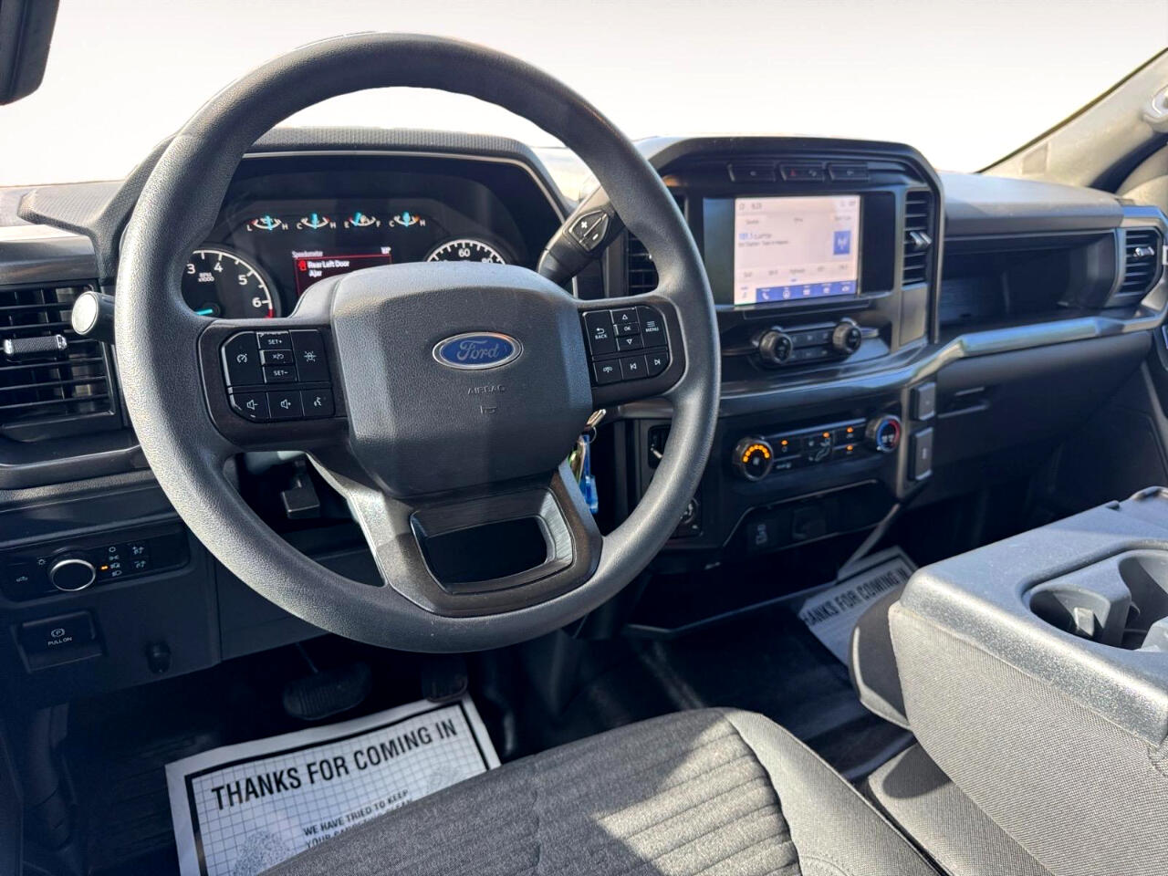 Agate Black Metallic 2022 Ford F-150 XL 4WD 10-Speed Automatic 2.7L V6 EcoBoost 4WD. Equipment Group 101A High (Cruise Control and Reverse Sensing System), FX4 Off-Road Package (4x4 FX4 Off-Road Bodyside Decal, Hill Descent Control, Monotube Rear Shocks, Off-Road Tuned Front Shock Absorbers, and Rock Crawl Mode), GVWR: 6,470 lbs Payload Package, STX Appearance Package (Body-Color Front & Rear Bumpers, Box Side Decals, Molded-In Color Black Honeycomb Style Grille, Radio: AM/FM SiriusXM w/360L, Rear Window Defroster, Rear Window Fixed Privacy Glass, SYNC 4 w/Enhanced Voice Recognition, and Unique Sport Cloth 40/20/40 Front-Seats), 4WD, 3.73 Axle Ratio, 4-Wheel Disc Brakes, 6 Speakers, ABS brakes, Air Conditioning, AM/FM radio, Auto High Beam, Auto High-beam Headlights, Auto Start-Stop Removal, Brake assist, Cloth 40/20/40 Front Seat, Compass, Delay-off headlights, Driver door bin, Dual front impact airbags, Dual front side impact airbags, Electronic Locking w/3.55 Axle Ratio, Electronic Stability Control, Emergency communication system: SYNC 4 911 Assist, Exterior Parking Camera Rear, Front anti-roll bar, Front Center Armrest, Front reading lights, Front wheel independent suspension, Fully automatic headlights, Illuminated entry, Lane-Keeping System, Low tire pressure warning, Occupant sensing airbag, Outside temperature display, Overhead airbag, Overhead console, Panic alarm, Passenger door bin, Passenger vanity mirror, Power door mirrors, Power steering, Power windows, Pre-Collision Assist w/Automatic Emergency Braking, Radio data system, Radio: AM/FM Stereo w/6 Speakers, Rear step bumper, Rear-View Camera, Remote keyless entry, Security system, Speed-sensing steering, Split folding rear seat, Steering wheel mounted audio controls, SYNC 4, Tachometer, Telescoping steering wheel, Tilt steering wheel, Traction control, Trip computer, Variably intermittent wipers, Voltmeter, Wheels: 17" Silver Steel, and Wheels: 18" 6-Spoke Machined Aluminum.