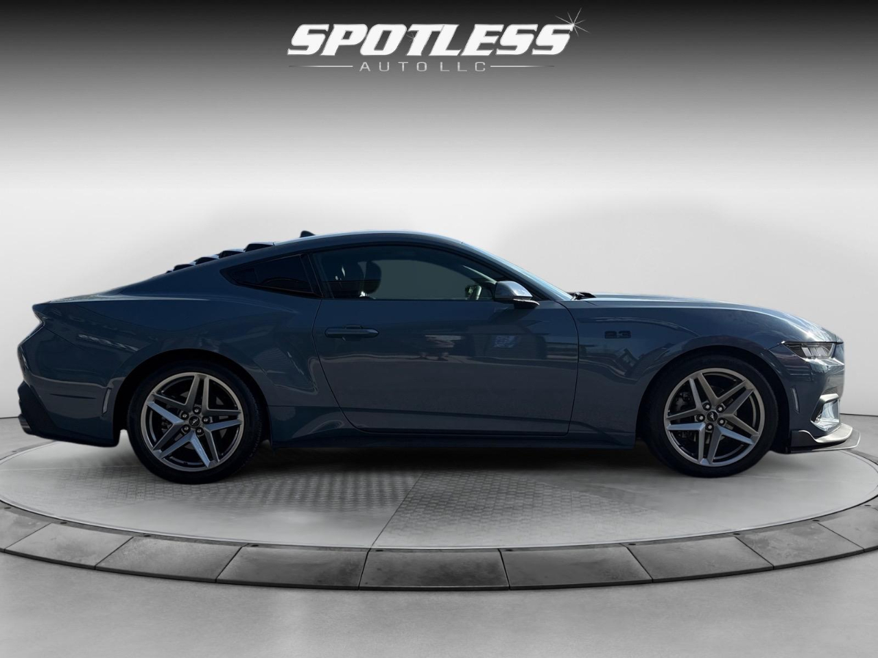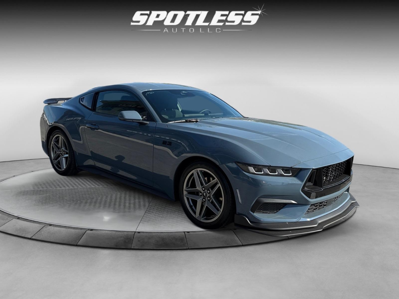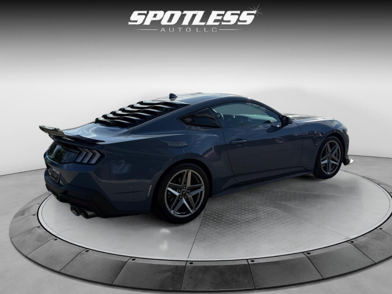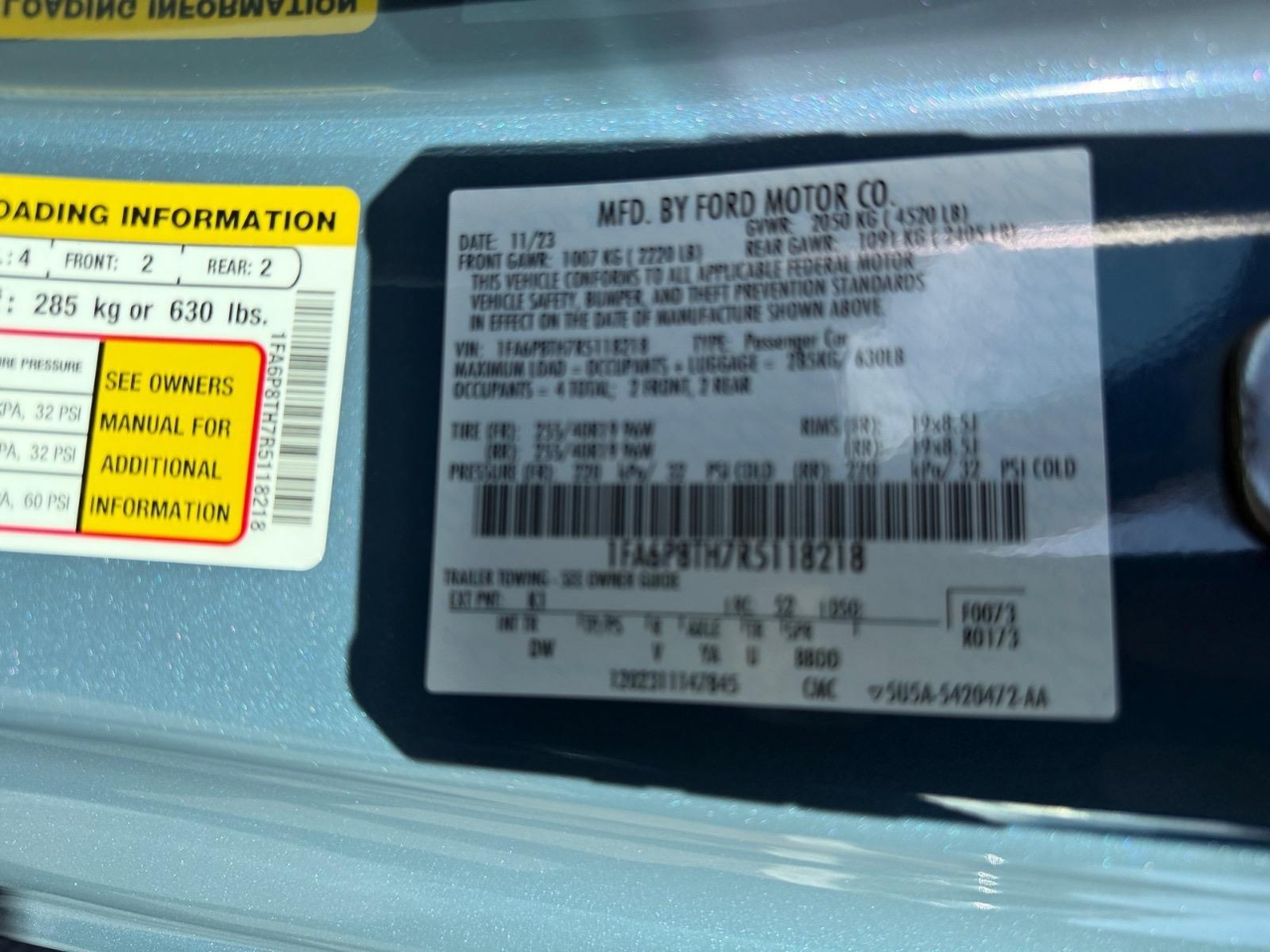 Odometer is 14817 miles below market average! 22/33 City/Highway MPG Vapor Blue Metallic 2024 Ford Mustang EcoBoost RWD 10-Speed Automatic EcoBoost 2.3L I4 GTDi DOHC Turbocharged VCT 4-Wheel Disc Brakes, ABS brakes, Air Conditioning, Alloy wheels, AM/FM Stereo, Auto High-beam Headlights, Automatic temperature control, Brake assist, Bumpers: body-color, Compass, Delay-off headlights, Driver door bin, Driver vanity mirror, Dual front impact airbags, Dual front side impact airbags, Electronic Stability Control, Emergency communication system: 911 Assist, Exterior Parking Camera Rear, Four wheel independent suspension, Front anti-roll bar, Front Bucket Seats, Front Center Armrest, Front reading lights, Fully automatic headlights, Illuminated entry, Knee airbag, Leather Shift Knob, Low tire pressure warning, Occupant sensing airbag, Outside temperature display, Overhead airbag, Overhead console, Panic alarm, Passenger door bin, Passenger vanity mirror, Power door mirrors, Power steering, Power windows, Radio data system, Rain sensing wipers, Rear anti-roll bar, Rear Parking Sensors, Rear window defroster, Remote keyless entry, Speed control, Speed-sensing steering, Speed-Sensitive Wipers, Split folding rear seat, Sport steering wheel, Steering wheel mounted audio controls, SYNC 4.0 QNX, Tachometer, Telescoping steering wheel, Tilt steering wheel, Traction control, Trip computer, Variably intermittent wipers, Voltmeter, Wheels: 18" x 8" Machined-Face Aluminum, and Wheels: 19" x 8.5" Premier Polished Aluminum.