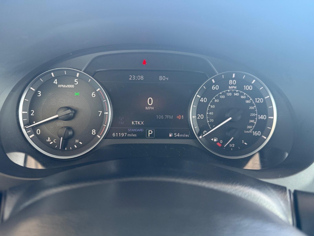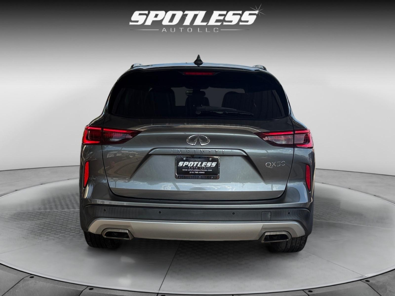 Odometer is 10330 miles below market average! 23/29 City/Highway MPG Graphite Shadow 2020 INFINITI QX50 LUXE FWD CVT I4 Cargo Package, 4-Wheel Disc Brakes, 5.846 Axle Ratio, 6 Speakers, ABS brakes, Air Conditioning, Alloy wheels, AM/FM radio: SiriusXM, AM/FM/CD Audio System, Anti-whiplash front head restraints, Apple CarPlay/Android Auto, Auto High-beam Headlights, Auto-dimming Rear-View mirror, Automatic temperature control, Blind Spot Warning, Brake assist, Bumpers: body-color, CD player, Delay-off headlights, Driver door bin, Driver vanity mirror, Dual front impact airbags, Dual front side impact airbags, Electronic Stability Control, Exterior Parking Camera Rear, Floor Mats, Four wheel independent suspension, Front anti-roll bar, Front Bucket Seats, Front Center Armrest, Front dual zone A/C, Front fog lights, Front reading lights, Garage door transmitter: HomeLink, Illuminated entry, Illuminated Kick Plates, Knee airbag, Leather Shift Knob, Leatherette Seat Trim, Literature Kit, Low tire pressure warning, Occupant sensing airbag, Outside temperature display, Overhead airbag, Overhead console, Panic alarm, Passenger door bin, Passenger vanity mirror, Power door mirrors, Power driver seat, Power Liftgate, Power moonroof, Power passenger seat, Power steering, Power windows, Radio data system, Rear anti-roll bar, Rear Parking Sensors, Rear reading lights, Rear seat center armrest, Rear window defroster, Rear window wiper, Remote keyless entry, Security system, Speed control, Speed-sensing steering, Speed-Sensitive Wipers, Splash Guards (Set of 4), Split folding rear seat, Spoiler, Steering wheel mounted audio controls, Tachometer, Telescoping steering wheel, Tilt steering wheel, Traction control, Trip computer, Turn signal indicator mirrors, Variably intermittent wipers, Welcome Lighting, and Wheels: 19" x 7.5J Silver Painted Aluminum Alloy.