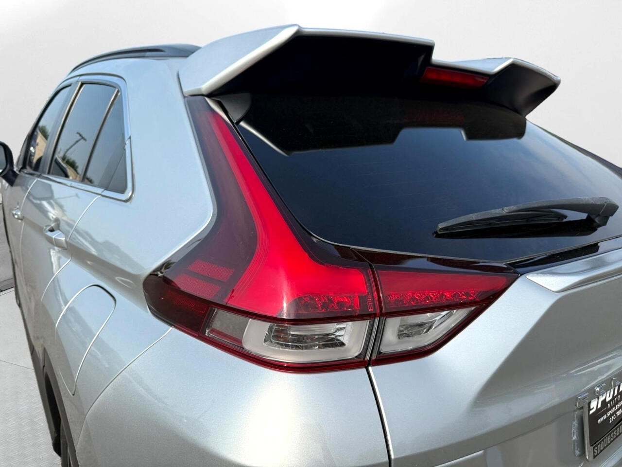 25/28 City/Highway MPG Silver 2022 Mitsubishi Eclipse Cross SE FWD CVT 1.5L I4 DI Turbocharged DOHC 16V LEV3-ULEV70 152hp 4-Wheel Disc Brakes, 6 Speakers, 6.386 Axle Ratio, ABS brakes, Air Conditioning, Alloy wheels, AM/FM radio: SiriusXM, Android Auto & Apple CarPlay, Auto High-beam Headlights, Auto-dimming Rear-View mirror, Automatic temperature control, Brake assist, Bumpers: body-color, Delay-off headlights, Driver door bin, Driver vanity mirror, Dual front impact airbags, Dual front side impact airbags, Electronic Stability Control, Emergency communication system, Exterior Parking Camera Rear, Four wheel independent suspension, Front anti-roll bar, Front Bucket Seats, Front Center Armrest, Front dual zone A/C, Front fog lights, Front reading lights, Fully automatic headlights, Heated door mirrors, Heated Front Bucket Seats, Heated front seats, Illuminated entry, Knee airbag, Leather Shift Knob, Low tire pressure warning, Navigation System, Occupant sensing airbag, Outside temperature display, Overhead airbag, Overhead console, Panic alarm, Passenger door bin, Passenger vanity mirror, Power door mirrors, Power driver seat, Power steering, Power windows, Radio data system, Radio: AM/FM 8.0" Nav System w/Smartphone-Link, Rain sensing wipers, Rear anti-roll bar, Rear seat center armrest, Rear window defroster, Rear window wiper, Remote keyless entry, Security system, Speed control, Speed-sensing steering, Split folding rear seat, Spoiler, Steering wheel mounted audio controls, Synthetic Suede Seating Surfaces, Tachometer, Telescoping steering wheel, Tilt steering wheel, Traction control, Trip computer, Turn signal indicator mirrors, Variably intermittent wipers, and Wheels: 18" x 7.0J Two-Tone Alloy.