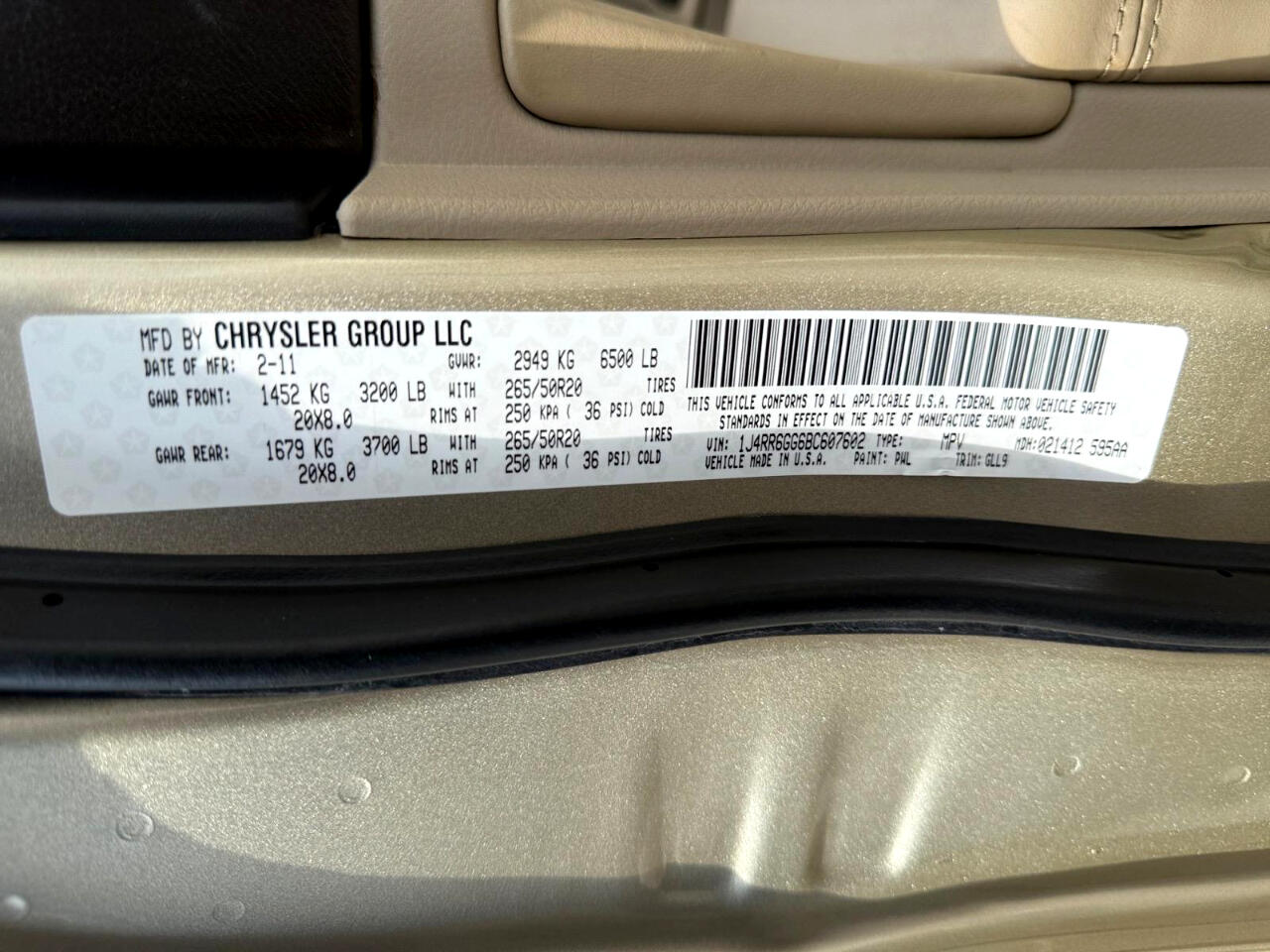 White Gold Clearcoat 2011 Jeep Grand Cherokee Overland 4WD 5-Speed Automatic 3.6L V6 Flex Fuel 24V VVT 4WD. Quick Order Package 26P, Trailer Tow Group (7 & 4 Pin Wiring Harness, Class IV Receiver Hitch, and Rear Load Leveling Suspension), 4WD, 10 Speakers, 20" x 8.0" Aluminum Painted Wheels, 3.09 Axle Ratio, 30GB HDD w/4,250-Song Capacity, 4-Wheel Disc Brakes, 6.5" Touch Screen Display, ABS brakes, Air Conditioning, Alloy wheels, AM/FM radio: SIRIUS, Anti-whiplash front head restraints, Audio Jack Input for Mobile Devices, Audio memory, Auto High-beam Headlights, Auto-dimming door mirrors, Auto-dimming Rear-View mirror, Auto-leveling suspension, Automatic temperature control, Bodyside moldings, Brake assist, Bumpers: body-color, CD player, Chrome Exterior Mirrors, Compass, Delay-off headlights, Driver door bin, Driver vanity mirror, Dual front impact airbags, Dual front side impact airbags, DVD-Audio, Electronic Stability Control, Exterior Parking Camera Rear, Four wheel independent suspension, Front anti-roll bar, Front Bucket Seats, Front Center Armrest w/Storage, Front dual zone A/C, Front fog lights, Front reading lights, Fully automatic headlights, Garage door transmitter, Genuine wood dashboard insert, GPS Navigation, Heated door mirrors, Heated front seats, Heated rear seats, Heated steering wheel, High-Intensity Discharge Headlights, Illuminated entry, Leather Shift Knob, Leather steering wheel, Leather Trim Seats w/Edge Welting, Low tire pressure warning, Media Center 430N CD/DVD/MP3/HDD/Navigation, Media Center 730N CD/DVD/MP3/HDD/Navigation, Memory seat, Navigation system: Garmin, Normal Duty Suspension, Occupant sensing airbag, Outside temperature display, Overhead airbag, Overhead console, Panic alarm, Passenger door bin, Passenger vanity mirror, Power door mirrors, Power driver seat, Power Liftgate, Power moonroof, Power passenger seat, Power steering, Power windows, Radio data system, Rain sensing wipers, Rear anti-roll bar, Rear Parking Sensors, Rear reading lights, Rear seat center armrest, Rear window defroster, Rear window wiper, Remote keyless entry, Remote USB Port, Roof rack: rails only, Security system, SIRIUS Realtime Traffic, SIRIUS Traffic, SIRIUS Travel Link, Speed control, Speed-Sensitive Wipers, Split folding rear seat, Spoiler, Steering wheel mounted audio controls, Tachometer, Telescoping steering wheel, Tilt steering wheel, Traction control, Trip computer, Turn signal indicator mirrors, Uconnect Voice Command w/Bluetooth, Variably intermittent wipers, and Ventilated front seats.
