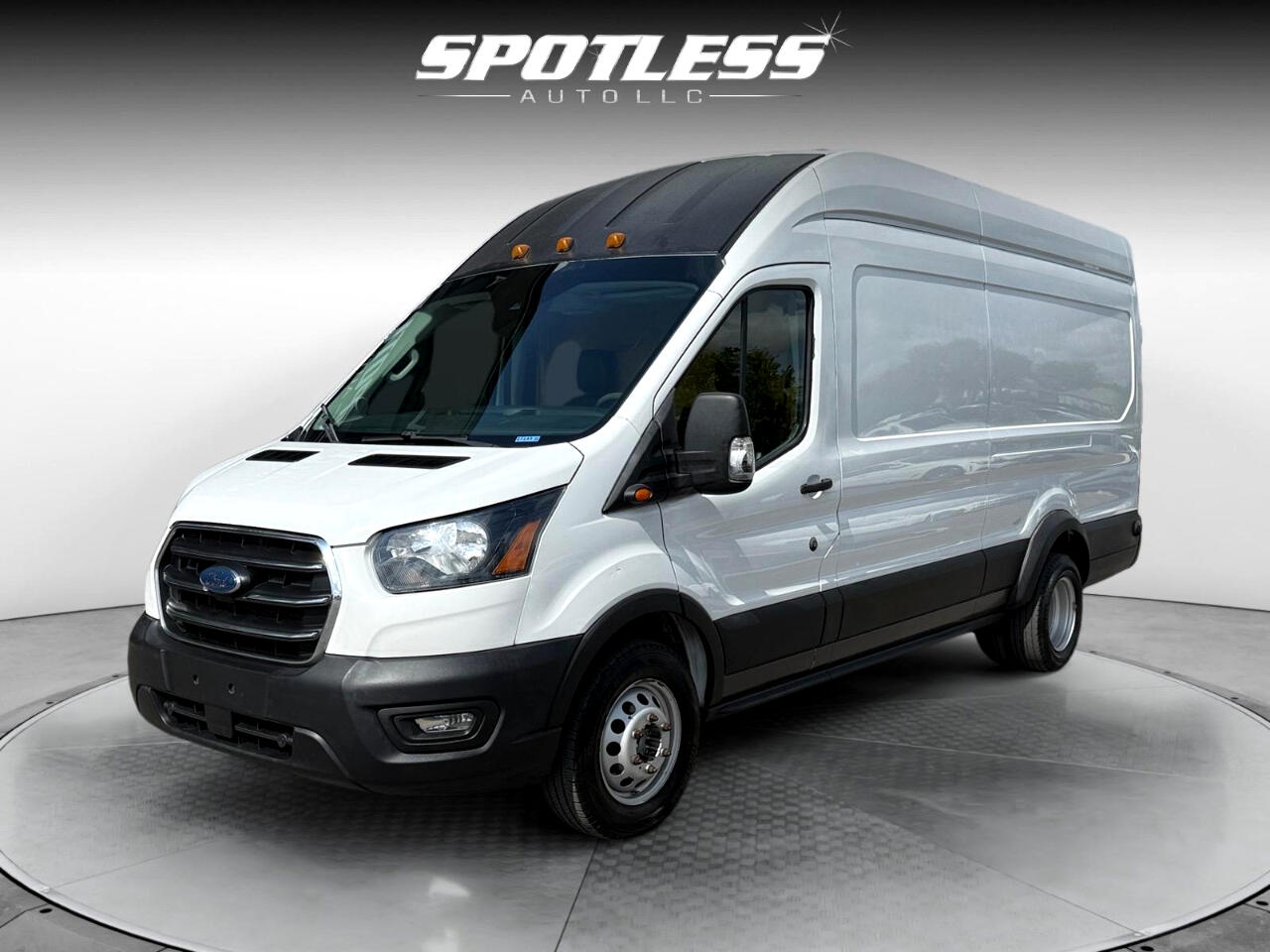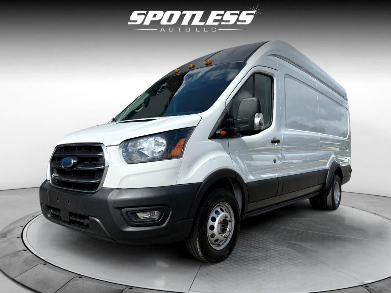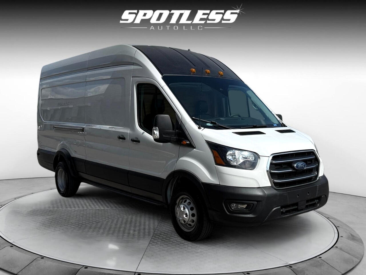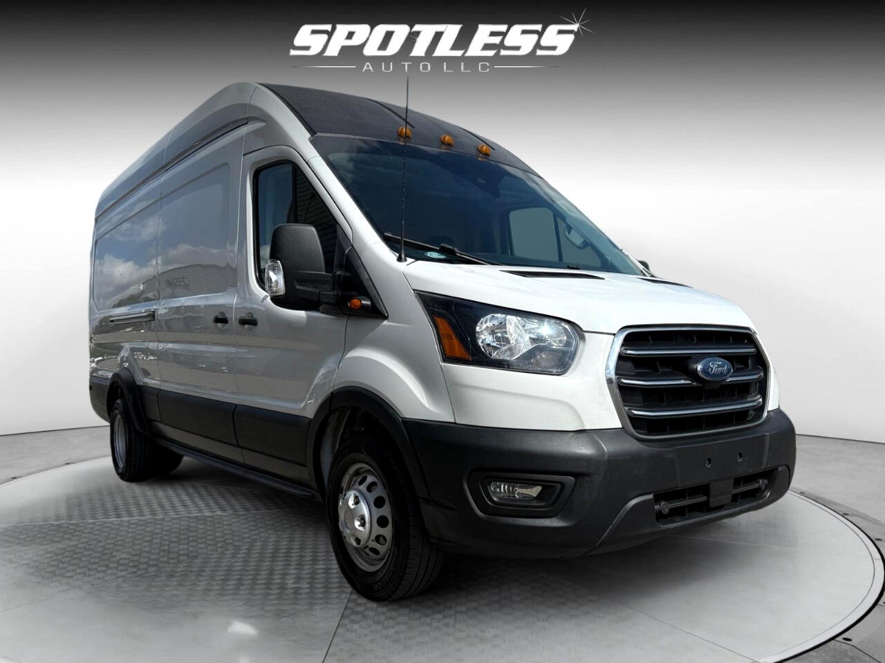 Odometer is 11885 miles below market average! Oxford White 2020 Ford Transit-350 RWD 10-Speed Automatic with Overdrive V6 Heavy-Duty Trailer Tow Package (Frame Mounted Hitch Receiver and Tow/Haul Mode w/Trailer Wiring Provisions), Load Area Protection Package (Front & Rear Vinyl Floor Covering), Order Code 101A, 4 Speakers, 4-Wheel Disc Brakes, 4.10 Limited-Slip Axle Ratio, ABS brakes, Air Conditioning, AM/FM radio, AM/FM Stereo, Auto High-beam Headlights, BLIS Blind Spot Information System, Brake assist, Cruise Control w/Adjustable Spd Limiting Device (ASLD), Dark Palazzo Gray Vinyl Bucket Seats, Driver door bin, Driver's Seat Mounted Armrest, Dual front impact airbags, Dual front side impact airbags, Dual rear wheels, Electronic Stability Control, Exterior Parking Camera Rear, Front anti-roll bar, Front Bucket Seats, Front Fog Lamps, Front reading lights, Front wheel independent suspension, Fully automatic headlights, Heavy-Duty Front Axle (DISC), Illuminated entry, Low tire pressure warning, Midship Extended Range Fuel Tank (31 Gallons), Occupant sensing airbag, Overhead airbag, Overhead console, Panic alarm, Passenger cancellable airbag, Passenger door bin, Power door mirrors, Power steering, Power windows, Remote keyless entry, Reverse Sensing System, Short-Arm Manual-Folding Power Adjust Mirrors, Short-Arm Pwr-Folding Heated Pwr Adjusting Mirrors, Steering wheel mounted audio controls, Tachometer, Telescoping steering wheel, Tilt steering wheel, Traction control, Variably intermittent wipers, Vinyl Front Bucket Seats, and Wheels: 16" Heavy Duty Silver Steel.