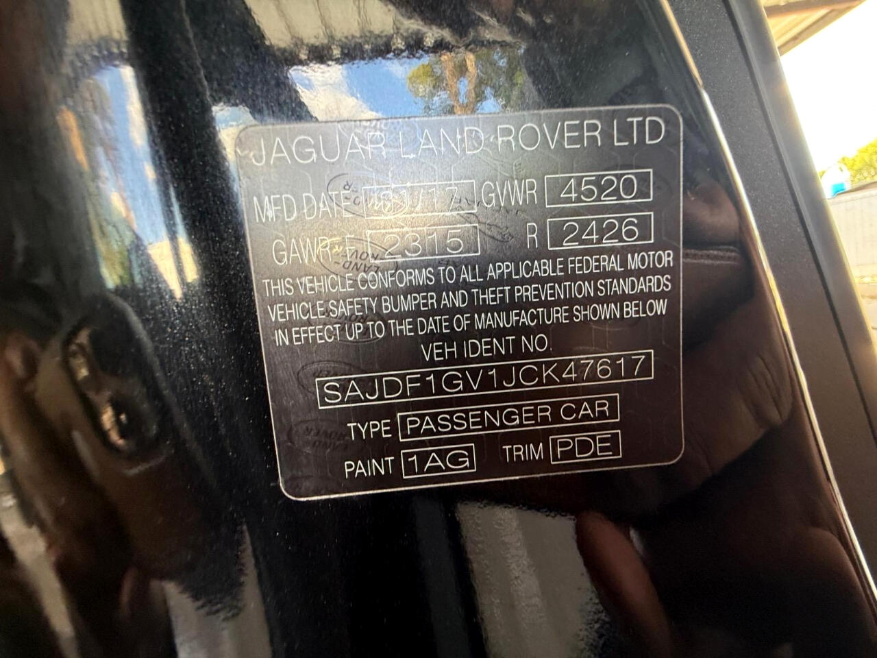 Odometer is 19598 miles below market average! Black 2018 Jaguar F-TYPE 400 Sport RWD 8-Speed Automatic 3.0L V6 Supercharged Awards: * 2018 KBB.com Brand Image Awards 10 Speakers, 4-Wheel Disc Brakes, ABS brakes, Adaptive suspension, Air Conditioning, Alloy wheels, AM/FM radio, Auto tilt-away steering wheel, Auto-dimming Rear-View mirror, Automatic temperature control, Block heater, Brake assist, Bumpers: body-color, Delay-off headlights, Driver door bin, Driver vanity mirror, Dual front impact airbags, Dual front side impact airbags, DVD-Audio, Electronic Stability Control, Emergency communication system: InControl Protect, Exterior Parking Camera Rear, Four wheel independent suspension, Front anti-roll bar, Front Bucket Seats, Front Center Armrest, Front reading lights, Fully automatic headlights, Headlight cleaning, Heated door mirrors, Heated steering wheel, Illuminated entry, Leather Shift Knob, Low tire pressure warning, Memory seat, Navigation System, Occupant sensing airbag, Outside temperature display, Overhead console, Panic alarm, Passenger door bin, Passenger vanity mirror, Performance Front Seats, Power door mirrors, Power driver seat, Power passenger seat, Power steering, Power windows, Radio data system, Radio: Meridian 380W Audio System, Rain sensing wipers, Rear anti-roll bar, Rear fog lights, Rear Parking Sensors, Rear window defroster, Remote CD player, Remote keyless entry, Security system, Speed control, Speed-sensing steering, Spoiler, Sport steering wheel, Steering wheel memory, Steering wheel mounted audio controls, Tachometer, Telescoping steering wheel, Tilt steering wheel, Traction control, Trip computer, Turn signal indicator mirrors, Variably intermittent wipers, Wheels: 20" 5 Spoke Style 5060, and Windsor Leather Seating Surfaces.