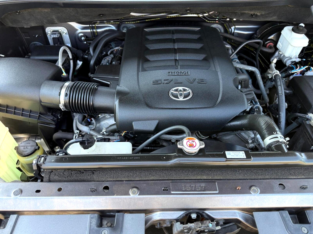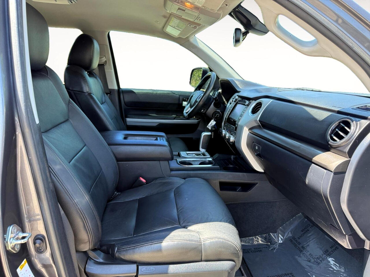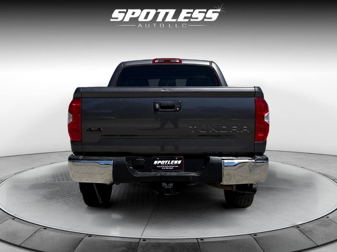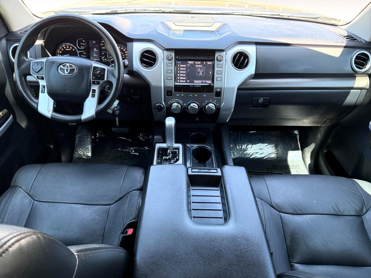 Gray 2019 Toyota Tundra SR5 CrewMax 4WD 6-Speed Automatic Electronic i-Force 5.7L V8 Flex Fuel DOHC 32V LEV 4WD, Cloth. Awards: * JD Power Vehicle Dependability Study (VDS) * ALG Residual Value Awards, Residual Value Awards * 2019 KBB.com Brand Image Awards * 2019 KBB.com Best Resale Value Awards 4WD, Cloth, 18" x 8J Styled Steel Wheels, 3-Passenger Front Bench Seat, 38 Gallon Fuel Tank Capacity, 4-Wheel Disc Brakes, 4.30 Axle Ratio, 6 Speakers, ABS brakes, Air Conditioning, AM/FM radio: SiriusXM, Anti-Theft Immobilizer w/Alarm, Auto High-beam Headlights, Auto-Dimming Rear-View Mirror, Auto-dimming Rear-View mirror, Brake assist, CD player, Compass, Deck Rail System, Delay-off headlights, Driver door bin, Driver vanity mirror, Dual front impact airbags, Dual front side impact airbags, Electronic Stability Control, Exterior Parking Camera Rear, Fabric Seat Trim, Front anti-roll bar, Front Bucket Seats, Front Center Armrest w/Storage, Front fog lights, Front reading lights, Front wheel independent suspension, Fully automatic headlights, Garage door transmitter: HomeLink, Heated door mirrors, HomeLink Universal Transceiver, Illuminated entry, Knee airbag, Leather Shift Knob, Low tire pressure warning, Occupant sensing airbag, Outside temperature display, Overhead airbag, Overhead console, Panic alarm, Passenger door bin, Passenger vanity mirror, Power door mirrors, Power steering, Power windows, Radio: Entune Audio Plus AM/FM/HD Radio w/CD, Radio: Entune Premium Audio AM/FM w/HD Radio & CD, Rear reading lights, Rear seat center armrest, Rear step bumper, Rear window defroster, Remote keyless entry, Speed control, Speed-sensing steering, Split folding rear seat, Tachometer, Tilt steering wheel, Traction control, TRD Shift Knob, Trip computer, Variably intermittent wipers, and Voltmeter.