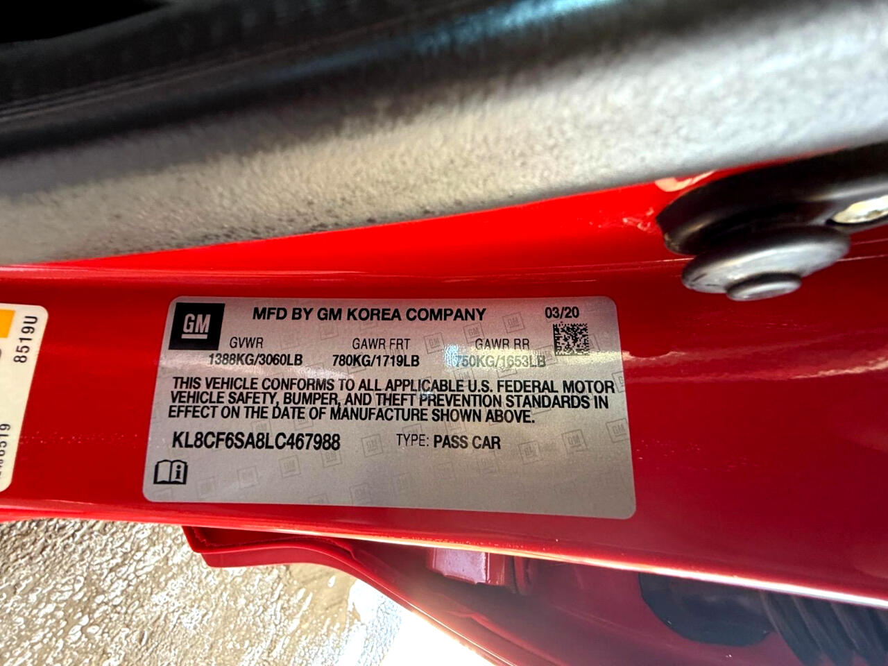 Odometer is 55986 miles below market average! 30/38 City/Highway MPG Red Hot 2020 Chevrolet Spark 2LT FWD CVT 1.4L DOHC Driver Confidence Package (Automatic Emergency Braking, Forward Collision Alert, and Lane Departure Warning System), Preferred Equipment Group 1SF (2 Extended Range Keys w/Passive Entry, 3.76 Final Drive Axle Ratio, 6-Speaker Audio System Feature, Body-Color Manual Folding Heated Outside Mirrors, Chrome Door Handles, Content Theft Alarm Theft Deterrent System, Driver Information Center, Electronic Cruise Control w/Set & Resume Speed, Leather-Wrapped Steering Wheel, Power Door Locks w/Automatic Emergency Unlock, Power Windows w/Driver Express Up/Down, Rear Park Assist w/Audible Warning, Remote Keyless Entry w/Panic Alarm Button, Remote Panic Alarm, SiriusXM Radio, and Steering Wheel Mounted Controls), 15" Aluminum Wheels, 2-Way Manual Front Passenger w/Manual Recline, 4-Way Manual Driver Seat Adjuster, 6 Speakers, ABS brakes, Air Conditioning, Alloy wheels, AM/FM radio: SiriusXM, Apple CarPlay/Android Auto, Brake assist, Bumpers: body-color, Delay-off headlights, Driver door bin, Driver Seat Armrest, Driver vanity mirror, Dual front impact airbags, Dual front side impact airbags, Electronic Stability Control, Emergency communication system: OnStar, Exterior Parking Camera Rear, Front anti-roll bar, Front Bucket Seats, Front Driver & Passenger Heated Seats, Front fog lights, Front High-Back Bucket Seats, Front wheel independent suspension, Fully automatic headlights, Heated door mirrors, Heated front seats, Illuminated entry, Knee airbag, Leatherette Seat Trim, Low tire pressure warning, Occupant sensing airbag, Outside temperature display, Overhead airbag, Overhead console, Panic alarm, Passenger door bin, Passenger vanity mirror, Power door mirrors, Power steering, Power windows, Premium audio system: Chevrolet MyLink, Radio data system, Radio: Chevrolet Infotainment 3 System w/AM/FM, Rear side impact airbag, Rear window defroster, Rear window wiper, Remote keyless entry, Security system, Speed control, Split folding rear seat, Spoiler, Steering wheel mounted audio controls, Tachometer, Tilt steering wheel, Traction control, Trip computer, and Variably intermittent wipers.