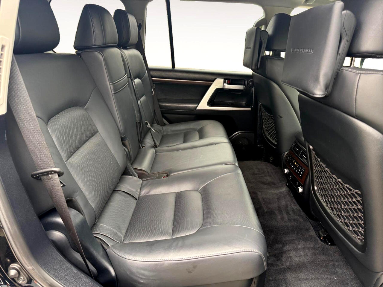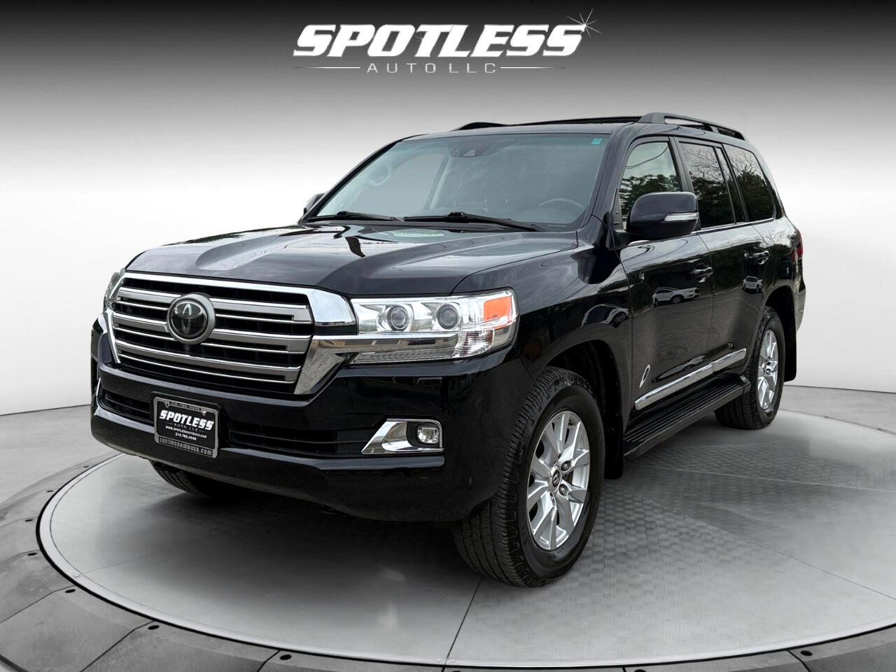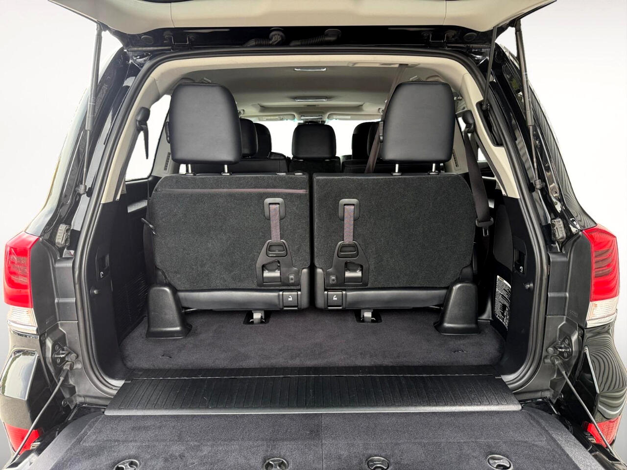 Black 2018 Toyota Land Cruiser 4WD 8-Speed Automatic (ECT-i) 5.7L V8 DOHC Dual VVT-i 32V Leather. Awards: * 2018 KBB.com Best Resale Value Awards * 2018 KBB.com 10 Most Awarded Brands Leather, 14 Speakers, 3.307 Axle Ratio, 3rd row seats: split-bench, 4-Wheel Disc Brakes, ABS brakes, Air Conditioning, Alloy wheels, AM/FM radio: SiriusXM, Anti-whiplash front head restraints, Auto High-beam Headlights, Auto tilt-away steering wheel, Auto-dimming door mirrors, Auto-dimming Rear-View mirror, Automatic temperature control, Bodyside moldings, Brake assist, Bumpers: body-color, CD player, Compass, Delay-off headlights, Driver door bin, Driver vanity mirror, Dual front impact airbags, Dual front side impact airbags, DVD-Audio, Electronic Stability Control, Emergency communication system: Safety Connect, Exterior Parking Camera Rear, Front anti-roll bar, Front Bucket Seats, Front Center Armrest w/Storage, Front dual zone A/C, Front fog lights, Front reading lights, Front wheel independent suspension, Fully automatic headlights, Garage door transmitter: HomeLink, Headlight cleaning, Heated door mirrors, Heated front seats, Heated rear seats, Heated steering wheel, Illuminated entry, Knee airbag, Leather steering wheel, Low tire pressure warning, Memory seat, Multi-Stage Heated and Ventilated Front Seats, Navigation System, Occupant sensing airbag, Outside temperature display, Overhead airbag, Overhead console, Panic alarm, Passenger door bin, Passenger vanity mirror, Power door mirrors, Power driver seat, Power moonroof, Power passenger seat, Power steering, Power windows, Radio data system, Radio: Entune Premium w/JBL Audio & Navigation, Rain sensing wipers, Rear air conditioning, Rear anti-roll bar, Rear dual zone A/C, Rear reading lights, Rear seat center armrest, Rear side impact airbag, Rear window defroster, Rear window wiper, Reclining 3rd row seat, Remote keyless entry, Roof rack, Security system, Semi-Aniline Perforated Leather-Trimmed Seating, Speed control, Speed-sensing steering, Speed-Sensitive Wipers, Split folding rear seat, Spoiler, Steering wheel memory, Steering wheel mounted audio controls, Tachometer, Telescoping steering wheel, Tilt steering wheel, Traction control, Trip computer, Turn signal indicator mirrors, Variably intermittent wipers, Ventilated front seats, Voltmeter, and Wheels: 18" Split-Spoke Alloy.