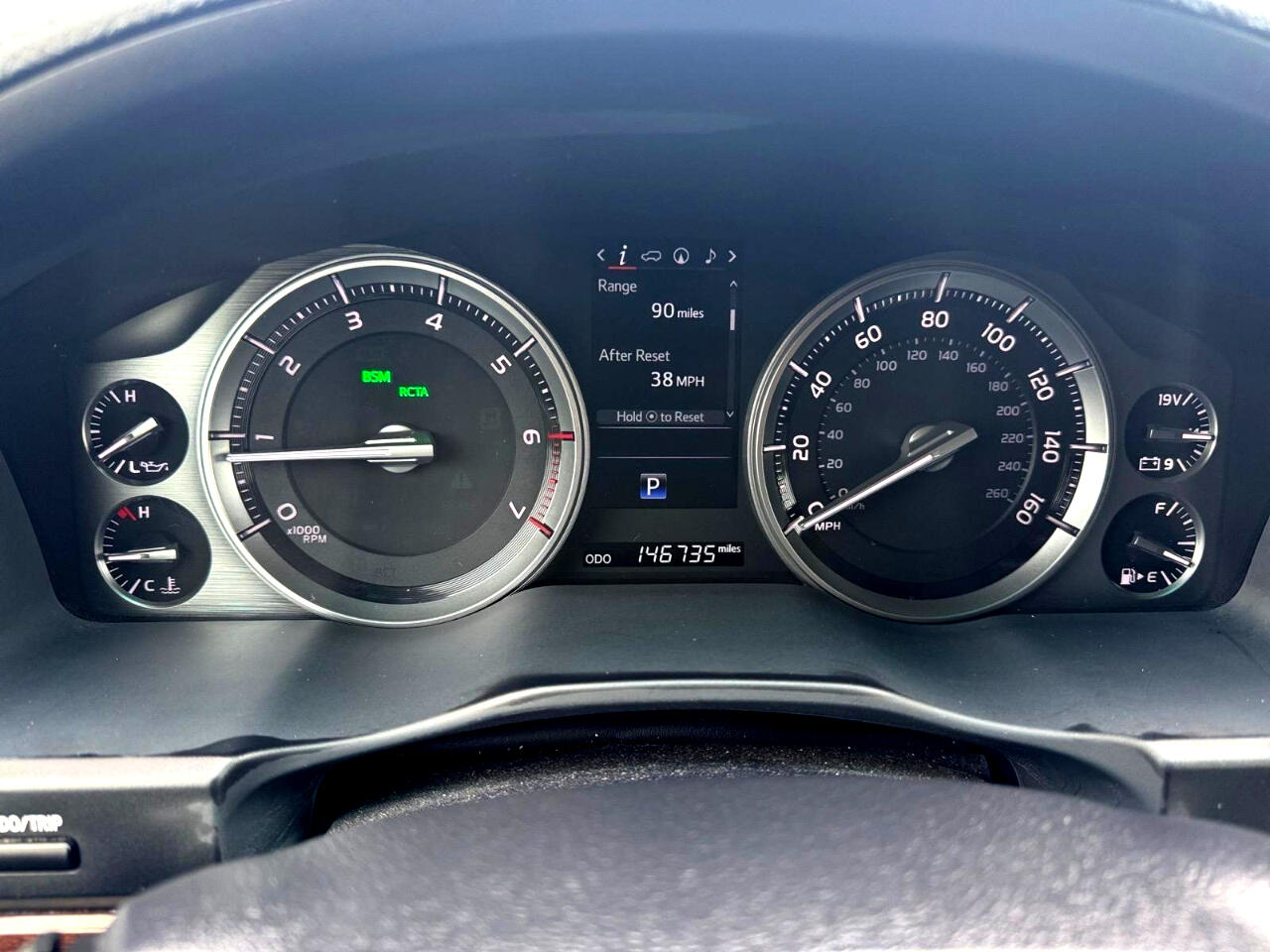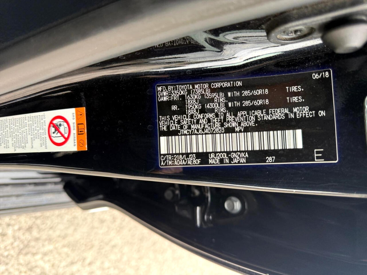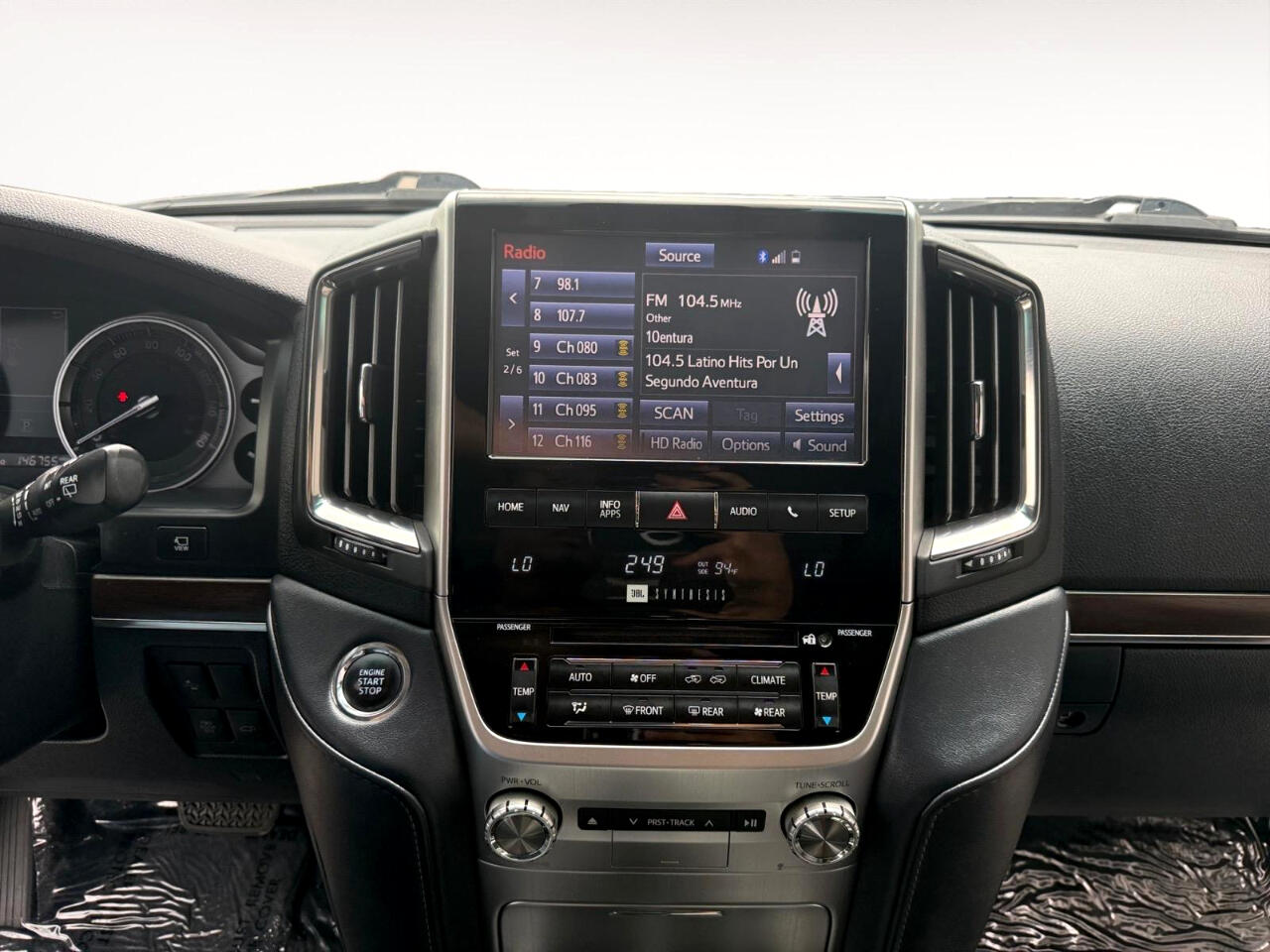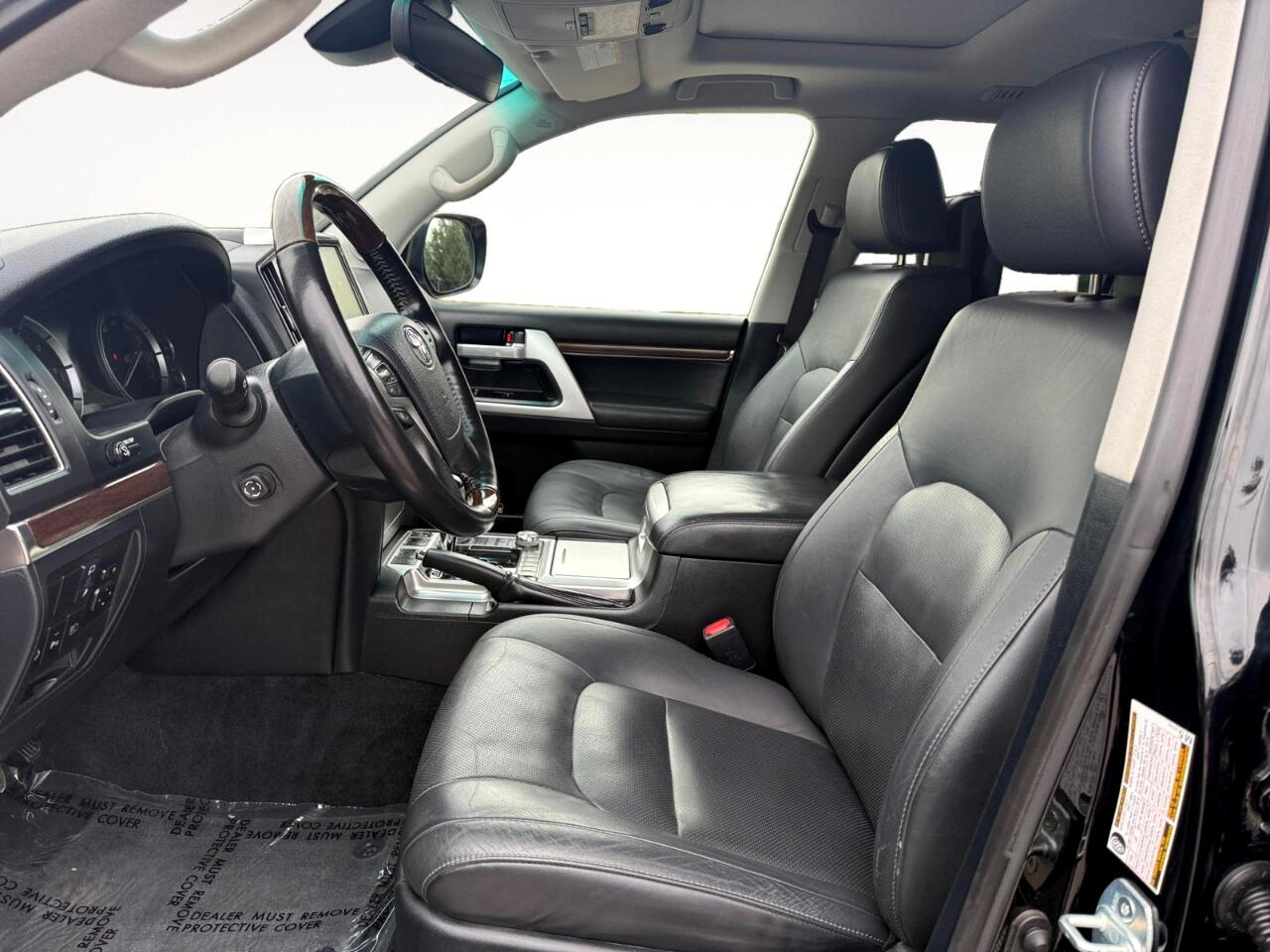Black 2018 Toyota Land Cruiser 4WD 8-Speed Automatic (ECT-i) 5.7L V8 DOHC Dual VVT-i 32V Leather. Awards: * 2018 KBB.com Best Resale Value Awards * 2018 KBB.com 10 Most Awarded Brands Leather, 14 Speakers, 3.307 Axle Ratio, 3rd row seats: split-bench, 4-Wheel Disc Brakes, ABS brakes, Air Conditioning, Alloy wheels, AM/FM radio: SiriusXM, Anti-whiplash front head restraints, Auto High-beam Headlights, Auto tilt-away steering wheel, Auto-dimming door mirrors, Auto-dimming Rear-View mirror, Automatic temperature control, Bodyside moldings, Brake assist, Bumpers: body-color, CD player, Compass, Delay-off headlights, Driver door bin, Driver vanity mirror, Dual front impact airbags, Dual front side impact airbags, DVD-Audio, Electronic Stability Control, Emergency communication system: Safety Connect, Exterior Parking Camera Rear, Front anti-roll bar, Front Bucket Seats, Front Center Armrest w/Storage, Front dual zone A/C, Front fog lights, Front reading lights, Front wheel independent suspension, Fully automatic headlights, Garage door transmitter: HomeLink, Headlight cleaning, Heated door mirrors, Heated front seats, Heated rear seats, Heated steering wheel, Illuminated entry, Knee airbag, Leather steering wheel, Low tire pressure warning, Memory seat, Multi-Stage Heated and Ventilated Front Seats, Navigation System, Occupant sensing airbag, Outside temperature display, Overhead airbag, Overhead console, Panic alarm, Passenger door bin, Passenger vanity mirror, Power door mirrors, Power driver seat, Power moonroof, Power passenger seat, Power steering, Power windows, Radio data system, Radio: Entune Premium w/JBL Audio & Navigation, Rain sensing wipers, Rear air conditioning, Rear anti-roll bar, Rear dual zone A/C, Rear reading lights, Rear seat center armrest, Rear side impact airbag, Rear window defroster, Rear window wiper, Reclining 3rd row seat, Remote keyless entry, Roof rack, Security system, Semi-Aniline Perforated Leather-Trimmed Seating, Speed control, Speed-sensing steering, Speed-Sensitive Wipers, Split folding rear seat, Spoiler, Steering wheel memory, Steering wheel mounted audio controls, Tachometer, Telescoping steering wheel, Tilt steering wheel, Traction control, Trip computer, Turn signal indicator mirrors, Variably intermittent wipers, Ventilated front seats, Voltmeter, and Wheels: 18" Split-Spoke Alloy.