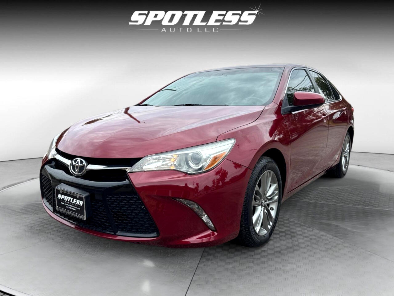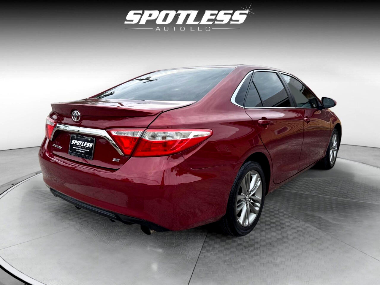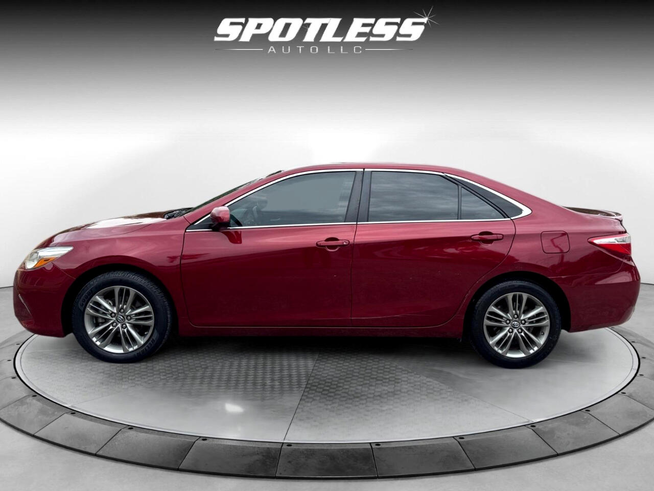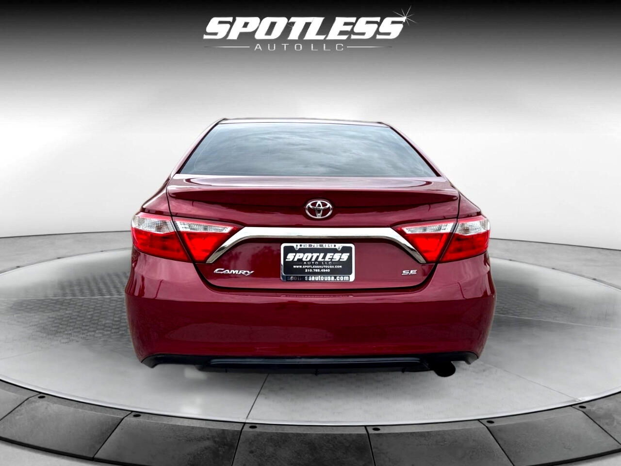 24/33 City/Highway MPG Red 2017 Toyota Camry XSE FWD 6-Speed Automatic 2.5L I4 SMPI DOHC Leather. Awards: * 2017 KBB.com 10 Most Comfortable Cars Under $30,000 * 2017 KBB.com 10 Best Sedans Under $25,000 * 2017 KBB.com 10 Best Used Cars Under $20,000 * 2017 KBB.com 10 Most Awarded Brands * 2017 KBB.com Best Resale Value Awards Leather, 10 Speakers, 4-Wheel Disc Brakes, 7.5J x 18" Alloy Wheels, ABS brakes, Air Conditioning, Alloy wheels, AM/FM radio: SiriusXM, Automatic temperature control, Brake assist, Bumpers: body-color, CD player, Delay-off headlights, Driver door bin, Driver vanity mirror, Dual front impact airbags, Dual front side impact airbags, Electronic Stability Control, Exterior Parking Camera Rear, Four wheel independent suspension, Front anti-roll bar, Front Bucket Seats, Front Center Armrest, Front dual zone A/C, Front reading lights, Fully automatic headlights, Heated door mirrors, Heated front seats, Illuminated entry, Knee airbag, Leather steering wheel, Low tire pressure warning, Multi-Stage Heated Front Bucket Seats, Occupant sensing airbag, Outside temperature display, Overhead airbag, Overhead console, Panic alarm, Passenger door bin, Passenger vanity mirror, Power door mirrors, Power driver seat, Power passenger seat, Power steering, Power windows, Radio: Entune Audio Plus w/Connected Nav/JBL Audio, Rear anti-roll bar, Rear seat center armrest, Rear side impact airbag, Rear window defroster, Remote keyless entry, Speed control, Speed-sensing steering, Split folding rear seat, Spoiler, Sport Leather-Trimmed Ultrasuede Seat Trim, Sport steering wheel, Steering wheel mounted audio controls, Tachometer, Telescoping steering wheel, Tilt steering wheel, Traction control, Trip computer, and Variably intermittent wipers.