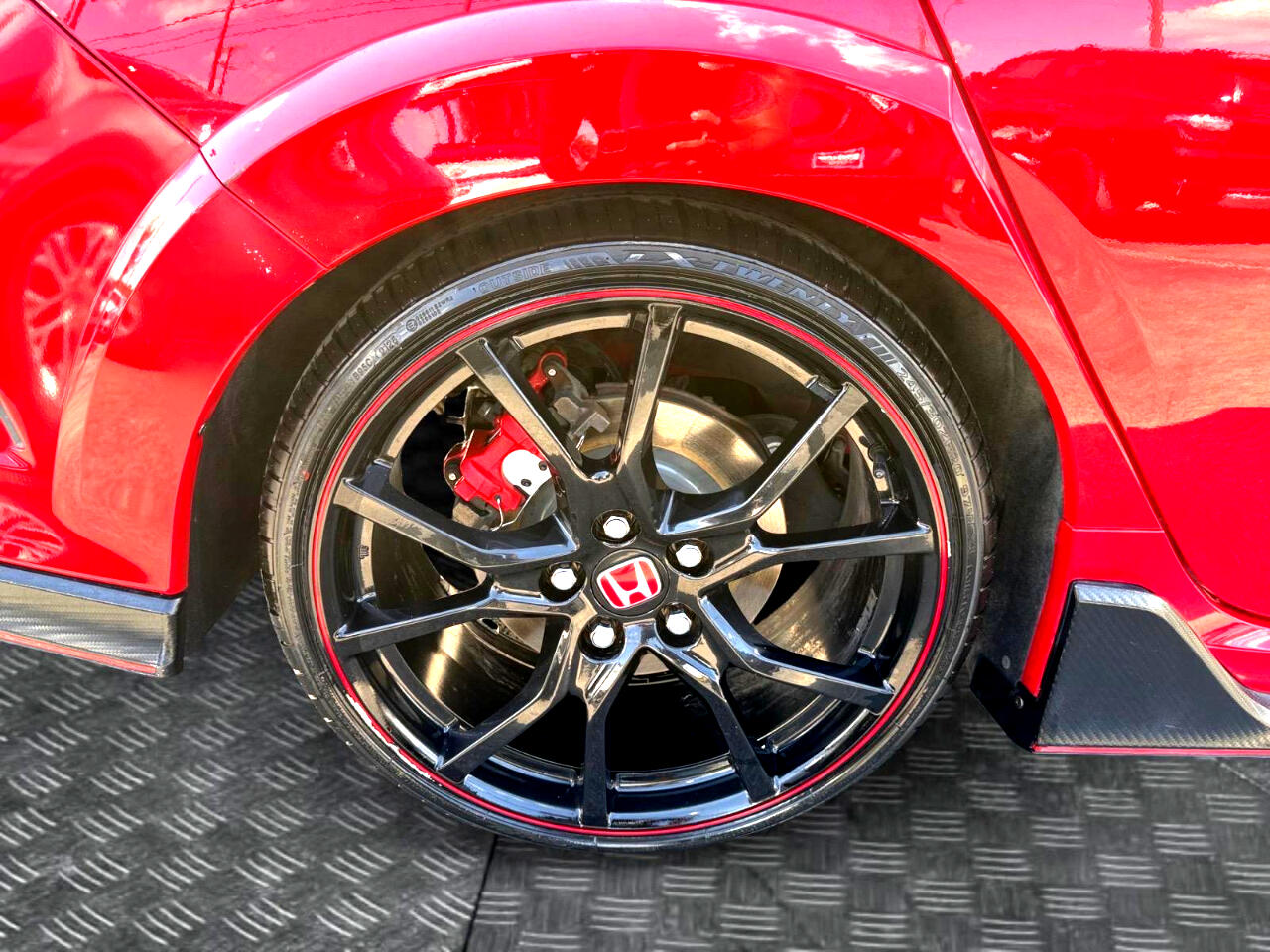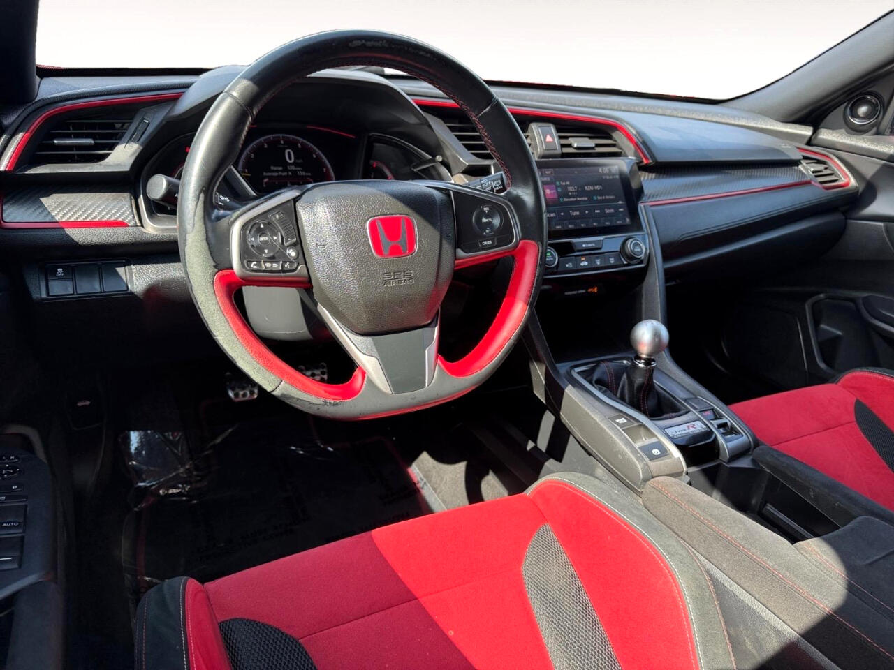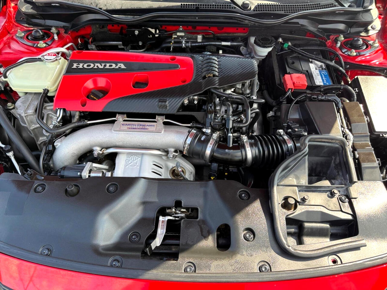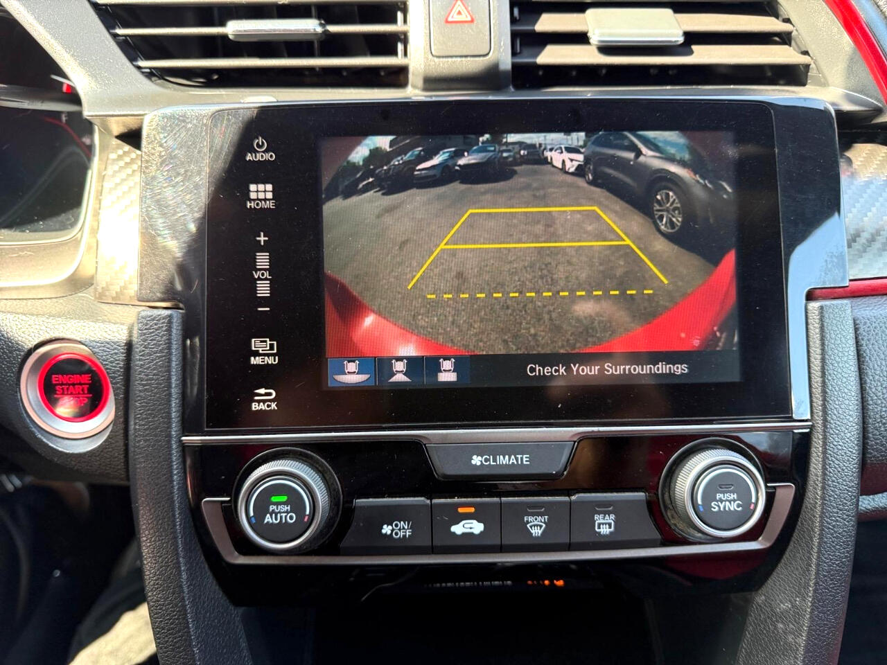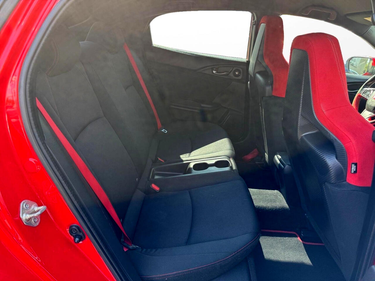 22/28 City/Highway MPG Red 2018 Honda Civic Type R Touring FWD 6-Speed Manual 2.0L I4 DOHC 16V Awards: * 2018 KBB.com Brand Image Awards * 2018 KBB.com 10 Most Awarded Brands Kelley Blue Book Brand Image Awards are based on the Brand Watch(tm) study from Kelley Blue Book Market Intelligence. Award calculated among non-luxury shoppers. For more information, visit www.kbb.com. Kelley Blue Book is a registered trademark of Kelley Blue Book Co., Inc. 12 Speakers, 4-Wheel Disc Brakes, ABS brakes, Air Conditioning, Alloy wheels, AM/FM radio: SiriusXM, Apple CarPlay/Android Auto, Automatic temperature control, Brake assist, Bumpers: body-color, Compass, Delay-off headlights, Driver door bin, Driver vanity mirror, Dual front impact airbags, Dual front side impact airbags, Electronic Stability Control, Emergency communication system: HondaLink, Exterior Parking Camera Rear, Four wheel independent suspension, Front anti-roll bar, Front Bucket Seats, Front Center Armrest, Front dual zone A/C, Front fog lights, Front reading lights, Fully automatic headlights, Heated door mirrors, High-Bolstered Front Bucket Sport Seats, Illuminated entry, Low tire pressure warning, Navigation System, Occupant sensing airbag, Outside temperature display, Overhead airbag, Panic alarm, Passenger door bin, Passenger vanity mirror, Power door mirrors, Power steering, Power windows, Radio data system, Radio: 540-Watt AM/FM/HD/SiriusXM Premium Audio, Rear anti-roll bar, Rear window defroster, Rear window wiper, Remote keyless entry, Security system, Speed control, Speed-sensing steering, Speed-Sensitive Wipers, Split folding rear seat, Spoiler, Steering wheel mounted audio controls, Suede-Effect Fabric Seating Surfaces w/Type R Logo, Tachometer, Telescoping steering wheel, Tilt steering wheel, Traction control, Trip computer, Turn signal indicator mirrors, Variably intermittent wipers, and Wheels: 20" x 8.5" Alloy.