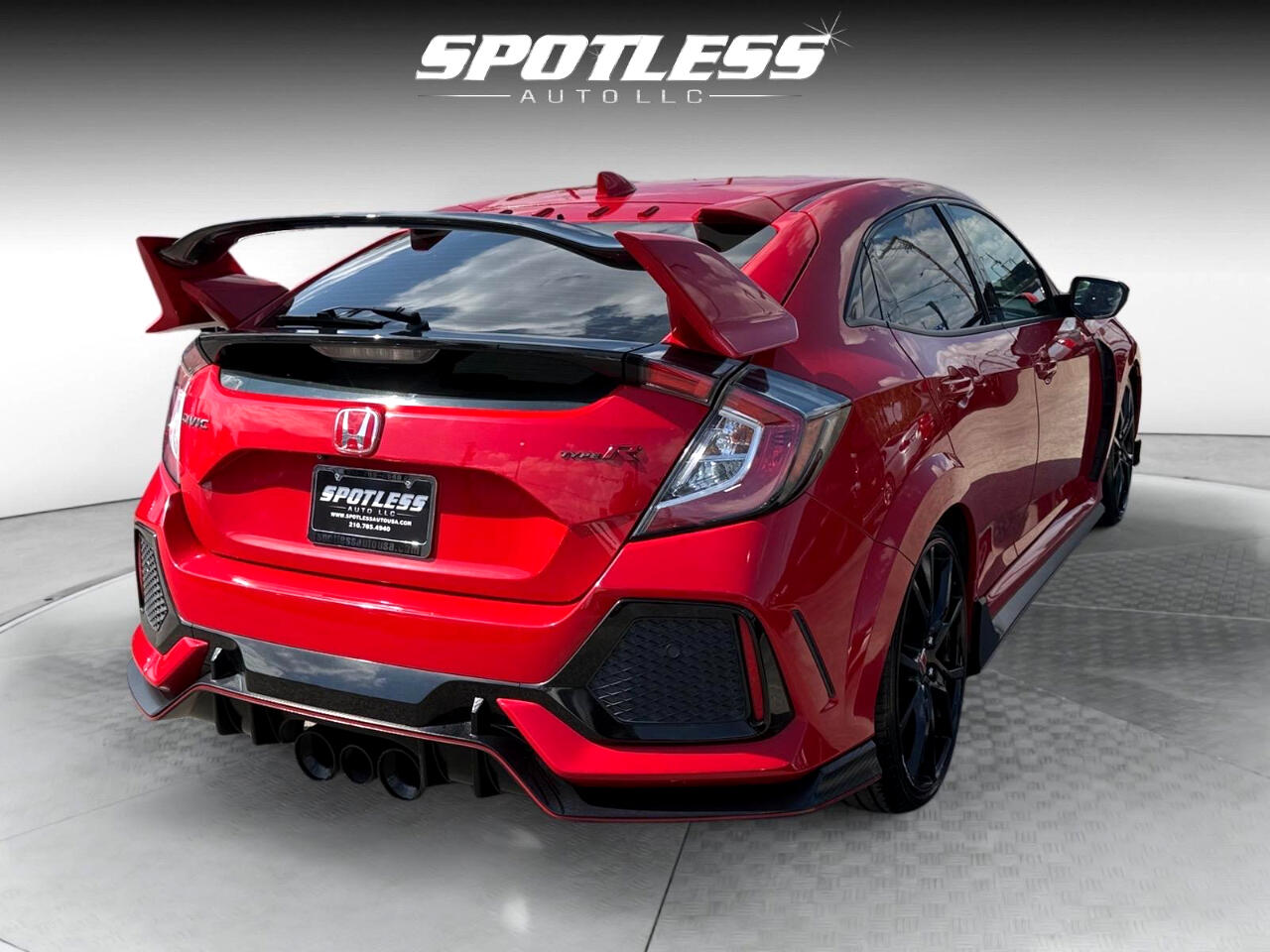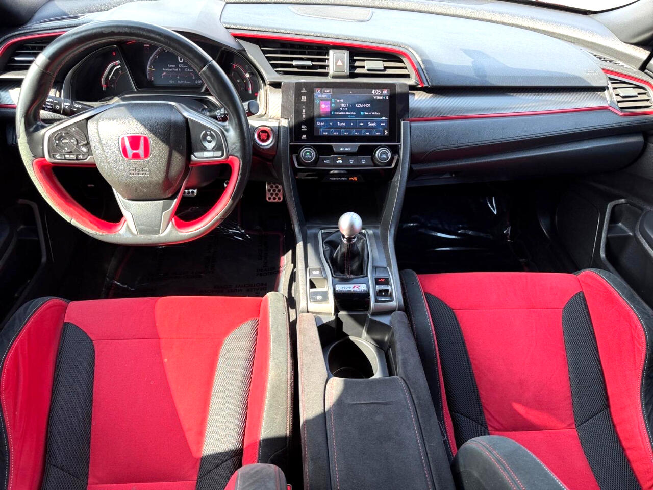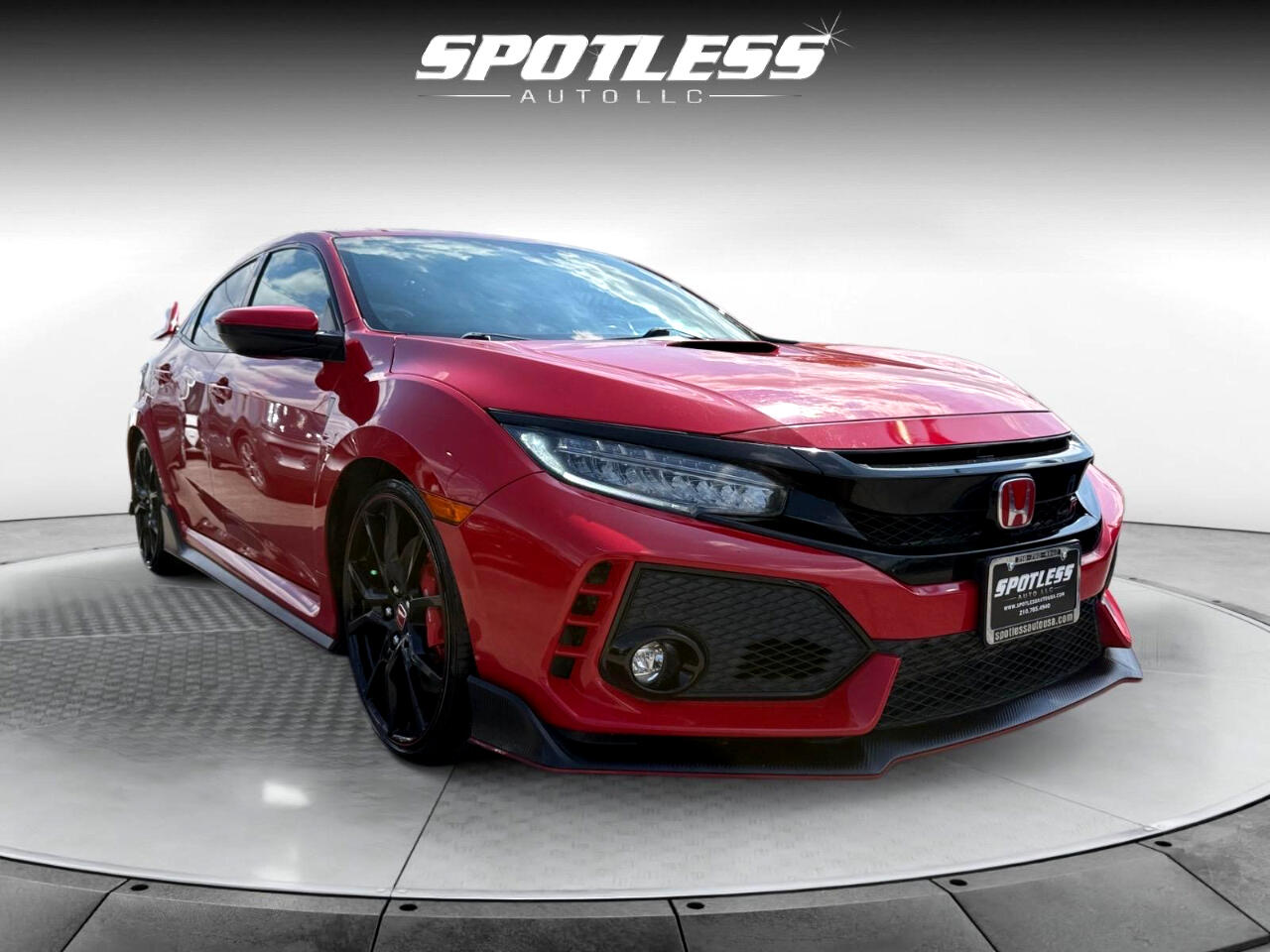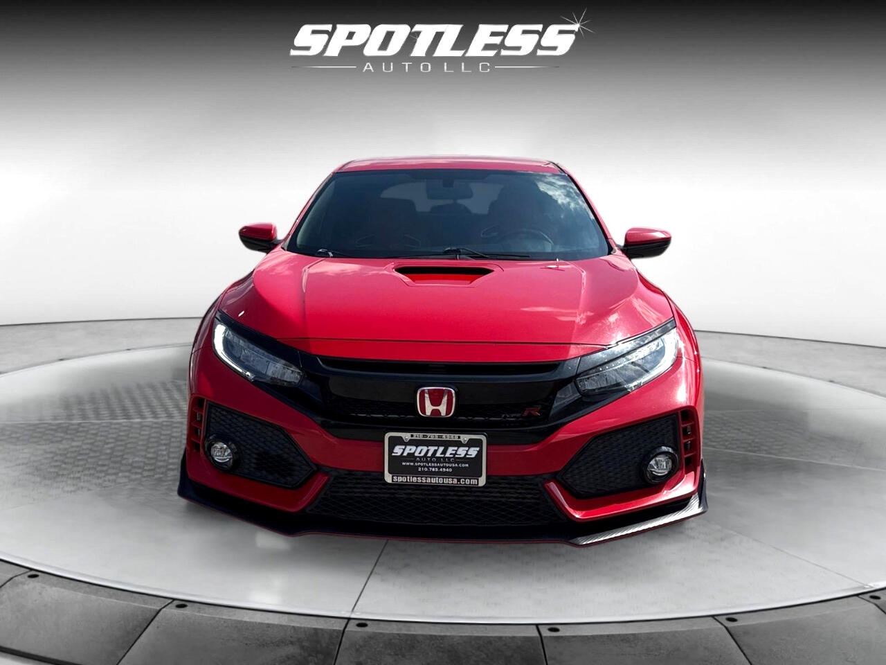 22/28 City/Highway MPG Red 2018 Honda Civic Type R Touring FWD 6-Speed Manual 2.0L I4 DOHC 16V Awards: * 2018 KBB.com Brand Image Awards * 2018 KBB.com 10 Most Awarded Brands Kelley Blue Book Brand Image Awards are based on the Brand Watch(tm) study from Kelley Blue Book Market Intelligence. Award calculated among non-luxury shoppers. For more information, visit www.kbb.com. Kelley Blue Book is a registered trademark of Kelley Blue Book Co., Inc. 12 Speakers, 4-Wheel Disc Brakes, ABS brakes, Air Conditioning, Alloy wheels, AM/FM radio: SiriusXM, Apple CarPlay/Android Auto, Automatic temperature control, Brake assist, Bumpers: body-color, Compass, Delay-off headlights, Driver door bin, Driver vanity mirror, Dual front impact airbags, Dual front side impact airbags, Electronic Stability Control, Emergency communication system: HondaLink, Exterior Parking Camera Rear, Four wheel independent suspension, Front anti-roll bar, Front Bucket Seats, Front Center Armrest, Front dual zone A/C, Front fog lights, Front reading lights, Fully automatic headlights, Heated door mirrors, High-Bolstered Front Bucket Sport Seats, Illuminated entry, Low tire pressure warning, Navigation System, Occupant sensing airbag, Outside temperature display, Overhead airbag, Panic alarm, Passenger door bin, Passenger vanity mirror, Power door mirrors, Power steering, Power windows, Radio data system, Radio: 540-Watt AM/FM/HD/SiriusXM Premium Audio, Rear anti-roll bar, Rear window defroster, Rear window wiper, Remote keyless entry, Security system, Speed control, Speed-sensing steering, Speed-Sensitive Wipers, Split folding rear seat, Spoiler, Steering wheel mounted audio controls, Suede-Effect Fabric Seating Surfaces w/Type R Logo, Tachometer, Telescoping steering wheel, Tilt steering wheel, Traction control, Trip computer, Turn signal indicator mirrors, Variably intermittent wipers, and Wheels: 20" x 8.5" Alloy.
