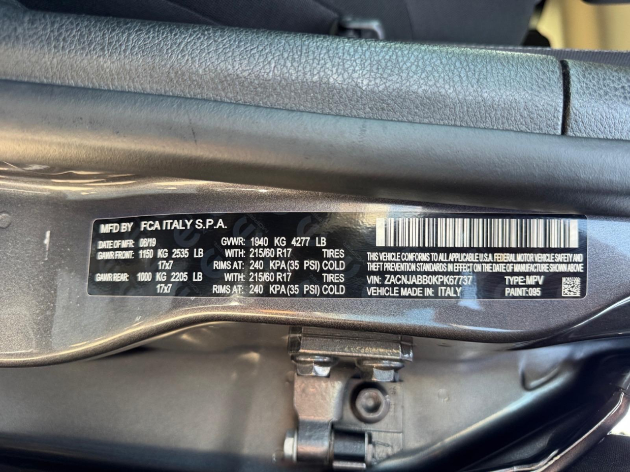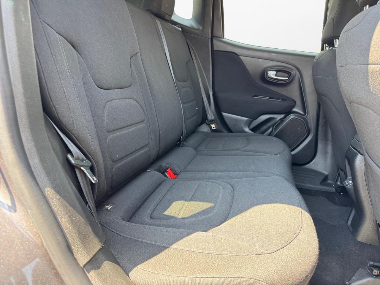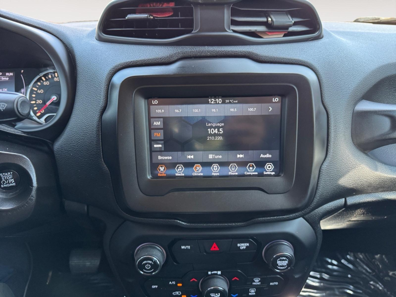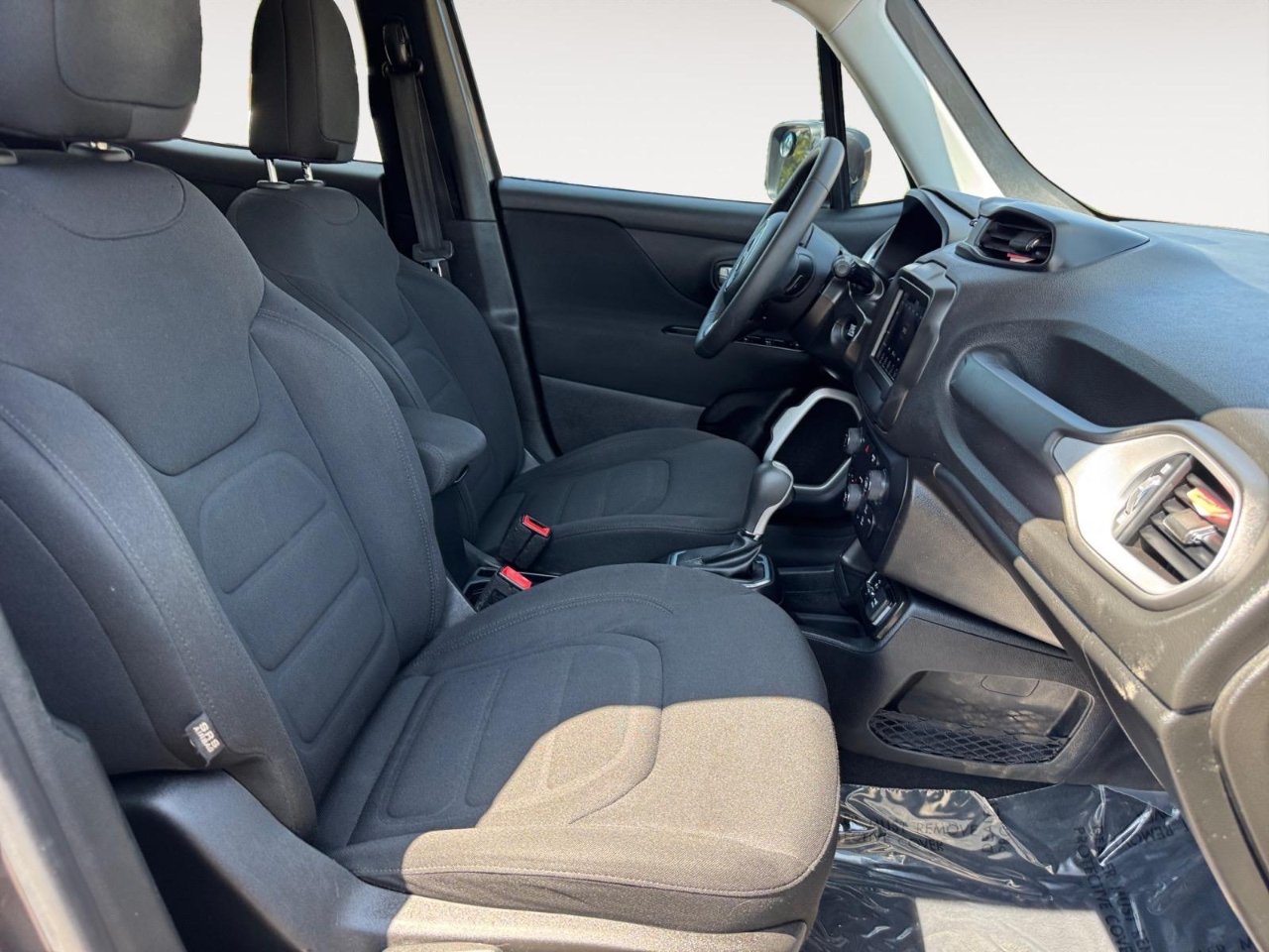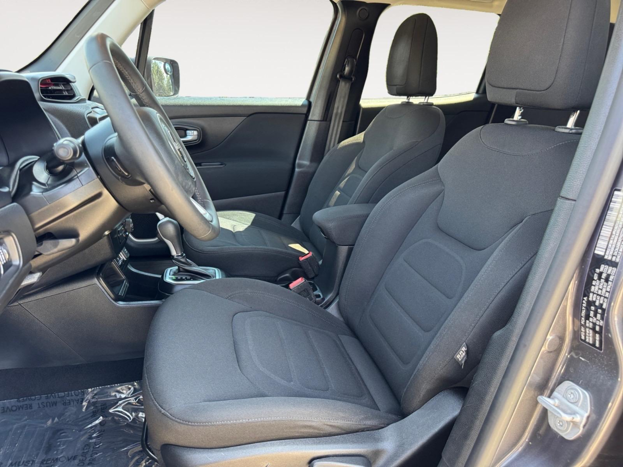 22/30 City/Highway MPG Granite Crystal Metallic Clearcoat 2019 Jeep Renegade Latitude FWD 9-Speed 948TE Automatic 2.4L I4 Passive Entry Remote Start Package (Keyless Entry w/Panic Alarm), Quick Order Package 2XB, 17" x 7.0" Aluminum Wheels, 3.734 Final Drive Ratio, 4-Wheel Disc Brakes, 6 Speakers, ABS brakes, Air Conditioning, Alloy wheels, AM/FM radio: SiriusXM, Anti-whiplash front head restraints, Apple CarPlay/Android Auto, Automatic temperature control, Brake assist, Compass, Delay-off headlights, Driver door bin, Driver vanity mirror, Dual front impact airbags, Dual front side impact airbags, Electronic Stability Control, Four wheel independent suspension, Front anti-roll bar, Front Bucket Seats, Front Center Armrest, Front dual zone A/C, Front fog lights, Front reading lights, Fully automatic headlights, Heated door mirrors, Illuminated entry, Knee airbag, Low tire pressure warning, Manual Adjust 4-Way Front Passenger Seat, Normal Duty Suspension, Occupant sensing airbag, Outside temperature display, Overhead airbag, Panic alarm, ParkView Rear Back-Up Camera, Passenger door bin, Passenger vanity mirror, Power door mirrors, Power steering, Power windows, Premium Cloth Bucket Seats, Radio data system, Radio: Uconnect 4 w/7" Display, Rear anti-roll bar, Rear window defroster, Rear window wiper, Remote keyless entry, Roof rack: rails only, Speed control, Split folding rear seat, Spoiler, Steering wheel mounted audio controls, Tachometer, Telescoping steering wheel, Tilt steering wheel, Traction control, Trip computer, Variably intermittent wipers, and Voltmeter.
