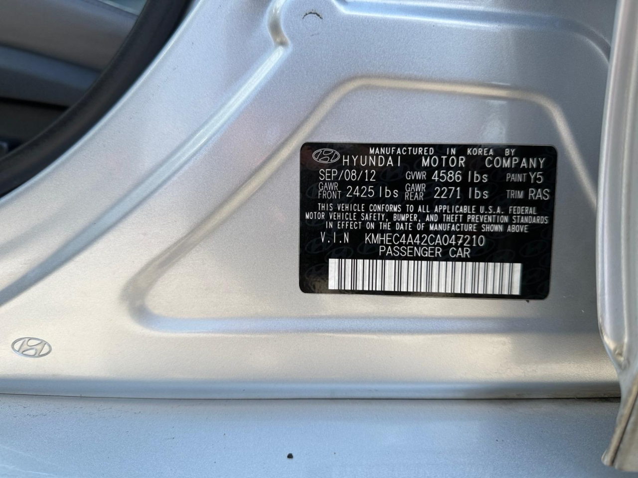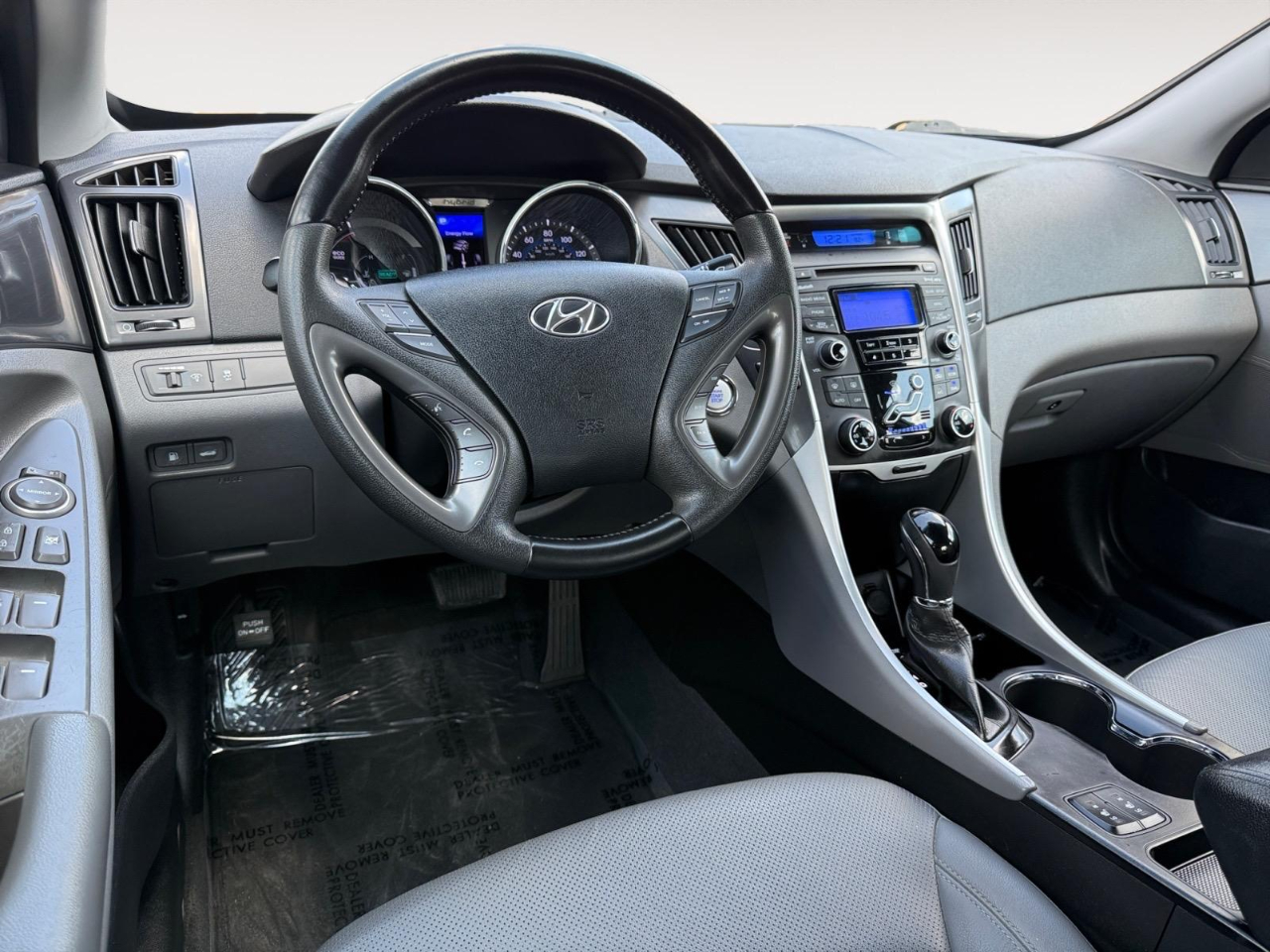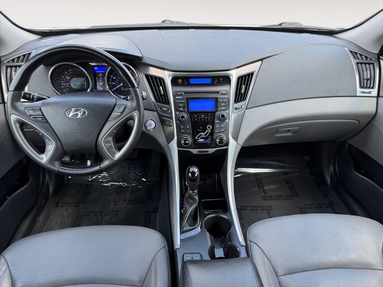 34/39 City/Highway MPG Silver Frost Metallic 2012 Hyundai Sonata Hybrid FWD 6-Speed Automatic 2.4L 4-Cylinder Atkinson-Cycle Hybrid 2.4L 4-Cylinder Atkinson-Cycle Hybrid. Awards: * 2012 IIHS Top Safety Pick * 2012 KBB.com 10 Best Sedans Under $25,000 * 2012 KBB.com 10 Best Used Family Cars Under $15,000 * 2012 KBB.com Total Cost of Ownership Awards Leather Package (02) (270V Lithium Polymer Battery, 4.2" TFT Multi-Function Trip Computer, Anti-Lock Braking System (ABS), Auto-Dimming Mirror w/Homelink and Compass, Automatic Light Control, Bodyside Molding Tinted Chrome Inserts, Chrome Exterior Door Handles, Chrome Interior Door Handles, Dual Automatic Temperature Control, Electroluminescent Instrument Cluster, Electronic Stability Control, Floor Console Mounted Rear Vents, Front Active Head Restraints, Front Fog Lights, Front, Front Seat Side & Curtain Airbags, Headlight LED Accents, Heated Front Bucket Seats, Heated Rear Seat Bottom Cushions, Hybrid Starter-Generator (HSG), Hyundai Blue Link Telematics System, Integrated Bluetooth® Hands-Free Phone System, Leather Seating Surfaces, Leather-Wrapped Steering Wheel & Shift Knob, Leatherette Interior Panel Door Inserts, LED Taillights, Permanent Magnet High-Power Density Motor, Proximity Entry w/Push Button Start, Remote Keyless Entry & Alarm w/Engine Immobilizer, Side Mirror-Mounted Turn Signal Indicators, Solar Control Glass, Steering Wheel Mounted Cruise/Audio/Phone Controls, Unique Tinted Chrome Front Grille, and Virtual Engine Sound System (VESS)), 2.4L 4-Cylinder Atkinson-Cycle Hybrid, 16 x 6.5J Eco-Spoke Aluminum Alloy Wheels, 4-Wheel Disc Brakes, 6 Speakers, ABS brakes, Air Conditioning, Alloy wheels, AM/FM radio: SiriusXM, Anti-whiplash front head restraints, Automatic temperature control, Brake assist, Bumpers: body-color, Cargo Mat, Cargo Net, Carpeted Floor Mats, CD player, Delay-off headlights, Driver door bin, Driver vanity mirror, Dual front impact airbags, Dual front side impact airbags, Emergency communication system: Blue Link, Four wheel independent suspension, Front anti-roll bar, Front Bucket Seats, Front Center Armrest w/Storage, Front dual zone A/C, Front fog lights, Front reading lights, Fully automatic headlights, Heated door mirrors, Illuminated entry, Leather Shift Knob, Leather steering wheel, Low tire pressure warning, Occupant sensing airbag, Outside temperature display, Overhead airbag, Overhead console, Panic alarm, Passenger door bin, Passenger vanity mirror, Power door mirrors, Power driver seat, Power steering, Power windows, Premium Cloth Seating Surfaces, Radio: Autonet AM/FM/CD/MP3 Audio System, Rear anti-roll bar, Rear seat center armrest, Rear window defroster, Remote keyless entry, Security system, SIRIUSXM Satellite Radio, Speed control, Speed-sensing steering, Speed-Sensitive Wipers, Steering wheel mounted audio controls, Telescoping steering wheel, Tilt steering wheel, Traction control, Traction Control System, Trip computer, Turn signal indicator mirrors, Variably intermittent wipers, and Wheel Locks.