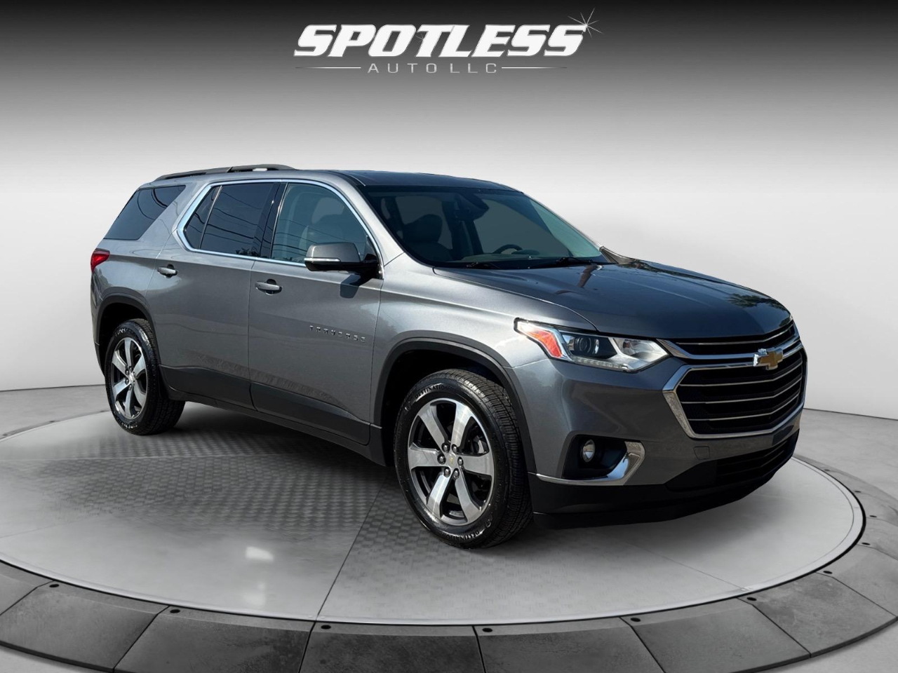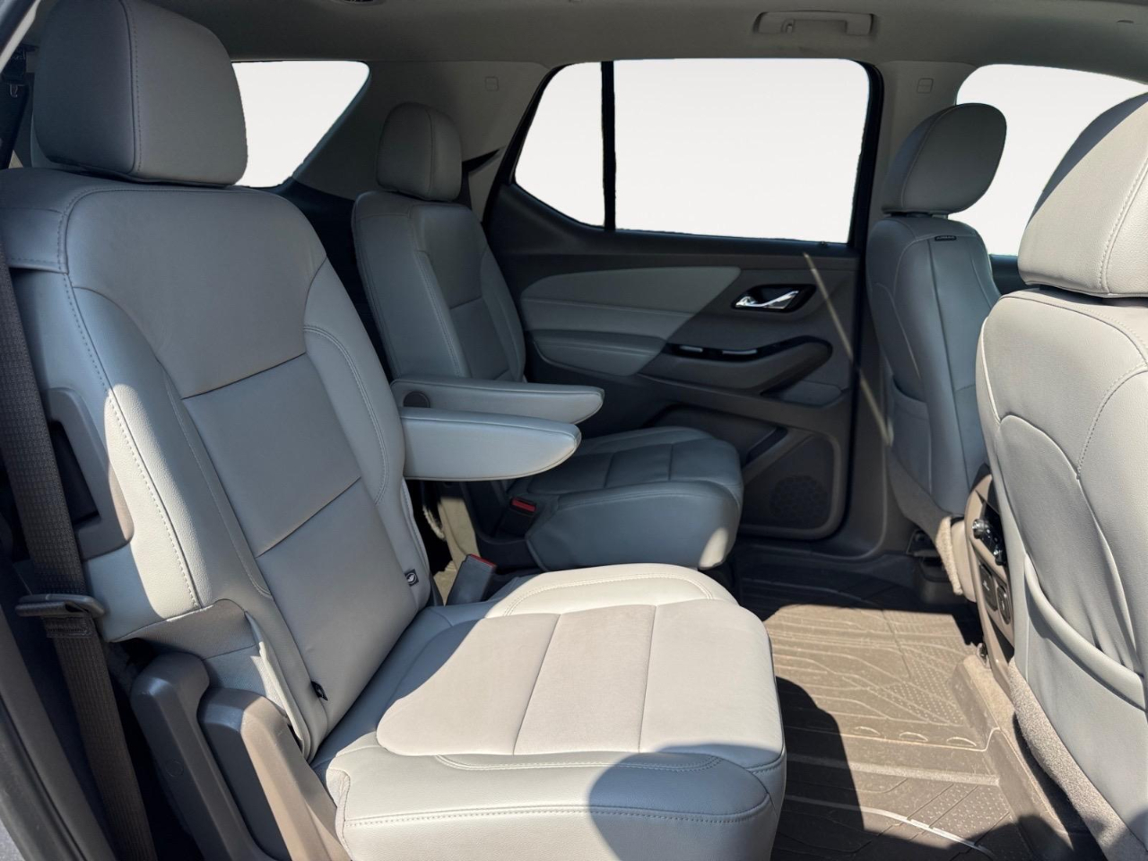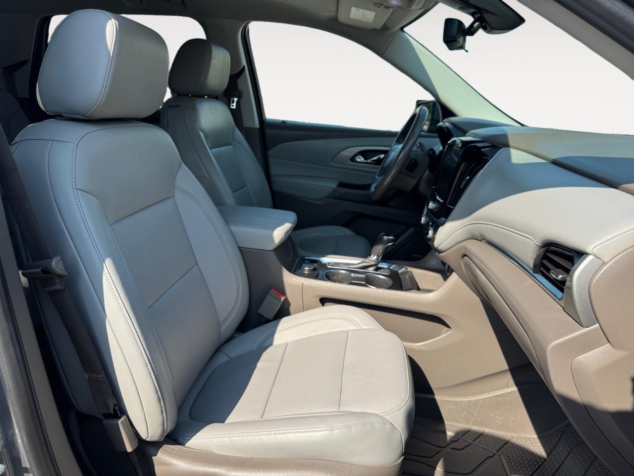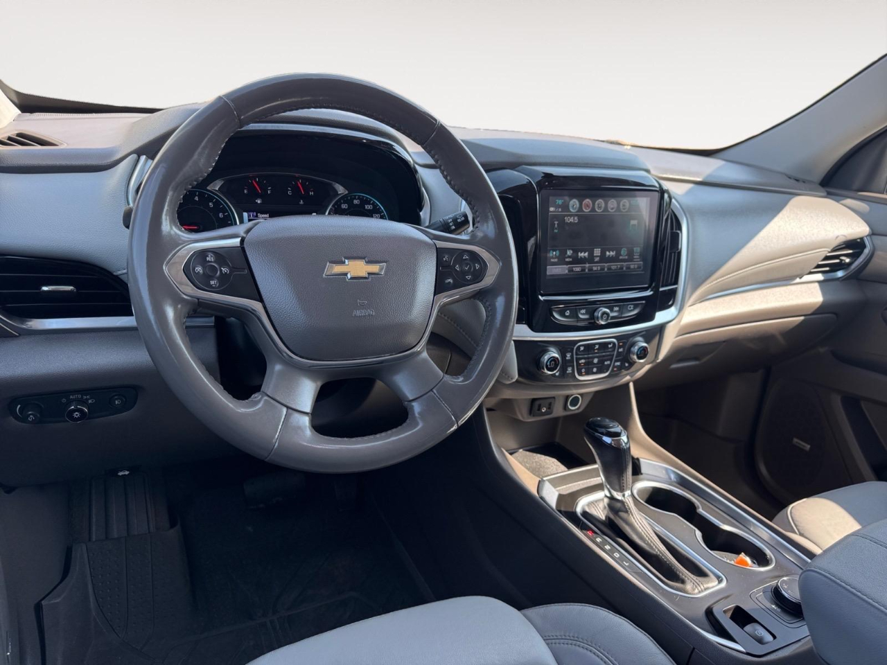 18/27 City/Highway MPG Satin Steel Metallic 2019 Chevrolet Traverse 3LT FWD 9-Speed Automatic 3.6L V6 SIDI VVT Awards: * 2019 KBB.com 12 Best Family Cars Floor Liner Package (LPO) (1st & 2nd Row All-Weather Floor Liner (LPO), 3rd Row All-Weather Floor Liner (LPO), and Integrated Cargo Liner (LPO)), LT Premium Package (120-Volt Power Outlet, Bose Premium 10-Speaker Audio System Feature, Radio: Chevrolet Infotainment AM/FM Stereo w/Navigation, Rear Camera Mirror, Surround Vision, and Wheels: 20" Machined Face Aluminum), Preferred Equipment Group 3LT, Trailering Equipment (Heavy-Duty Cooling System), 3.49 Axle Ratio, 3rd row seats: split-bench, 4-Wheel Disc Brakes, 6 Speakers, 7-Passenger Seating (2-2-3 Seating Configuration), ABS brakes, Air Conditioning, Alloy wheels, AM/FM radio: SiriusXM, Apple CarPlay/Android Auto, Automatic temperature control, Brake assist, Bumpers: body-color, Compass, Delay-off headlights, Driver door bin, Driver vanity mirror, Dual front impact airbags, Dual front side impact airbags, Dual SkyScape 2-Panel Power Sunroof, Electronic Stability Control, Emergency communication system, Four wheel independent suspension, Front & Rear Black Bowtie Emblems (LPO), Front anti-roll bar, Front Bucket Seats, Front Center Armrest, Front dual zone A/C, Front fog lights, Front reading lights, Fully automatic headlights, Garage door transmitter, Heated door mirrors, Heated front seats, High-Intensity Discharge Headlights, Illuminated entry, Leather-Appointed Seat Trim, Low tire pressure warning, Occupant sensing airbag, Outside temperature display, Overhead airbag, Overhead console, Panic alarm, Passenger door bin, Passenger vanity mirror, Power door mirrors, Power driver seat, Power Liftgate, Power passenger seat, Power steering, Power windows, Premium audio system: Chevrolet MyLink, Radio data system, Radio: Chevrolet Infotainment AM/FM w/8" Screen, Rear air conditioning, Rear anti-roll bar, Rear reading lights, Rear window defroster, Rear window wiper, Remote keyless entry, Roof rack: rails only, Security system, Speed control, Speed-sensing steering, Spoiler, Steering wheel mounted audio controls, Tachometer, Telescoping steering wheel, Tilt steering wheel, Traction control, Trip computer, Turn signal indicator mirrors, Variably intermittent wipers, Voltmeter, and Wheels: 18" Bright Silver Painted Aluminum.