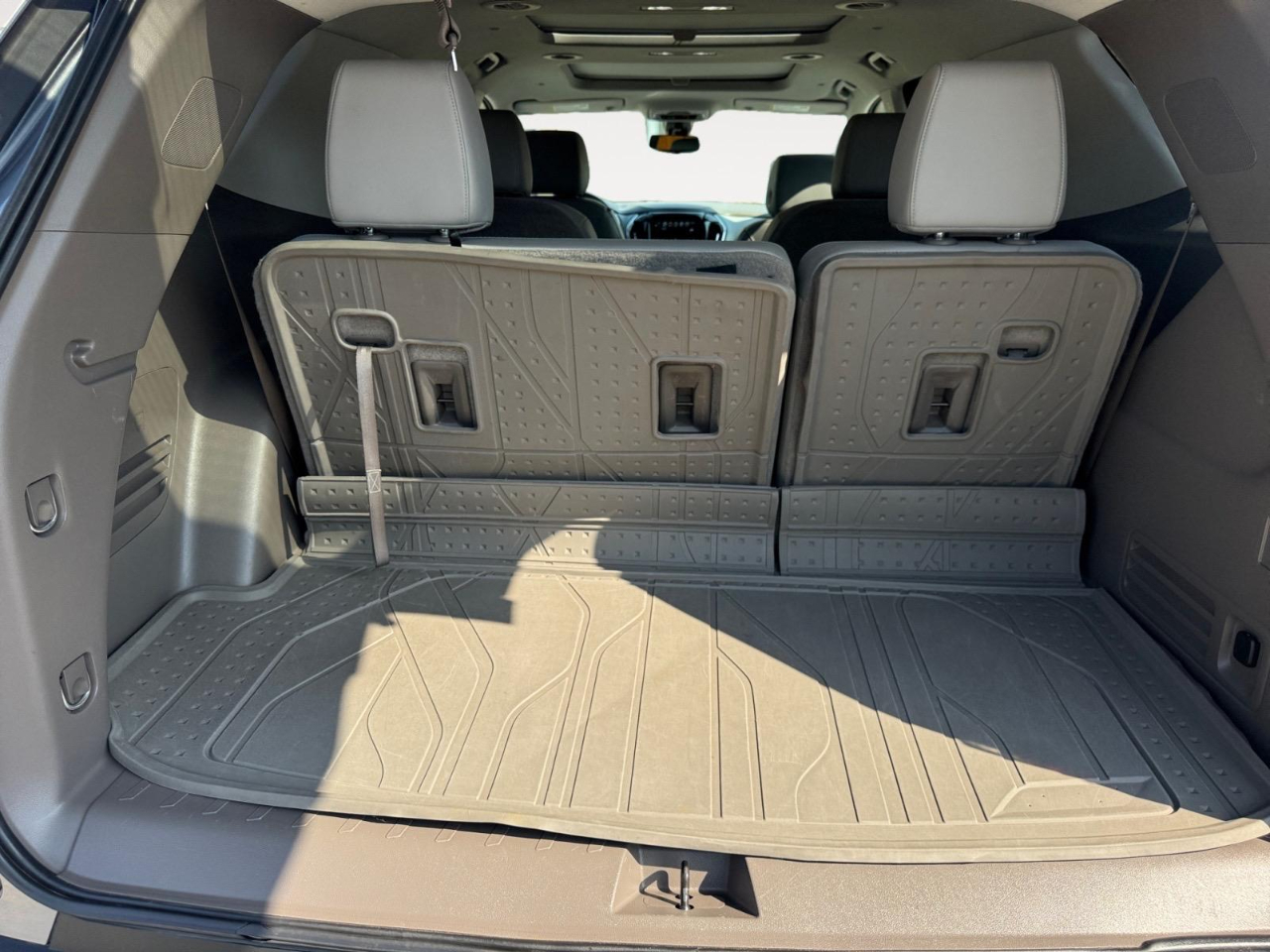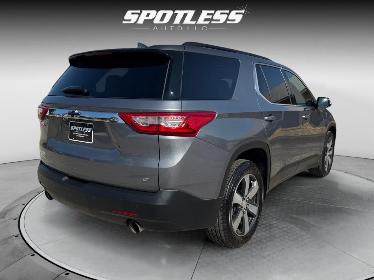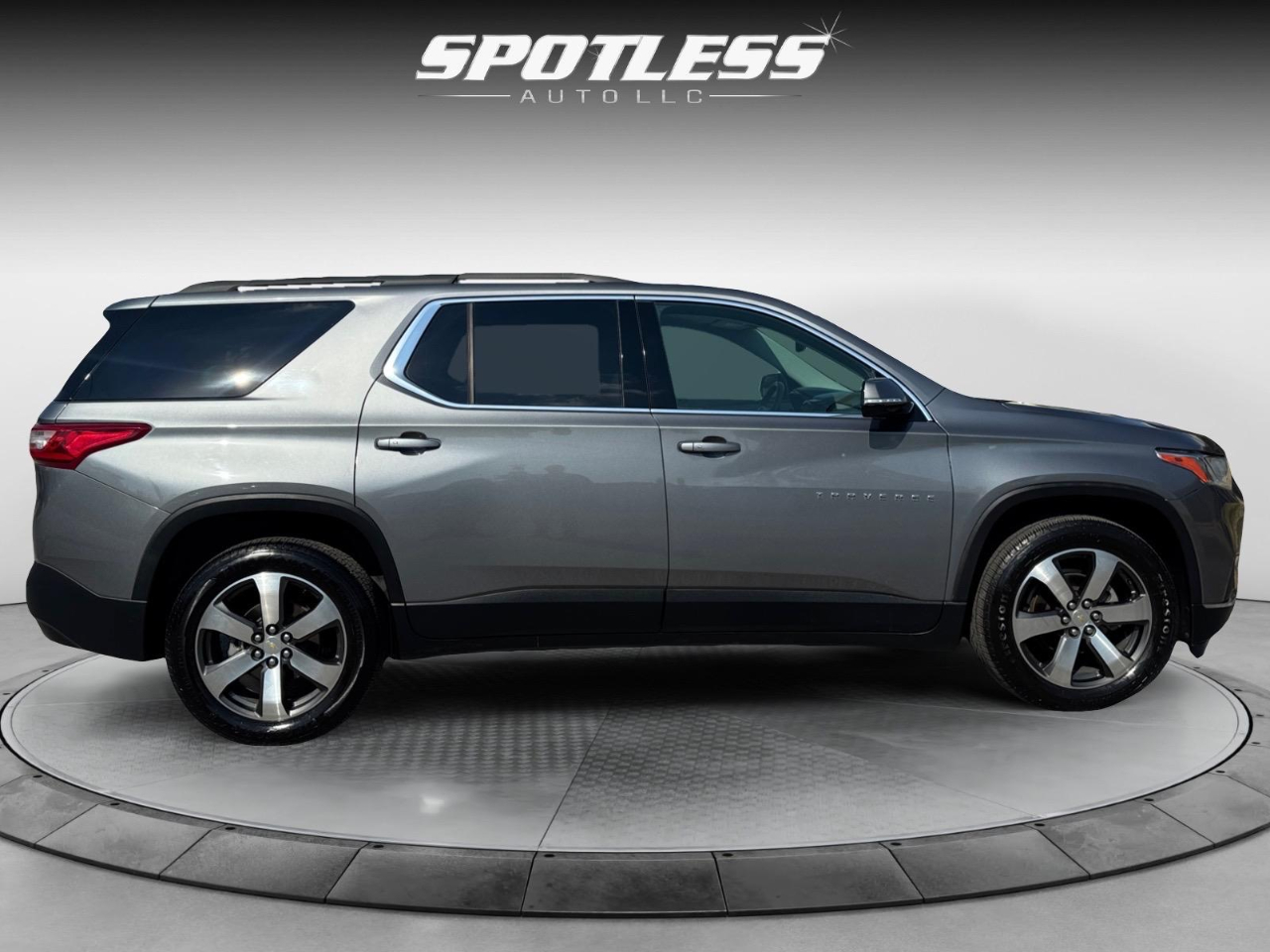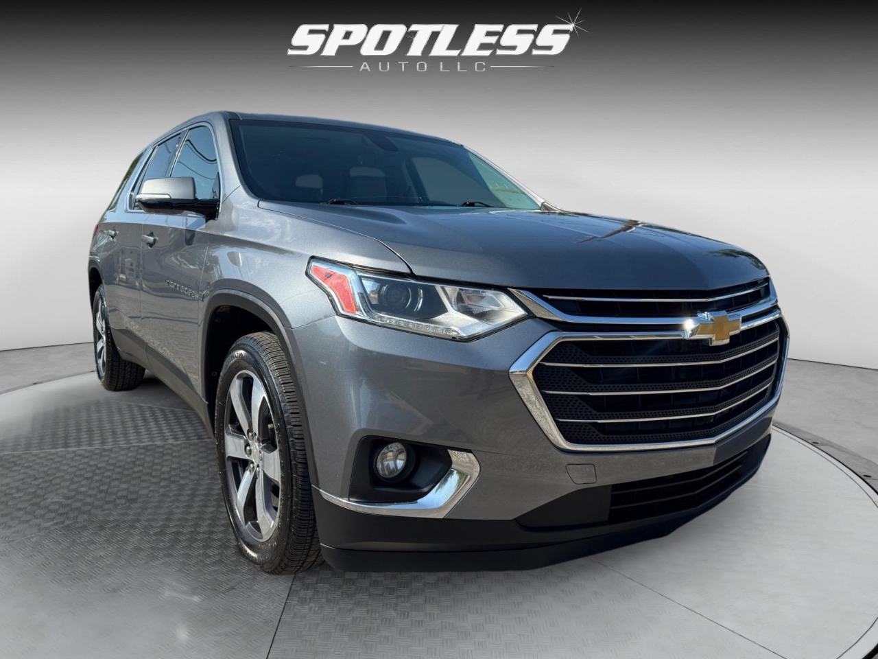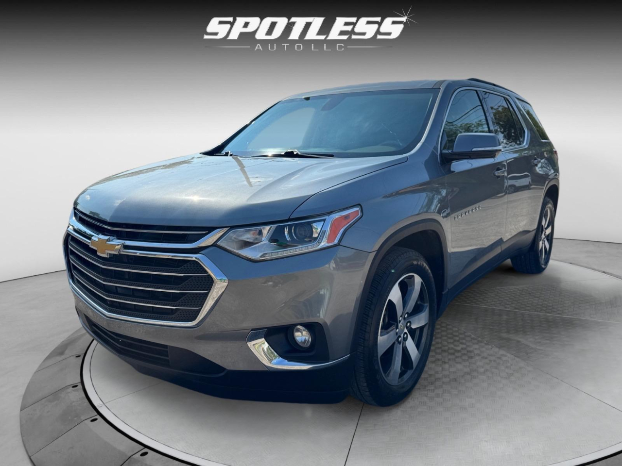 18/27 City/Highway MPG Satin Steel Metallic 2019 Chevrolet Traverse 3LT FWD 9-Speed Automatic 3.6L V6 SIDI VVT Awards: * 2019 KBB.com 12 Best Family Cars Floor Liner Package (LPO) (1st & 2nd Row All-Weather Floor Liner (LPO), 3rd Row All-Weather Floor Liner (LPO), and Integrated Cargo Liner (LPO)), LT Premium Package (120-Volt Power Outlet, Bose Premium 10-Speaker Audio System Feature, Radio: Chevrolet Infotainment AM/FM Stereo w/Navigation, Rear Camera Mirror, Surround Vision, and Wheels: 20" Machined Face Aluminum), Preferred Equipment Group 3LT, Trailering Equipment (Heavy-Duty Cooling System), 3.49 Axle Ratio, 3rd row seats: split-bench, 4-Wheel Disc Brakes, 6 Speakers, 7-Passenger Seating (2-2-3 Seating Configuration), ABS brakes, Air Conditioning, Alloy wheels, AM/FM radio: SiriusXM, Apple CarPlay/Android Auto, Automatic temperature control, Brake assist, Bumpers: body-color, Compass, Delay-off headlights, Driver door bin, Driver vanity mirror, Dual front impact airbags, Dual front side impact airbags, Dual SkyScape 2-Panel Power Sunroof, Electronic Stability Control, Emergency communication system, Four wheel independent suspension, Front & Rear Black Bowtie Emblems (LPO), Front anti-roll bar, Front Bucket Seats, Front Center Armrest, Front dual zone A/C, Front fog lights, Front reading lights, Fully automatic headlights, Garage door transmitter, Heated door mirrors, Heated front seats, High-Intensity Discharge Headlights, Illuminated entry, Leather-Appointed Seat Trim, Low tire pressure warning, Occupant sensing airbag, Outside temperature display, Overhead airbag, Overhead console, Panic alarm, Passenger door bin, Passenger vanity mirror, Power door mirrors, Power driver seat, Power Liftgate, Power passenger seat, Power steering, Power windows, Premium audio system: Chevrolet MyLink, Radio data system, Radio: Chevrolet Infotainment AM/FM w/8" Screen, Rear air conditioning, Rear anti-roll bar, Rear reading lights, Rear window defroster, Rear window wiper, Remote keyless entry, Roof rack: rails only, Security system, Speed control, Speed-sensing steering, Spoiler, Steering wheel mounted audio controls, Tachometer, Telescoping steering wheel, Tilt steering wheel, Traction control, Trip computer, Turn signal indicator mirrors, Variably intermittent wipers, Voltmeter, and Wheels: 18" Bright Silver Painted Aluminum.