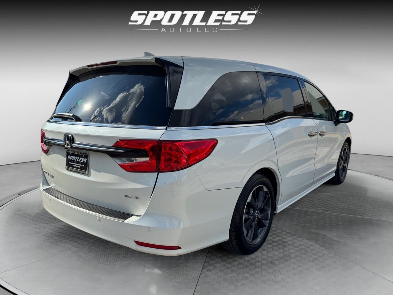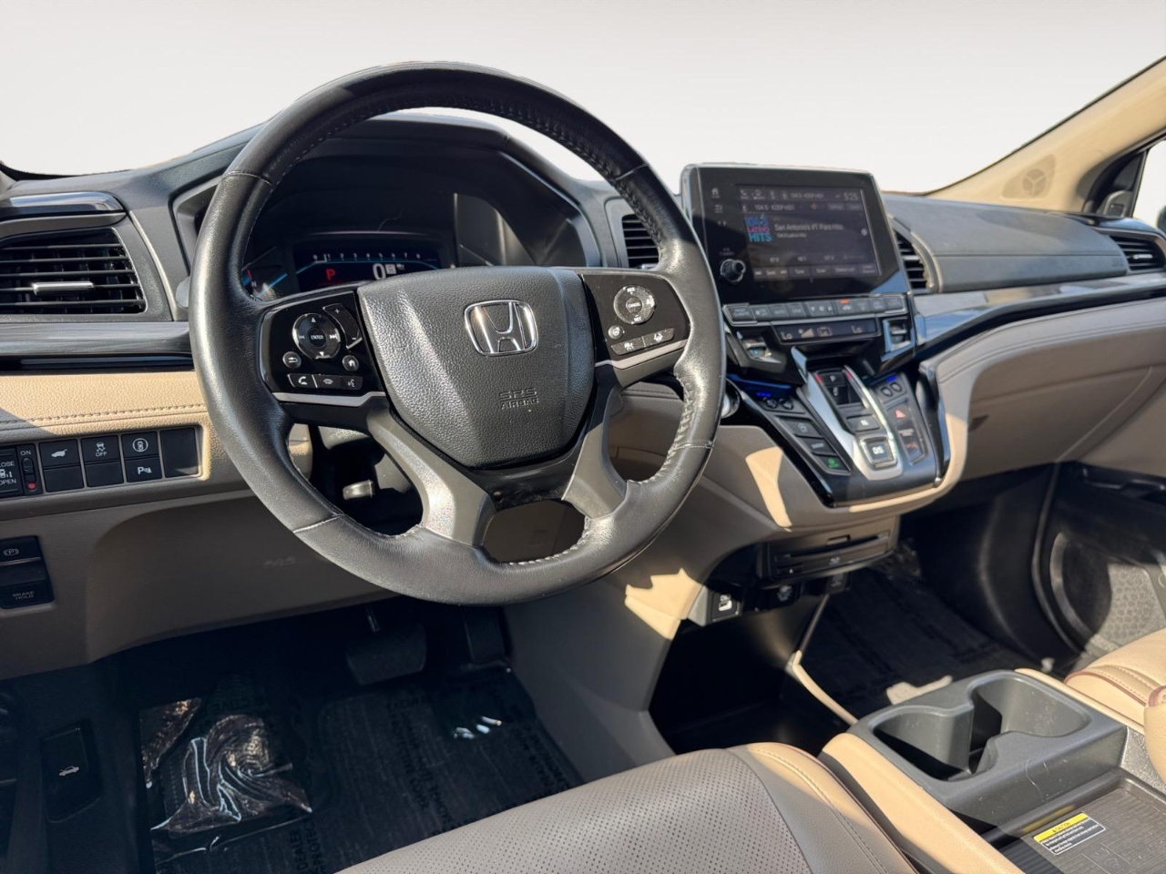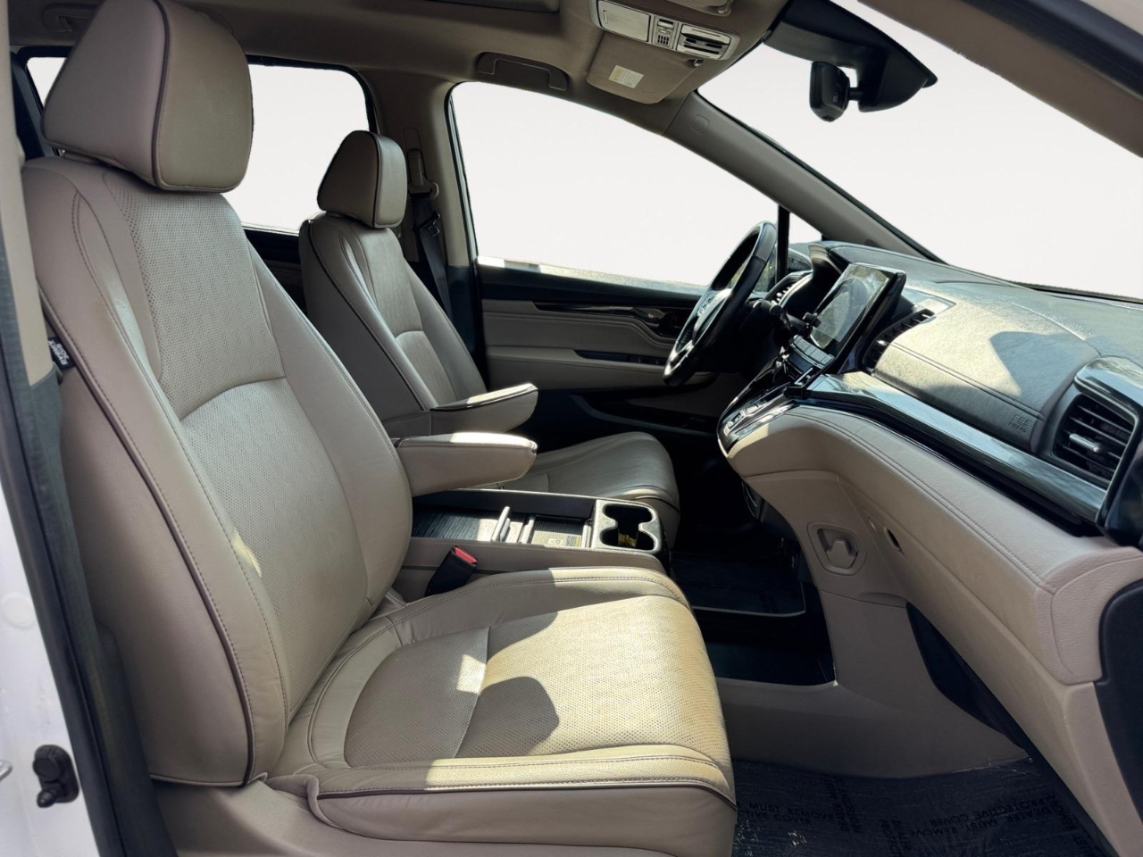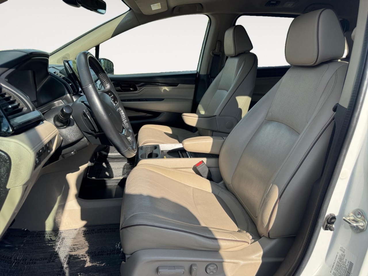 19/28 City/Highway MPG White 2021 Honda Odyssey Elite FWD 10-Speed Automatic 3.5L V6 SOHC i-VTEC 24V Awards: * ALG Residual Value Awards, Residual Value Awards 11 Speakers, 3.61 Axle Ratio, 3rd row seats: split-bench, 4-Wheel Disc Brakes, A/V remote: CabinControl, ABS brakes, Adaptive Cruise Control: Adaptive Cruise Control (ACC) with Low-Speed Follow, Air Conditioning, Alloy wheels, AM/FM radio: SiriusXM, Anti-whiplash front head restraints, Apple CarPlay/Android Auto, Auto High-beam Headlights, Auto-dimming door mirrors, Auto-dimming Rear-View mirror, Automatic temperature control, Blind Spot Information (BSI) System warning, Brake assist, Bumpers: body-color, CD player, Compass, Delay-off headlights, Driver door bin, Driver vanity mirror, Driver's Seat Mounted Armrest, Dual front impact airbags, Dual front side impact airbags, DVD-Audio, Electronic Stability Control, Emergency communication system: HondaLink, Exterior Parking Camera Rear, Forward collision: Collision Mitigation Braking System (CMBS) + FCW mitigation, Four wheel independent suspension, Front anti-roll bar, Front Bucket Seats, Front dual zone A/C, Front fog lights, Front reading lights, Fully automatic headlights, Garage door transmitter: HomeLink, Headphones, Heated & Ventilated Front Bucket Seats, Heated door mirrors, Heated front seats, Heated steering wheel, Illuminated entry, Knee airbag, Lane departure: Lane Keeping Assist System (LKAS) active, Leather Seat Trim, Leather steering wheel, Low tire pressure warning, Memory seat, Navigation system: Honda Satellite-Linked Navigation System, Occupant sensing airbag, Outside temperature display, Overhead airbag, Overhead console, Panic alarm, Passenger door bin, Passenger seat mounted armrest, Passenger vanity mirror, Power door mirrors, Power driver seat, Power Liftgate, Power moonroof, Power passenger seat, Power steering, Power windows, Radio data system, Radio: 550-Watt AM/FM/HD Premium Audio System, Rain sensing wipers, Rear air conditioning, Rear anti-roll bar, Rear audio controls, Rear reading lights, Rear seat center armrest, Rear window defroster, Rear window wiper, Reclining 3rd row seat, Remote keyless entry, Security system, Speed control, Speed-sensing steering, Speed-Sensitive Wipers, Split folding rear seat, Spoiler, Steering wheel mounted audio controls, Tachometer, Telescoping steering wheel, Tilt steering wheel, Traction control, Trip computer, Turn signal indicator mirrors, Variably intermittent wipers, Ventilated front seats, and Wheels: 19" Unique Machine-Finished Alloy.