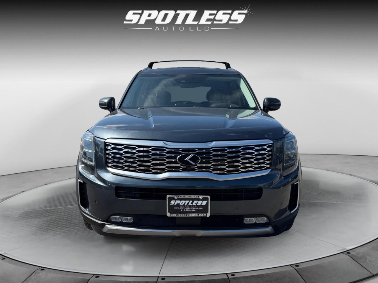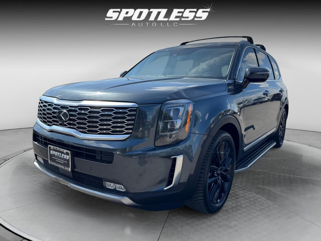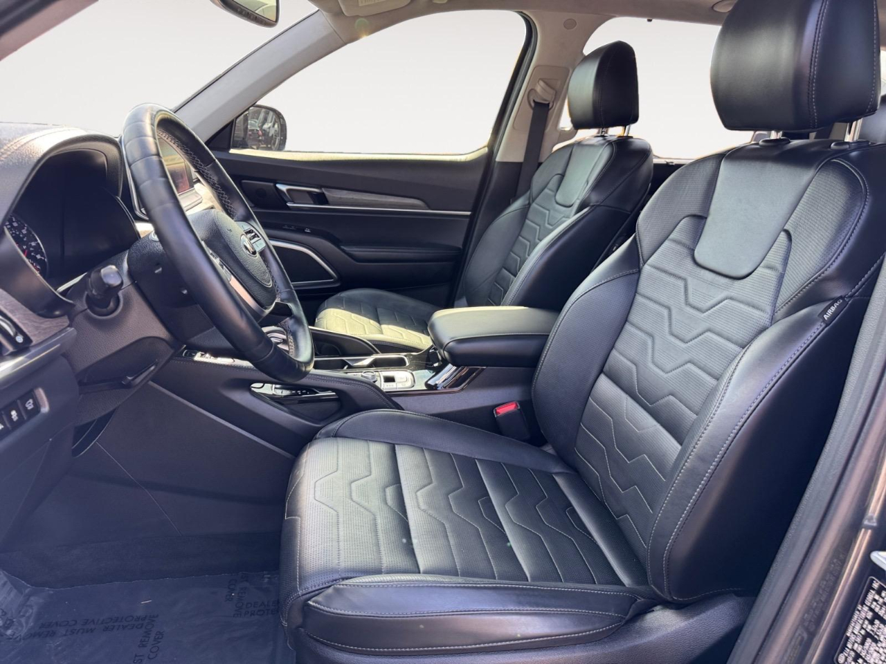 Gravity Gray 2021 Kia Telluride SX AWD 8-Speed Automatic 3.8L V6 DGI DOHC Dual CVVT Awards: * JD Power Initial Quality Study (IQS) * JD Power Automotive Performance, Execution and Layout (APEAL) Study, Initial Quality Study (IQS) SX Prestige Package (110V Inverter, Heads-Up Display, Heated & Ventilated 2nd Row Seats, Premium Cloth Headliner & Pillar Trim, Premium Nappa Leather Seat Trim, and Rain-Sensing Front Windshield Wipers), 10 Speakers, 3.648 Axle Ratio, 3rd row seats: split-bench, 4-Wheel Disc Brakes, ABS brakes, Air Conditioning, Alloy wheels, AM/FM radio: SiriusXM, Apple CarPlay & Android Auto, Auto High-beam Headlights, Auto-dimming Rear-View mirror, Automatic temperature control, Brake assist, Bumpers: body-color, Cargo Net, Compass, Delay-off headlights, Driver door bin, Driver vanity mirror, Dual front impact airbags, Dual front side impact airbags, Electronic Stability Control, Emergency communication system: 911 Connect, Four wheel independent suspension, Front anti-roll bar, Front Bucket Seats, Front Center Armrest, Front dual zone A/C, Front fog lights, Front reading lights, Fully automatic headlights, Garage door transmitter: HomeLink, Heated & Ventilated Front Bucket Seats, Heated door mirrors, Heated front seats, Heated steering wheel, Illuminated entry, Knee airbag, Leather Seat Trim, Leather Shift Knob, Leather steering wheel, Low tire pressure warning, Memory seat, Navigation System, Occupant sensing airbag, Outside temperature display, Overhead airbag, Overhead console, Panic alarm, Passenger door bin, Passenger vanity mirror, Power door mirrors, Power driver seat, Power Liftgate, Power moonroof, Power passenger seat, Power steering, Power windows, Radio data system, Radio: AM/FM/SIRIUS Premium Audio, Rear air conditioning, Rear anti-roll bar, Rear audio controls, Rear reading lights, Rear window defroster, Rear window wiper, Reclining 3rd row seat, Remote keyless entry, Roof rack: rails only, Security system, Smart Key w/ Push Button and Remote Start, Speed control, Speed-sensing steering, Split folding rear seat, Spoiler, Steering wheel mounted audio controls, Tachometer, Telescoping steering wheel, Tilt steering wheel, Traction control, Trip computer, Turn signal indicator mirrors, Variably intermittent wipers, Ventilated front seats, Wheel Locks, and Wheels: 7.5" x 20" Black Finish Alloy.