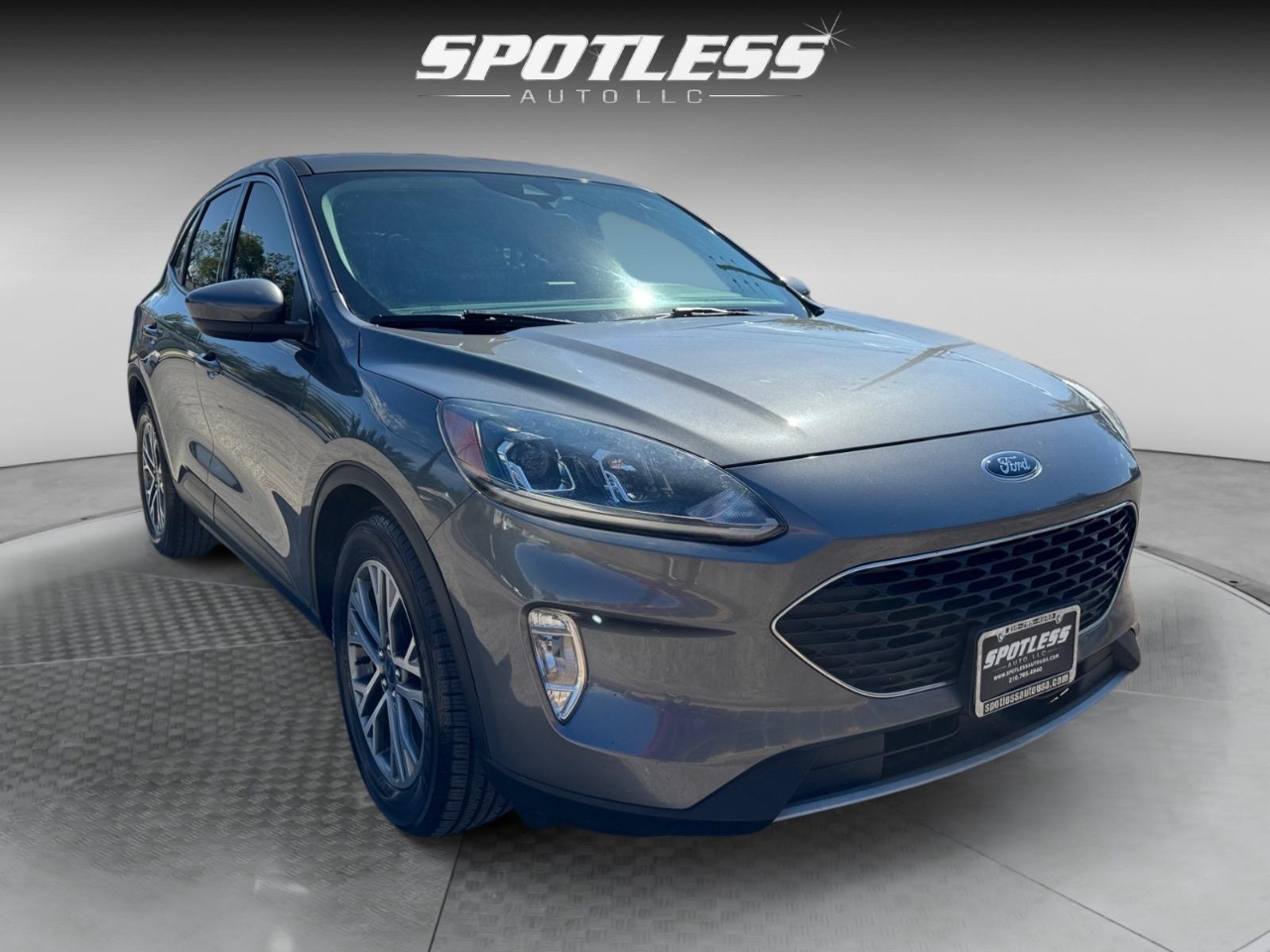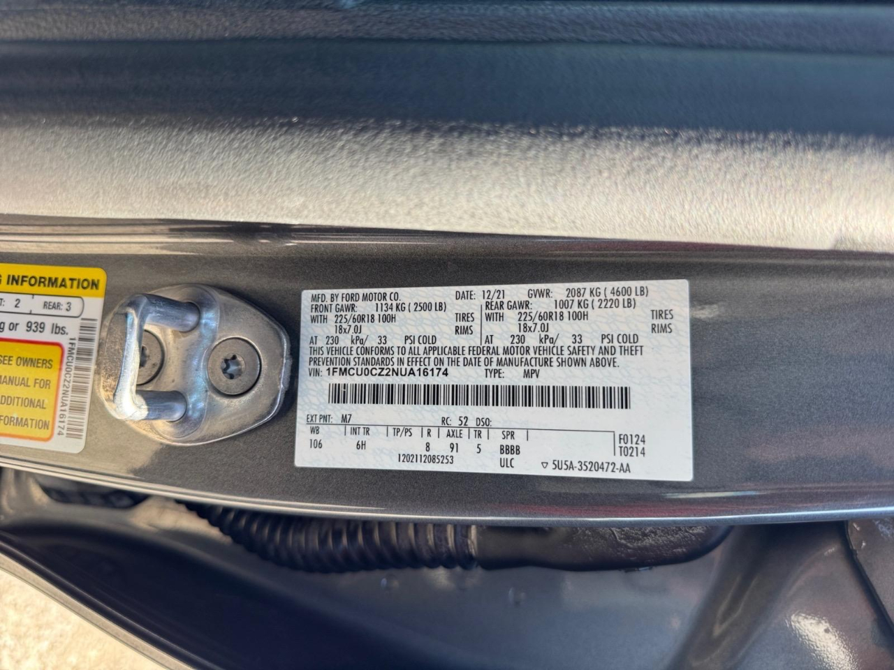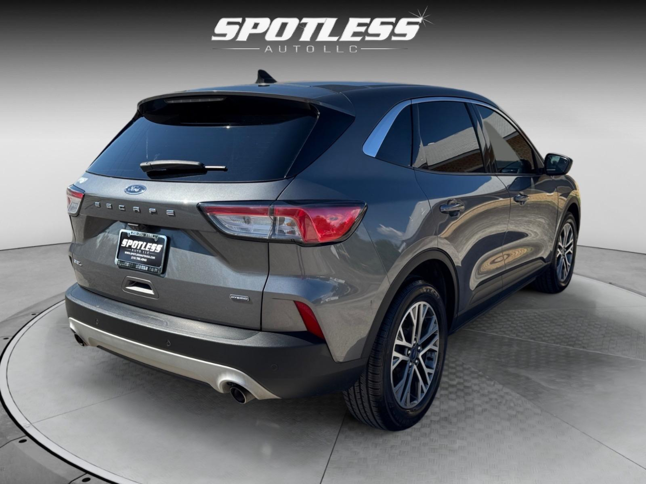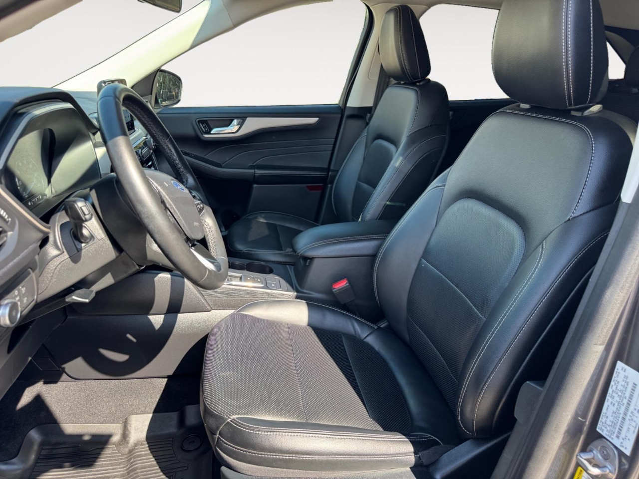44/37 City/Highway MPG Gray Metallic 2022 Ford Escape Hybrid SEL FWD eCVT 2.5L iVCT 2.5L iVCT. Equipment Group 303A (Electronic Fuel Door Release, Instrument Panel w/6.5" Digital Screen, Neutral Towing Capability, and Pedestrian Alert Sounder), Ford Co-Pilot360 Assist+ (Intelligent Adaptive Cruise Control w/Stop-and-Go, Speed Sign Recognition, and Voice-Activated Touchscreen Navigation System), 2.5L iVCT, 18" Machined-Face Aluminum Wheels, 2.91 Axle Ratio, 4-Wheel Disc Brakes, 6 Speakers, ABS brakes, Air Conditioning, Alloy wheels, AM/FM radio: SiriusXM, AM/FM Stereo, Auto High-beam Headlights, Automatic temperature control, Brake assist, Bumpers: body-color, Compass, Delay-off headlights, Driver door bin, Driver vanity mirror, Dual front impact airbags, Dual front side impact airbags, Easy Access Cargo Shade, Electronic Stability Control, Emergency communication system: SYNC 3 911 Assist, Exterior Parking Camera Rear, FordPass Connect, Four wheel independent suspension, Front & Rear Floor Liners w/o Carpet Mats, Front anti-roll bar, Front Bucket Seats, Front Center Armrest, Front dual zone A/C, Front fog lights, Front License Plate Bracket, Front reading lights, Fully automatic headlights, Heated ActiveX Trimmed Front Sport Contour Bucket Seats, Heated door mirrors, Heated front seats, Heated steering wheel, Illuminated entry, Knee airbag, Low tire pressure warning, Occupant sensing airbag, Outside temperature display, Overhead airbag, Overhead console, Panic alarm, Passenger door bin, Passenger vanity mirror, Power door mirrors, Power driver seat, Power Liftgate, Power steering, Power windows, Radio data system, Rear anti-roll bar, Rear reading lights, Rear seat center armrest, Rear window defroster, Rear window wiper, Remote keyless entry, Speed control, Speed-sensing steering, Speed-Sensitive Wipers, Split folding rear seat, Spoiler, Steering wheel mounted audio controls, SYNC 3 Communications & Entertainment System, Telescoping steering wheel, Tilt steering wheel, Traction control, Trip computer, and Variably intermittent wipers.