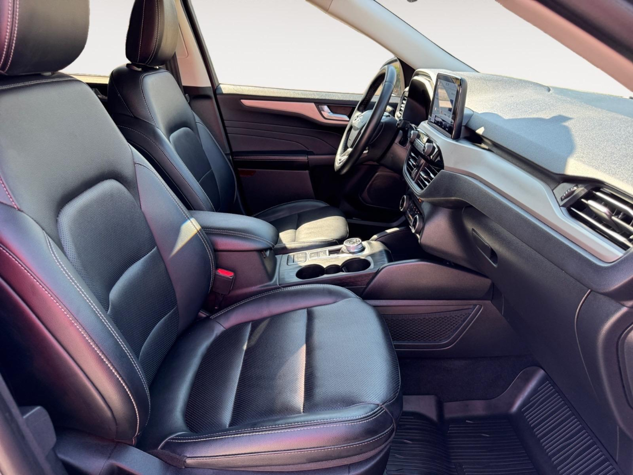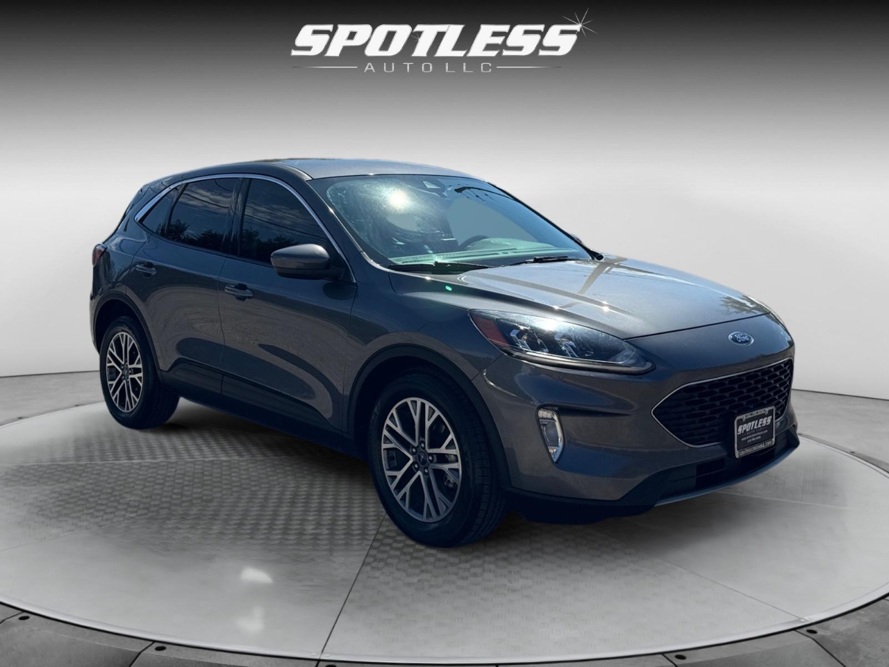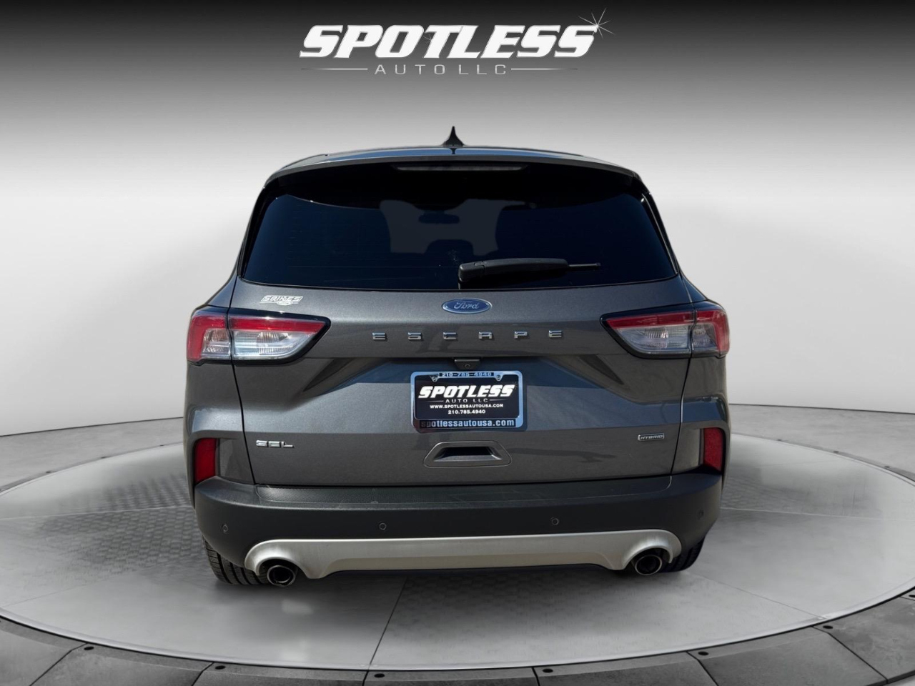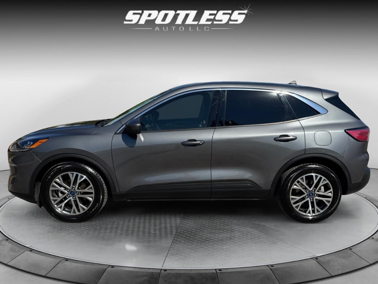 44/37 City/Highway MPG Gray Metallic 2022 Ford Escape Hybrid SEL FWD eCVT 2.5L iVCT 2.5L iVCT. Equipment Group 303A (Electronic Fuel Door Release, Instrument Panel w/6.5" Digital Screen, Neutral Towing Capability, and Pedestrian Alert Sounder), Ford Co-Pilot360 Assist+ (Intelligent Adaptive Cruise Control w/Stop-and-Go, Speed Sign Recognition, and Voice-Activated Touchscreen Navigation System), 2.5L iVCT, 18" Machined-Face Aluminum Wheels, 2.91 Axle Ratio, 4-Wheel Disc Brakes, 6 Speakers, ABS brakes, Air Conditioning, Alloy wheels, AM/FM radio: SiriusXM, AM/FM Stereo, Auto High-beam Headlights, Automatic temperature control, Brake assist, Bumpers: body-color, Compass, Delay-off headlights, Driver door bin, Driver vanity mirror, Dual front impact airbags, Dual front side impact airbags, Easy Access Cargo Shade, Electronic Stability Control, Emergency communication system: SYNC 3 911 Assist, Exterior Parking Camera Rear, FordPass Connect, Four wheel independent suspension, Front & Rear Floor Liners w/o Carpet Mats, Front anti-roll bar, Front Bucket Seats, Front Center Armrest, Front dual zone A/C, Front fog lights, Front License Plate Bracket, Front reading lights, Fully automatic headlights, Heated ActiveX Trimmed Front Sport Contour Bucket Seats, Heated door mirrors, Heated front seats, Heated steering wheel, Illuminated entry, Knee airbag, Low tire pressure warning, Occupant sensing airbag, Outside temperature display, Overhead airbag, Overhead console, Panic alarm, Passenger door bin, Passenger vanity mirror, Power door mirrors, Power driver seat, Power Liftgate, Power steering, Power windows, Radio data system, Rear anti-roll bar, Rear reading lights, Rear seat center armrest, Rear window defroster, Rear window wiper, Remote keyless entry, Speed control, Speed-sensing steering, Speed-Sensitive Wipers, Split folding rear seat, Spoiler, Steering wheel mounted audio controls, SYNC 3 Communications & Entertainment System, Telescoping steering wheel, Tilt steering wheel, Traction control, Trip computer, and Variably intermittent wipers.