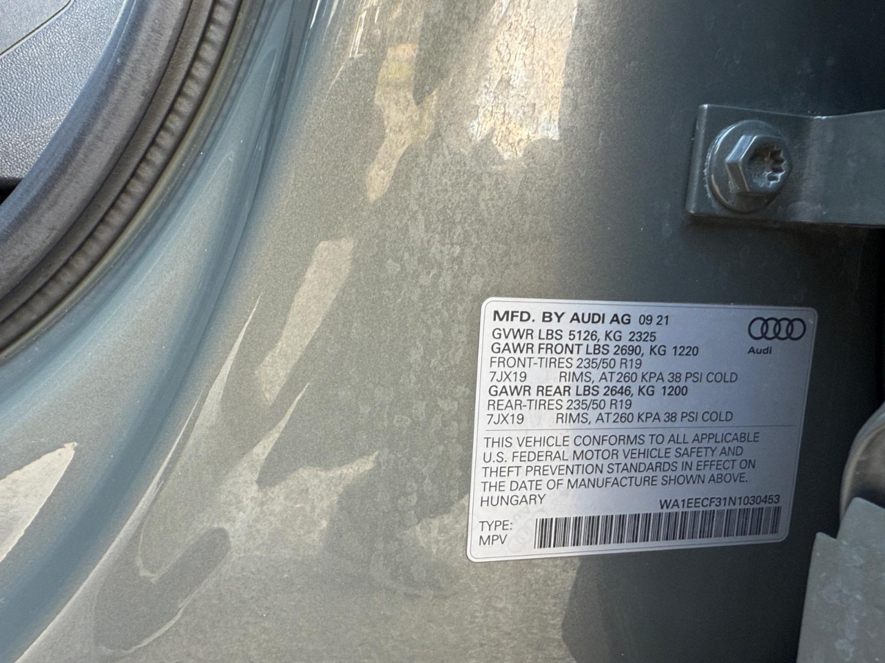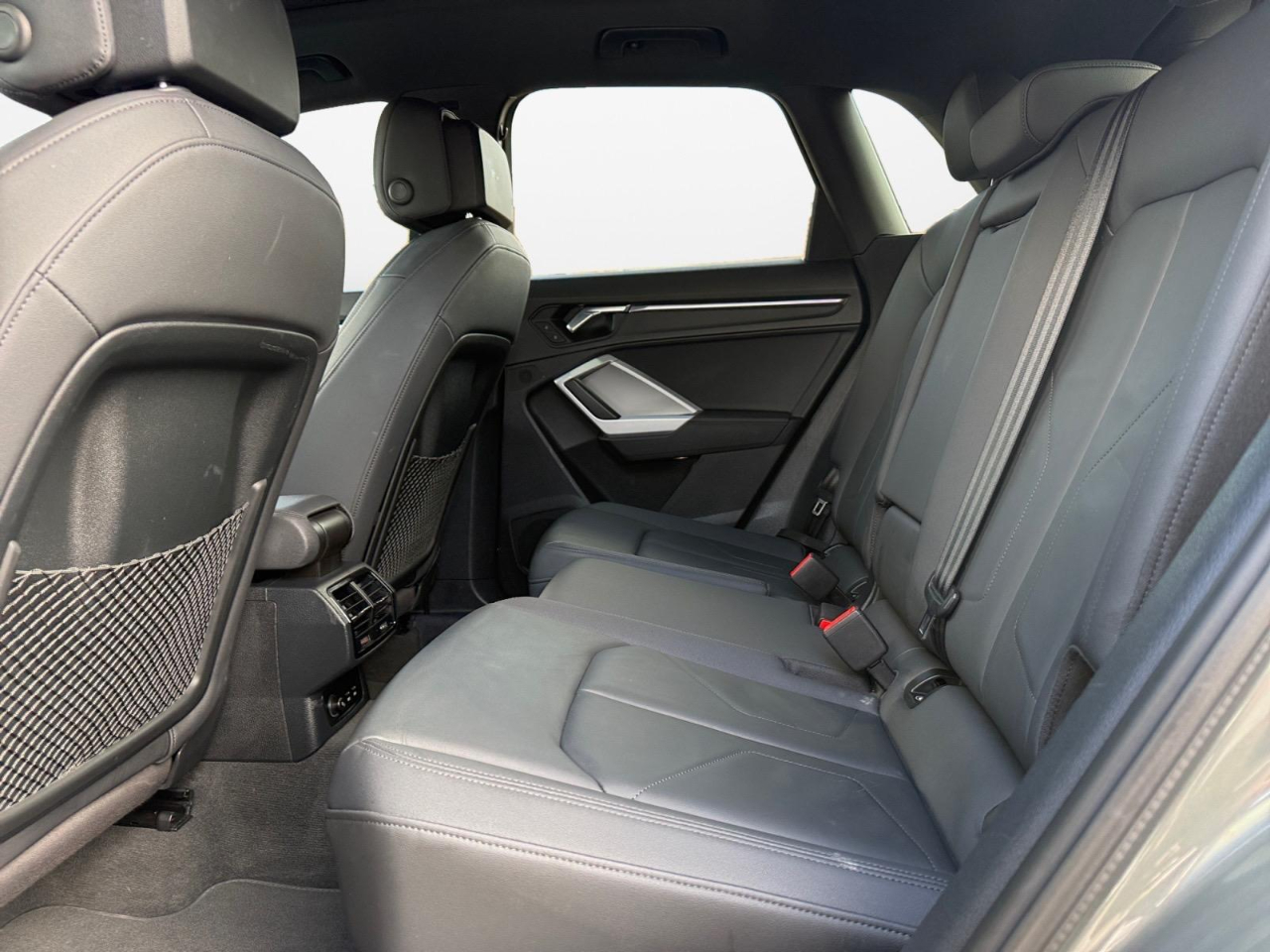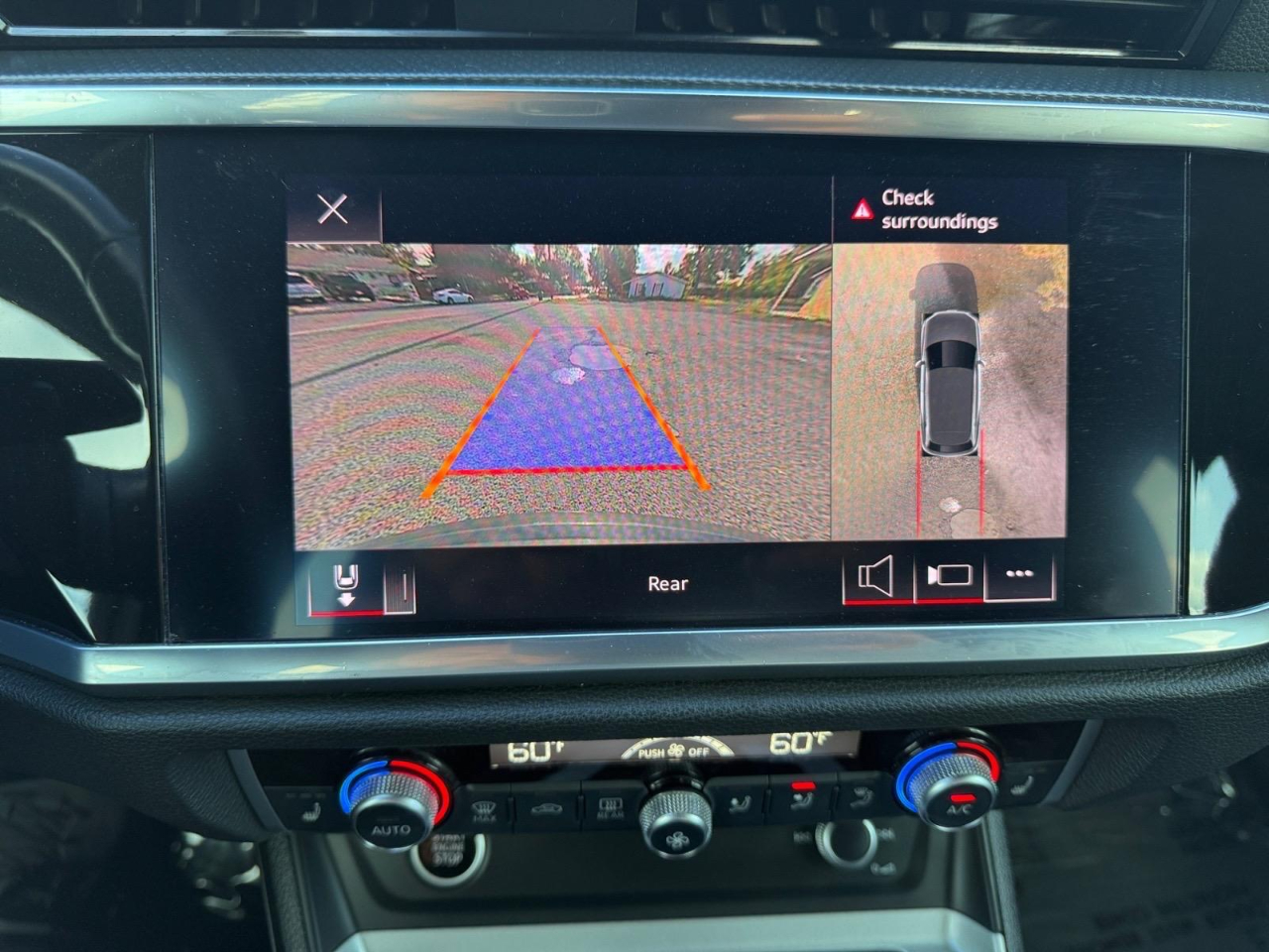 21/28 City/Highway MPG Gray Metallic 2022 Audi Q3 Premium Plus S Line quattro quattro 8-Speed Automatic with Tiptronic 2.0L 4-Cylinder TFSI 19" Wheel Package (Wheels: 19" 5-Double-Spoke Dynamic Design), Convenience Package (Alarm w/Motion Sensor, Audi Advanced Key, Driver Memory, Frameless Auto-Dimming Interior Mirror w/Compass, Heated Power-Folding Exterior Mirrors, HomeLink Garage Door Opener, and SiriusXM All Access Service), Customizable LED Interior Lighting Package Plus, LED Interior Lighting Package, Premium Plus Package (Adaptive Cruise Assist w/Lane Guidance, Audi Phone Box w/Wireless Charging, Full LED Headlights w/Unique DRL Signature, Stainless Steel Trunk Sill, and Topview Camera System), 10 Speakers, 3.533 Axle Ratio, 4-Wheel Disc Brakes, ABS brakes, Air Conditioning, Alloy wheels, AM/FM radio, Audi Beam-Rings, Audi Guard Protection Kit, Audi Phone Box Credit, Audi smartphone interface (Apple CarPlay/Android Auto), Auto High-beam Headlights, Automatic temperature control, Brake assist, Bumpers: body-color, Delay-off headlights, Driver door bin, Driver vanity mirror, Dual front impact airbags, Dual front side impact airbags, Electronic Stability Control, Emergency communication system: Audi connect CARE, Exterior Parking Camera Rear, Four wheel independent suspension, Front anti-roll bar, Front Bucket Seats, Front Center Armrest, Front dual zone A/C, Front fog lights, Front reading lights, Fully automatic headlights, Heated door mirrors, Heated Front Bucket Seats, Heated front seats, Illuminated entry, Knee airbag, Leather Seating Surfaces, Leather Shift Knob, Leather steering wheel, Low tire pressure warning, Occupant sensing airbag, Outside temperature display, Overhead airbag, Overhead console, Panic alarm, Passenger door bin, Passenger vanity mirror, Power door mirrors, Power driver seat, Power Liftgate, Power moonroof: Panoramic, Power passenger seat, Power steering, Power windows, Radio data system, Radio: Audi Sound System, Rain sensing wipers, Rear air conditioning, Rear anti-roll bar, Rear fog lights, Rear reading lights, Rear seat center armrest, Rear window defroster, Rear window wiper, Remote keyless entry, Speed control, Speed-sensing steering, Split folding rear seat, Spoiler, Steering wheel mounted audio controls, Tachometer, Telescoping steering wheel, Tilt steering wheel, Traction control, Trip computer, Turn signal indicator mirrors, USB Cables (DISC), Variably intermittent wipers, and Wheels: 18" 5-V-Spoke-S Design.