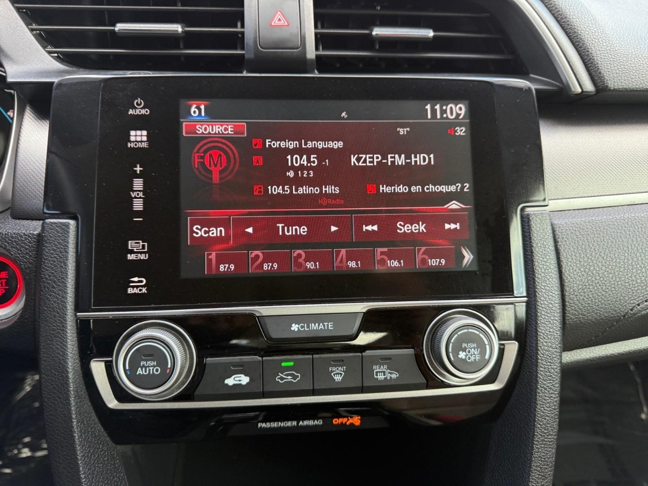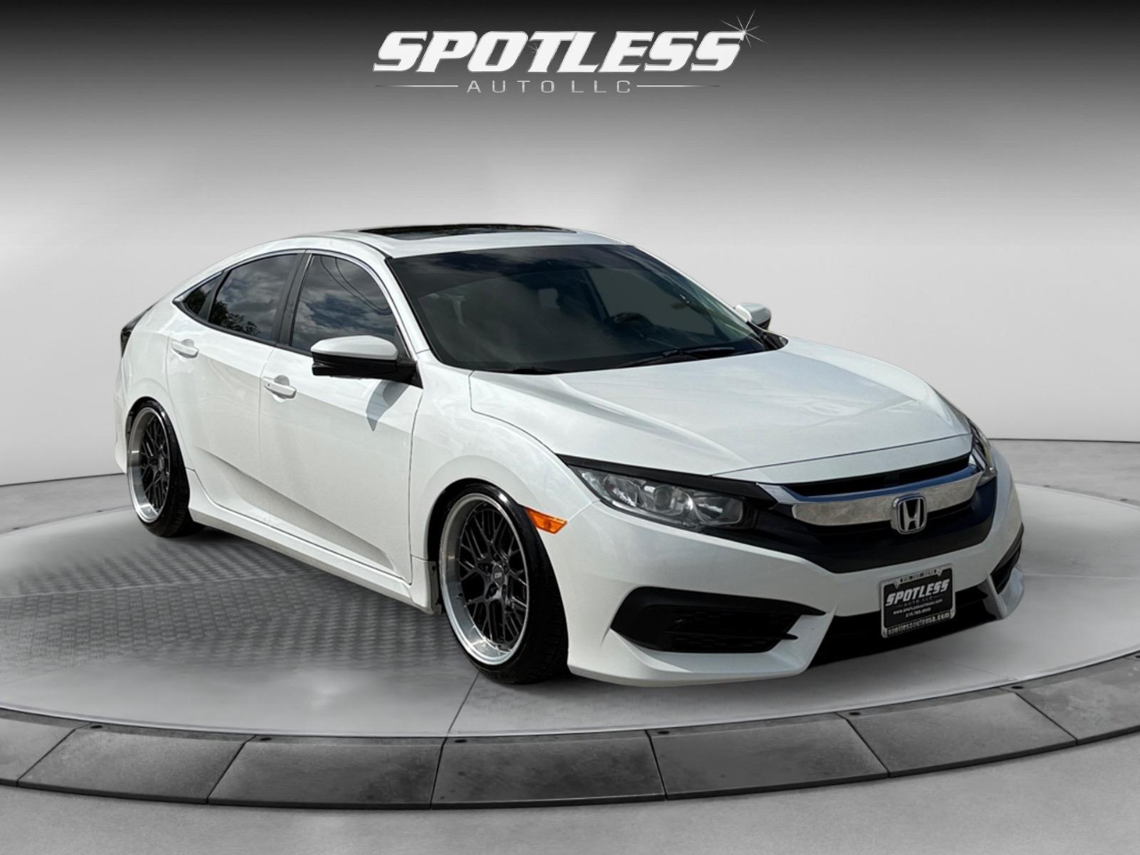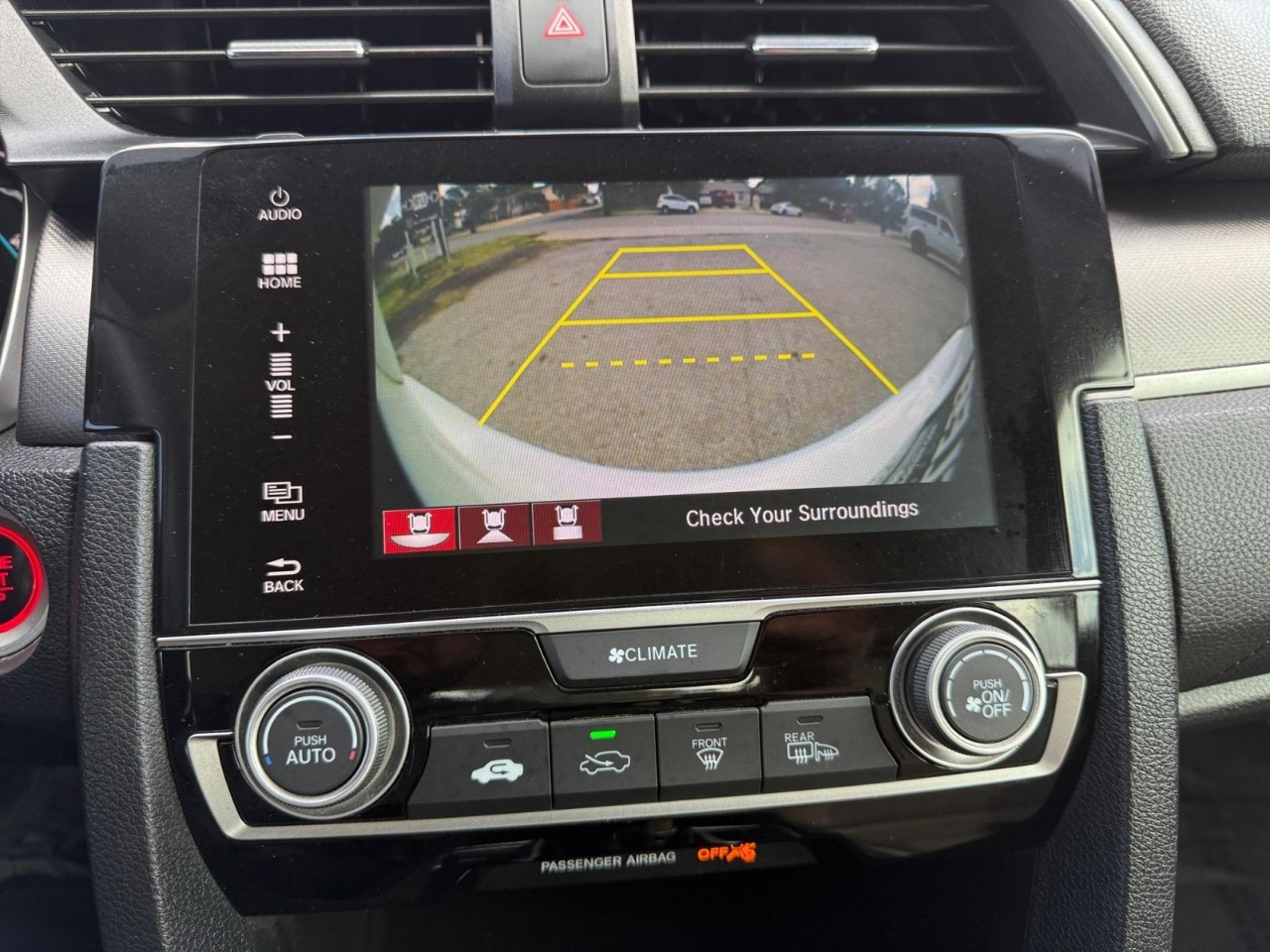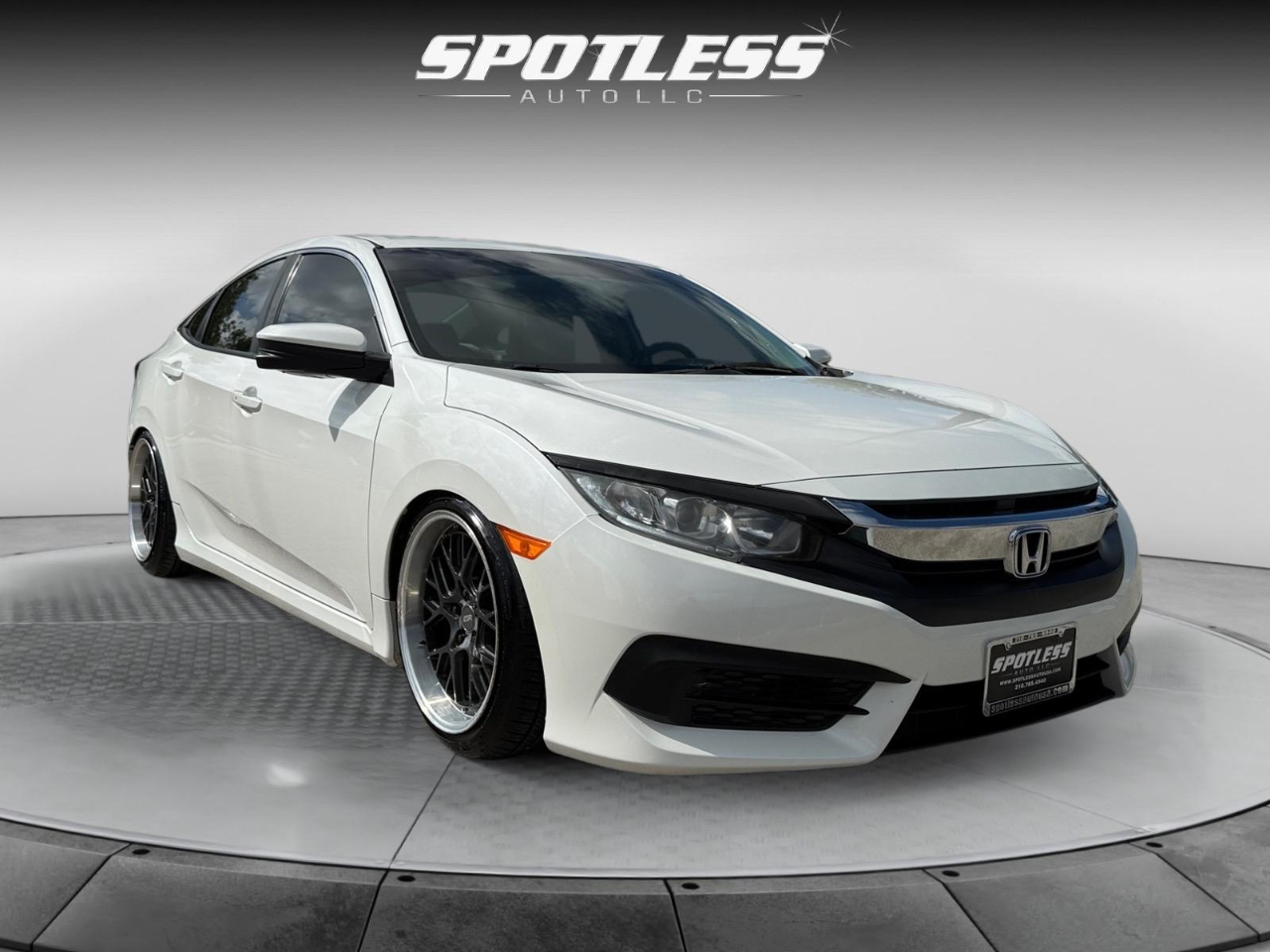 31/40 City/Highway MPG White 2017 Honda Civic EX FWD CVT 2.0L I4 DOHC 16V i-VTEC Cloth. Awards: * 2017 IIHS Top Safety Pick (When equipped with Honda Sensing) * 2017 KBB.com Brand Image Awards * 2017 KBB.com 10 Most Awarded Brands Kelley Blue Book Brand Image Awards are based on the Brand Watch(tm) study from Kelley Blue Book Market Intelligence. Award calculated among non-luxury shoppers. For more information, visit www.kbb.com. Kelley Blue Book is a registered trademark of Kelley Blue Book Co., Inc. Cloth, 16" Alloy Wheels, 4-Wheel Disc Brakes, 8 Speakers, ABS brakes, Air Conditioning, Alloy wheels, AM/FM radio, Apple CarPlay/Android Auto, Automatic temperature control, Brake assist, Bumpers: body-color, Cloth Seat Trim, Compass, Delay-off headlights, Driver door bin, Driver vanity mirror, Dual front impact airbags, Dual front side impact airbags, Electronic Stability Control, Emergency communication system, Exterior Parking Camera Rear, Four wheel independent suspension, Front anti-roll bar, Front Bucket Seats, Front Center Armrest, Front reading lights, Fully automatic headlights, Heated door mirrors, Illuminated entry, Low tire pressure warning, Occupant sensing airbag, Outside temperature display, Overhead airbag, Panic alarm, Passenger door bin, Passenger vanity mirror, Power door mirrors, Power moonroof, Power steering, Power windows, Radio data system, Radio: 180-Watt AM/FM/HD/SiriusXM Audio System, Rear anti-roll bar, Rear seat center armrest, Rear window defroster, Reclining Front Bucket Seats, Remote keyless entry, Security system, Speed control, Speed-sensing steering, Speed-Sensitive Wipers, Split folding rear seat, Steering wheel mounted audio controls, Tachometer, Telescoping steering wheel, Tilt steering wheel, Traction control, Trip computer, and Variably intermittent wipers.