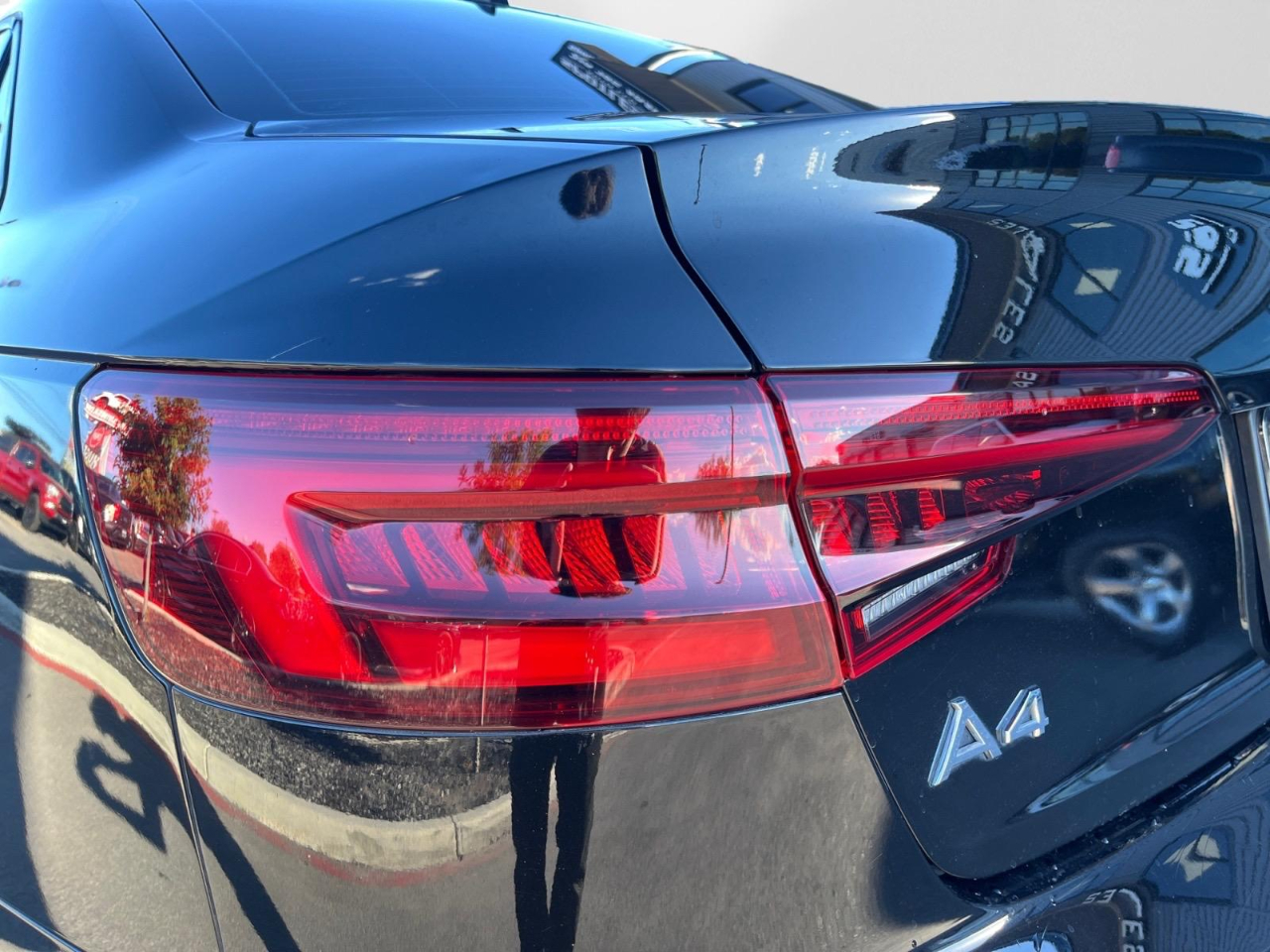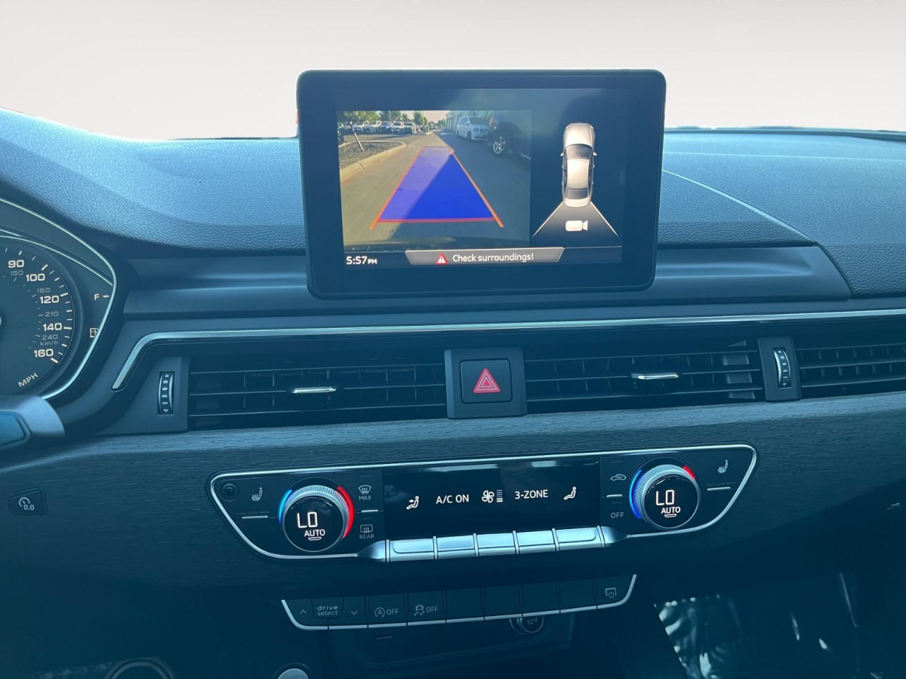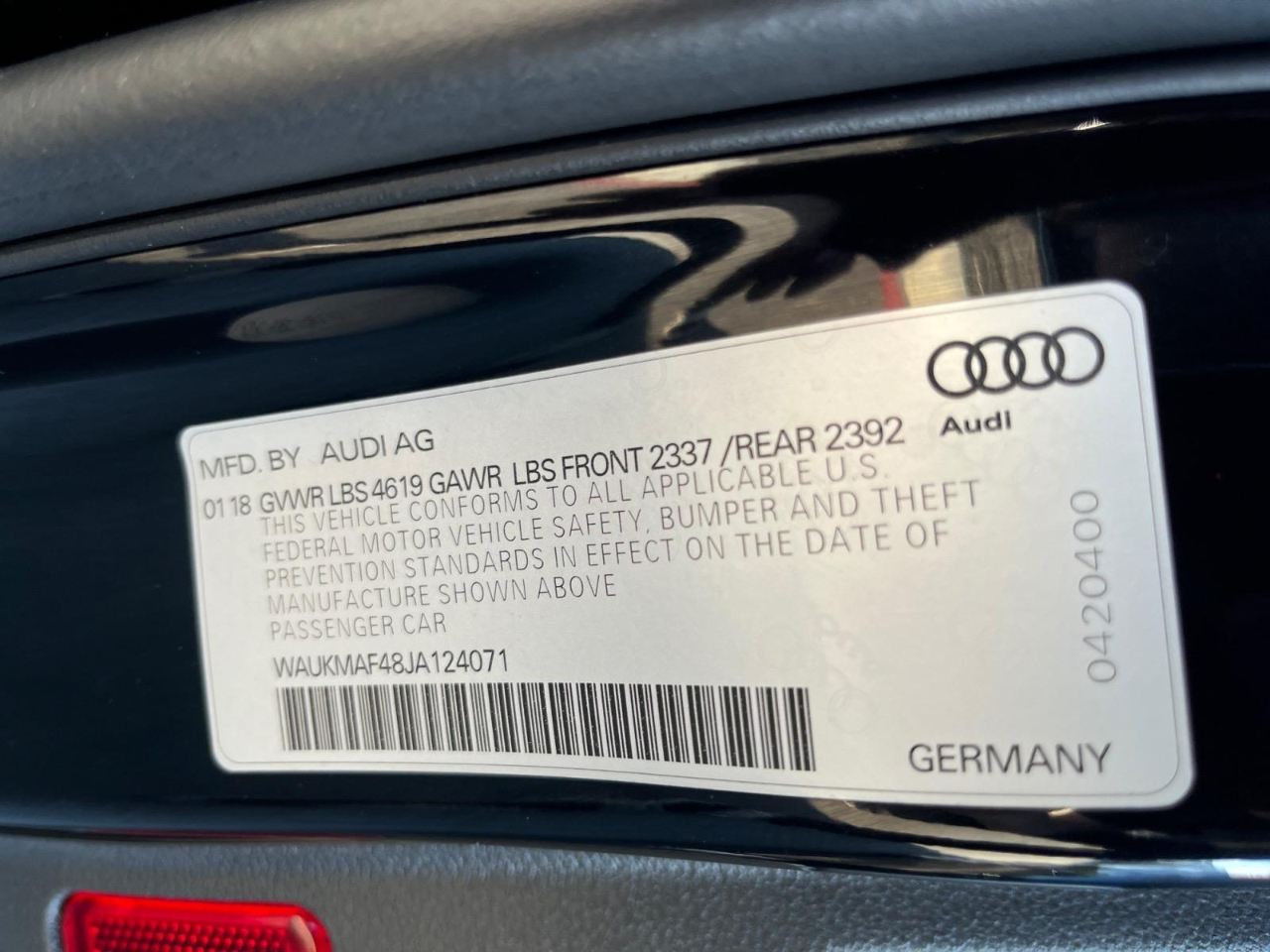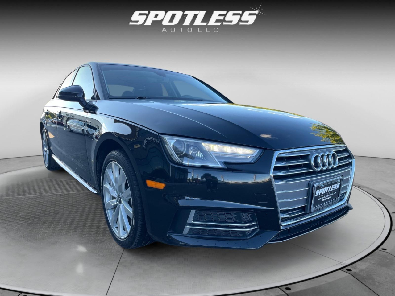 27/37 City/Highway MPG Black Metallic 2018 Audi A4 2.0T ultra Premium FrontTrak 7-Speed Automatic S tronic 2.0L I4 TFSI DOHC 7-Speed Automatic S tronic, Black Leather. Awards: * 2018 KBB.com 10 Most Awarded Brands 18" Wheel Package (Wheels: 8" x 18" 10-Spoke-Star Design), Convenience Package (Anti-Theft Alarm System w/Immobilizer, Audi Advanced Key, Color Driver Information System w/Trip Computer, Driver Memory, Heated Auto-Dimming Power Ext Mirrors w/Memory, and SiriusXM Satellite Radio), 7-Speed Automatic S tronic, Black Leather, 10 Speakers, 4-Wheel Disc Brakes, ABS brakes, Air Conditioning, Alloy wheels, AM/FM radio, Anti-whiplash front head restraints, Audi Beam-Rings, Audi Guard All-Weather Floor Mats, Audi smartphone interface (Apple CarPlay/Android Auto), Auto-dimming Rear-View mirror, Automatic temperature control, Brake assist, Bumpers: body-color, Compass, Delay-off headlights, Driver door bin, Driver vanity mirror, Dual front impact airbags, Dual front side impact airbags, Electronic Stability Control, Exterior Parking Camera Rear, Four wheel independent suspension, Front anti-roll bar, Front Bucket Seats, Front Center Armrest, Front dual zone A/C, Front fog lights, Front reading lights, Garage door transmitter: HomeLink, Heated 3-Step Front Bucket Seats, Heated door mirrors, Heated front seats, High intensity discharge headlights: Xenon plus, Illuminated entry, Knee airbag, Leather Seating Surfaces, Leather Shift Knob, Leather steering wheel, Low tire pressure warning, Natural Gray Oak Inlays, Occupant sensing airbag, Outside temperature display, Overhead airbag, Overhead console, Panic alarm, Passenger door bin, Passenger vanity mirror, Power door mirrors, Power driver seat, Power moonroof, Power passenger seat, Power steering, Power windows, Radio data system, Radio: Audi MMI Navigation Plus w/MMI Touch, Radio: Audi Sound System, Rain sensing wipers, Rear air conditioning, Rear anti-roll bar, Rear fog lights, Rear reading lights, Rear seat center armrest, Rear window defroster, Remote CD player, Remote keyless entry, Speed control, Speed-sensing steering, Speed-Sensitive Wipers, Split folding rear seat, Steering wheel mounted audio controls, Tachometer, Telescoping steering wheel, Tilt steering wheel, Traction control, Trip computer, Turn signal indicator mirrors, USB Cables (DISC), Variably intermittent wipers, and Wheels: 7.5" x 17" 5-Spoke-Y Design.