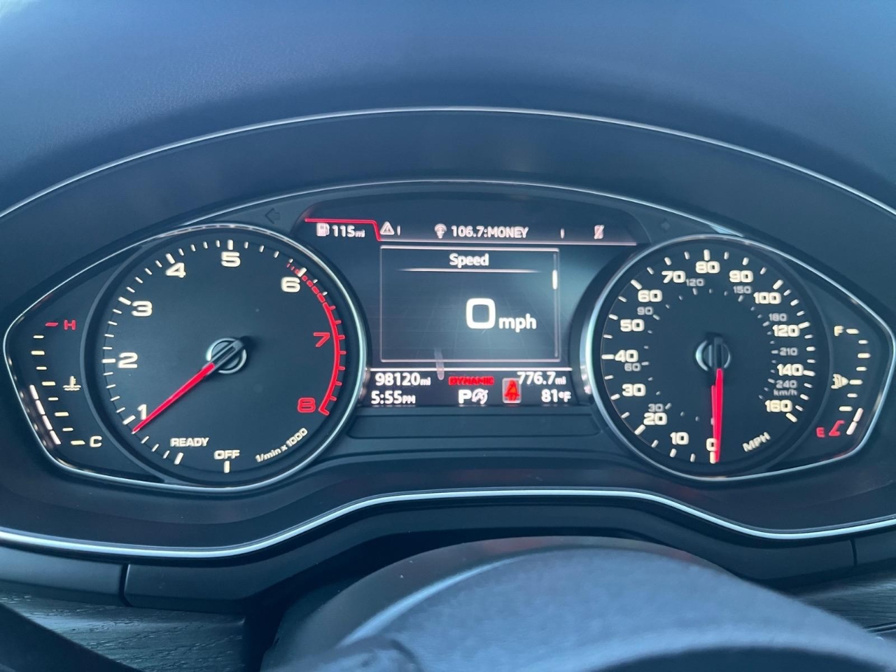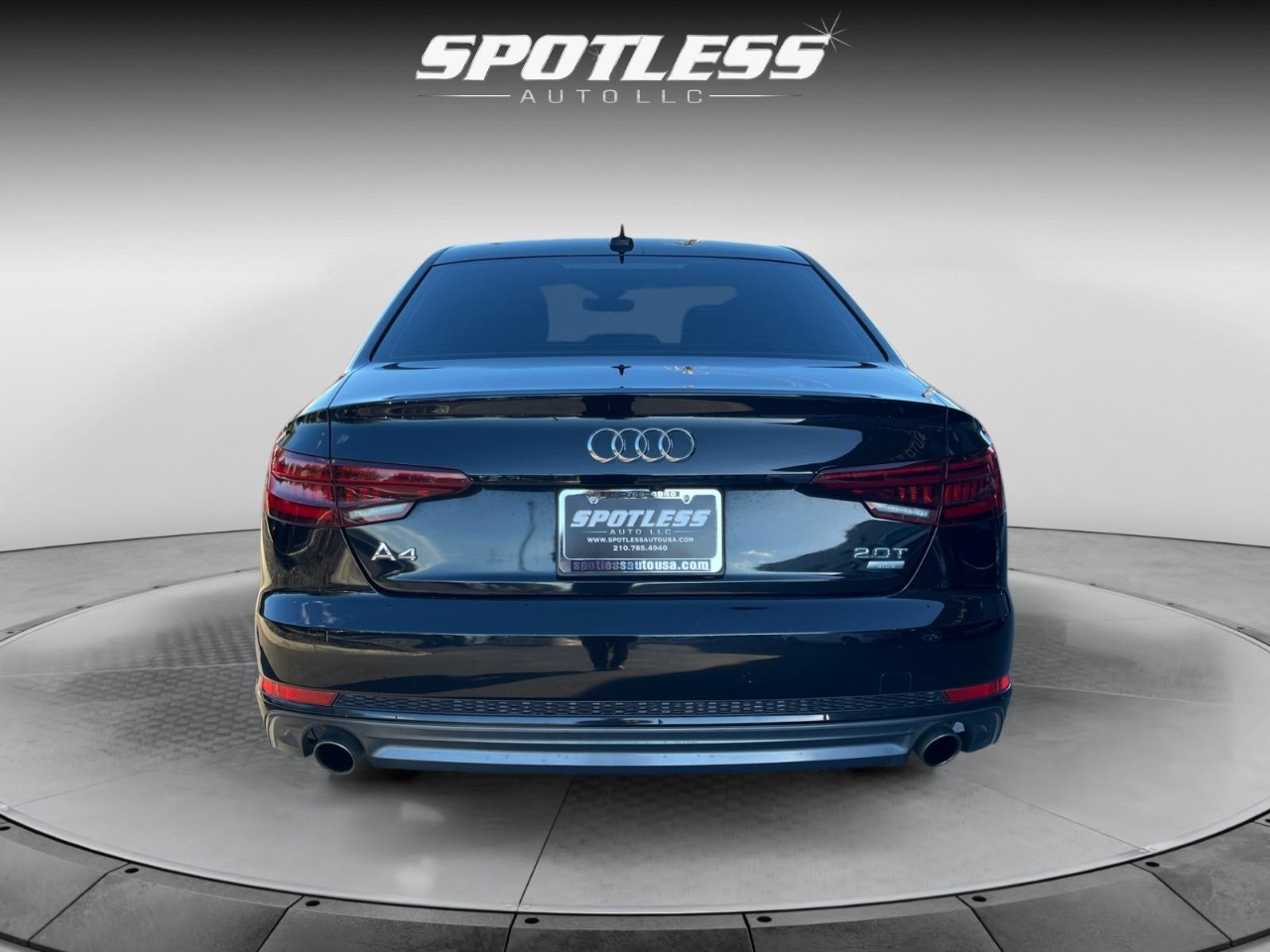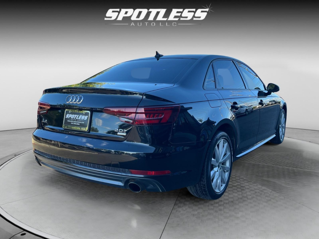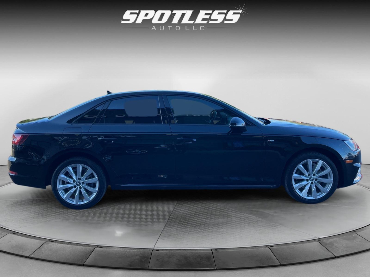 27/37 City/Highway MPG Black Metallic 2018 Audi A4 2.0T ultra Premium FrontTrak 7-Speed Automatic S tronic 2.0L I4 TFSI DOHC 7-Speed Automatic S tronic, Black Leather. Awards: * 2018 KBB.com 10 Most Awarded Brands 18" Wheel Package (Wheels: 8" x 18" 10-Spoke-Star Design), Convenience Package (Anti-Theft Alarm System w/Immobilizer, Audi Advanced Key, Color Driver Information System w/Trip Computer, Driver Memory, Heated Auto-Dimming Power Ext Mirrors w/Memory, and SiriusXM Satellite Radio), 7-Speed Automatic S tronic, Black Leather, 10 Speakers, 4-Wheel Disc Brakes, ABS brakes, Air Conditioning, Alloy wheels, AM/FM radio, Anti-whiplash front head restraints, Audi Beam-Rings, Audi Guard All-Weather Floor Mats, Audi smartphone interface (Apple CarPlay/Android Auto), Auto-dimming Rear-View mirror, Automatic temperature control, Brake assist, Bumpers: body-color, Compass, Delay-off headlights, Driver door bin, Driver vanity mirror, Dual front impact airbags, Dual front side impact airbags, Electronic Stability Control, Exterior Parking Camera Rear, Four wheel independent suspension, Front anti-roll bar, Front Bucket Seats, Front Center Armrest, Front dual zone A/C, Front fog lights, Front reading lights, Garage door transmitter: HomeLink, Heated 3-Step Front Bucket Seats, Heated door mirrors, Heated front seats, High intensity discharge headlights: Xenon plus, Illuminated entry, Knee airbag, Leather Seating Surfaces, Leather Shift Knob, Leather steering wheel, Low tire pressure warning, Natural Gray Oak Inlays, Occupant sensing airbag, Outside temperature display, Overhead airbag, Overhead console, Panic alarm, Passenger door bin, Passenger vanity mirror, Power door mirrors, Power driver seat, Power moonroof, Power passenger seat, Power steering, Power windows, Radio data system, Radio: Audi MMI Navigation Plus w/MMI Touch, Radio: Audi Sound System, Rain sensing wipers, Rear air conditioning, Rear anti-roll bar, Rear fog lights, Rear reading lights, Rear seat center armrest, Rear window defroster, Remote CD player, Remote keyless entry, Speed control, Speed-sensing steering, Speed-Sensitive Wipers, Split folding rear seat, Steering wheel mounted audio controls, Tachometer, Telescoping steering wheel, Tilt steering wheel, Traction control, Trip computer, Turn signal indicator mirrors, USB Cables (DISC), Variably intermittent wipers, and Wheels: 7.5" x 17" 5-Spoke-Y Design.