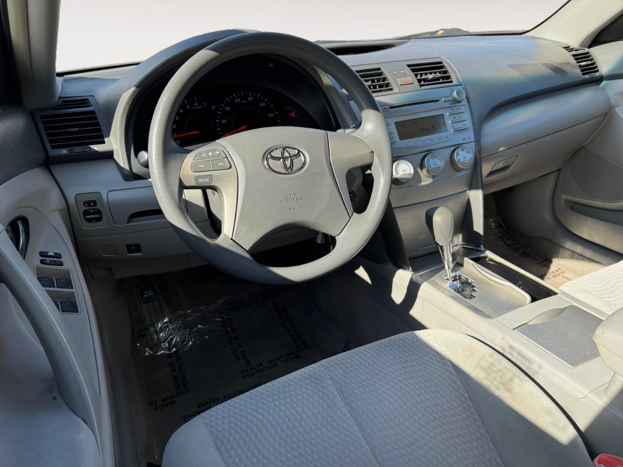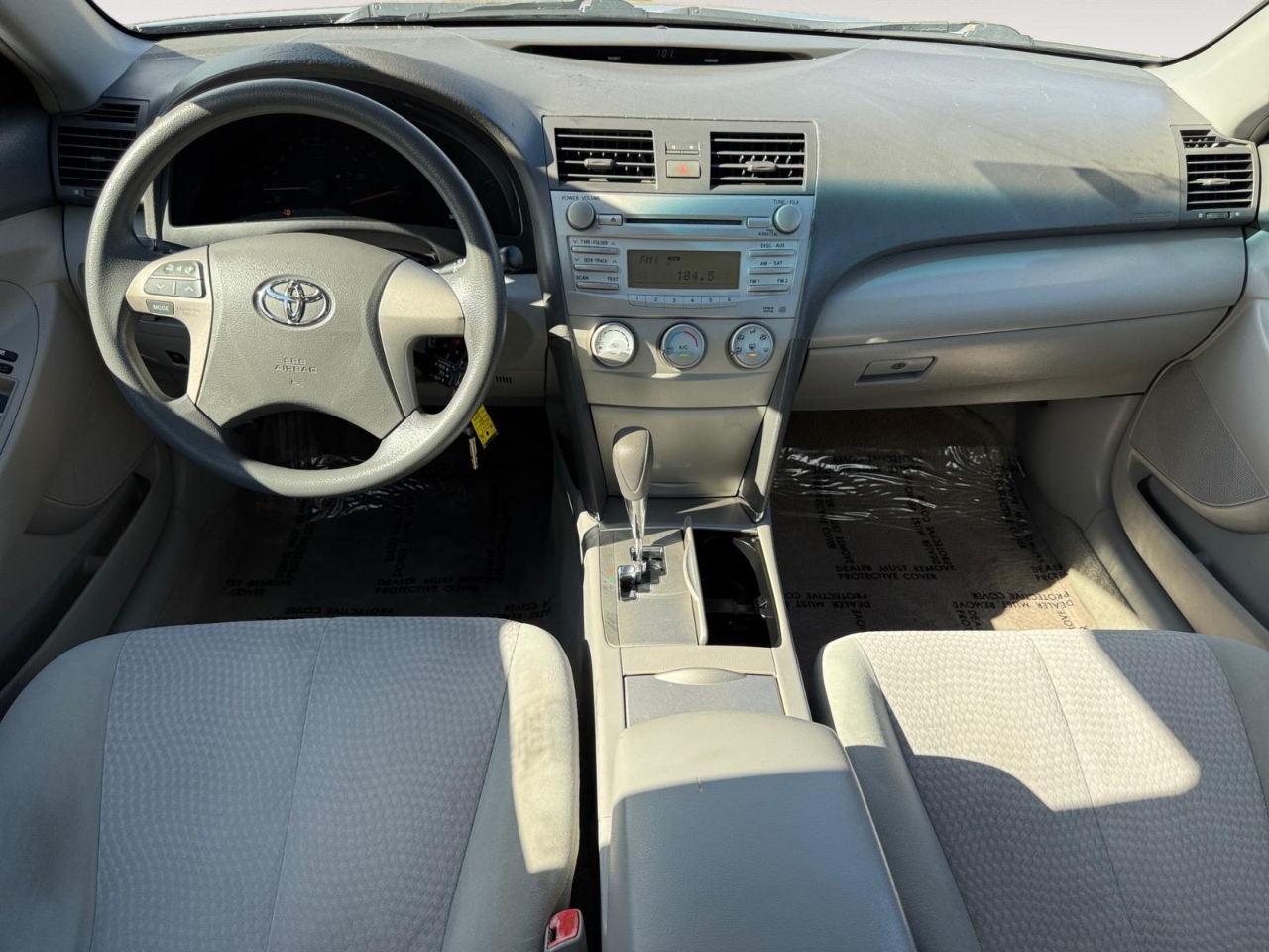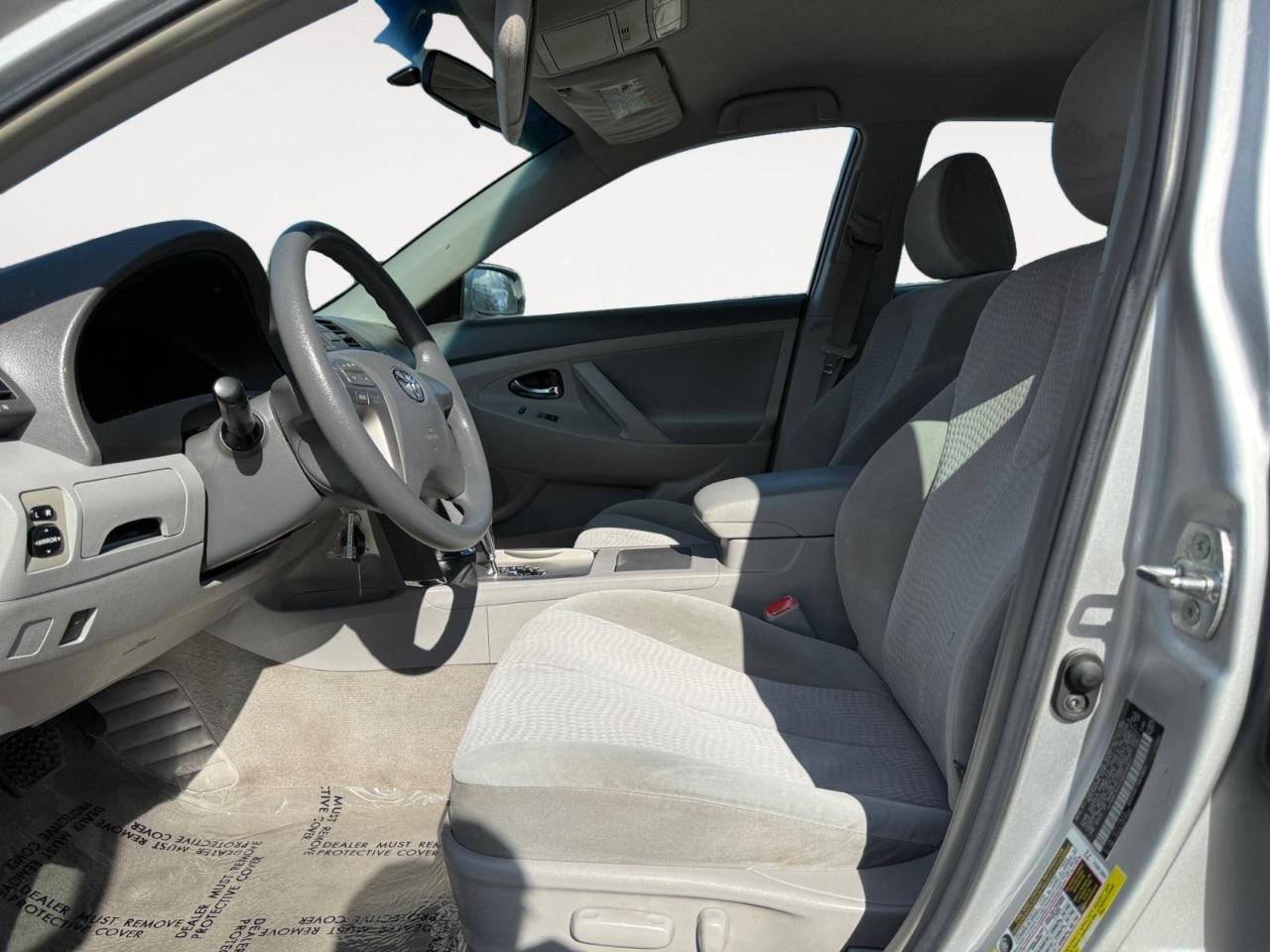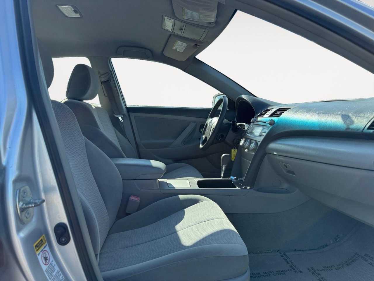 22/32 City/Highway MPG Silver 2010 Toyota Camry SE FWD 6-Speed Automatic Electronic with Overdrive 2.5L I4 SMPI DOHC Cloth. Awards: * 2010 KBB.com 10 Most Comfortable Cars Under $30,000 * 2010 KBB.com Best Resale Value Awards Cloth, 4-Wheel Disc Brakes, 6 Speakers, 7J x 17 AL5 Disc Wheels, ABS brakes, Air Conditioning, Alloy wheels, AM/FM radio, Brake assist, Bumpers: body-color, CD player, Delay-off headlights, Driver door bin, Driver vanity mirror, Dual front impact airbags, Dual front side impact airbags, Electronic Stability Control, Four wheel independent suspension, Front anti-roll bar, Front Bucket Seats, Front Center Armrest, Front fog lights, Front reading lights, Fully automatic headlights, Illuminated entry, Knee airbag, Leather Shift Knob, Leather steering wheel, Low tire pressure warning, Occupant sensing airbag, Outside temperature display, Overhead airbag, Overhead console, Panic alarm, Passenger door bin, Passenger vanity mirror, Power door mirrors, Power driver seat, Power steering, Power windows, Rear anti-roll bar, Rear seat center armrest, Rear window defroster, Remote keyless entry, Sonic Sport Fabric Seat Trim, Speed control, Speed-sensing steering, Sport steering wheel, Steering wheel mounted audio controls, Tachometer, Telescoping steering wheel, Tilt steering wheel, Traction control, and Variably intermittent wipers.