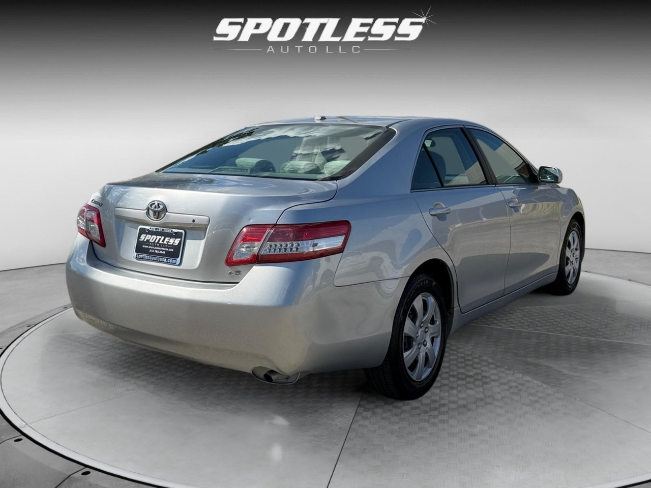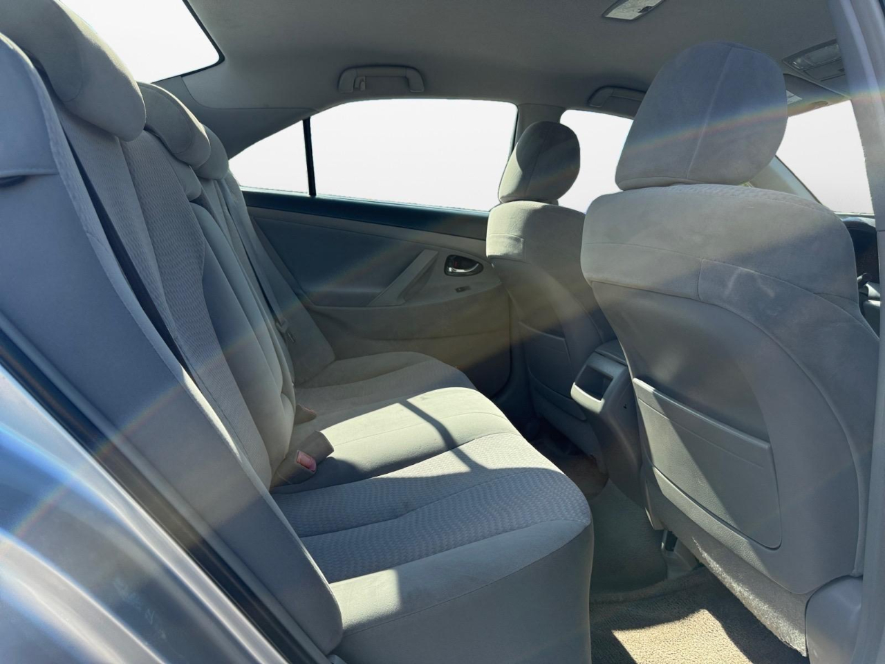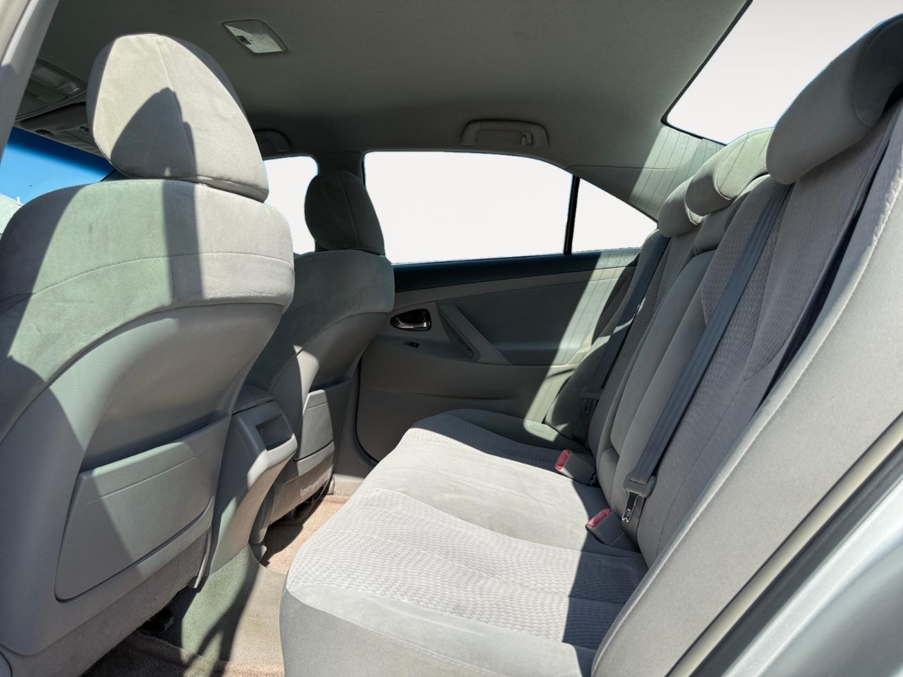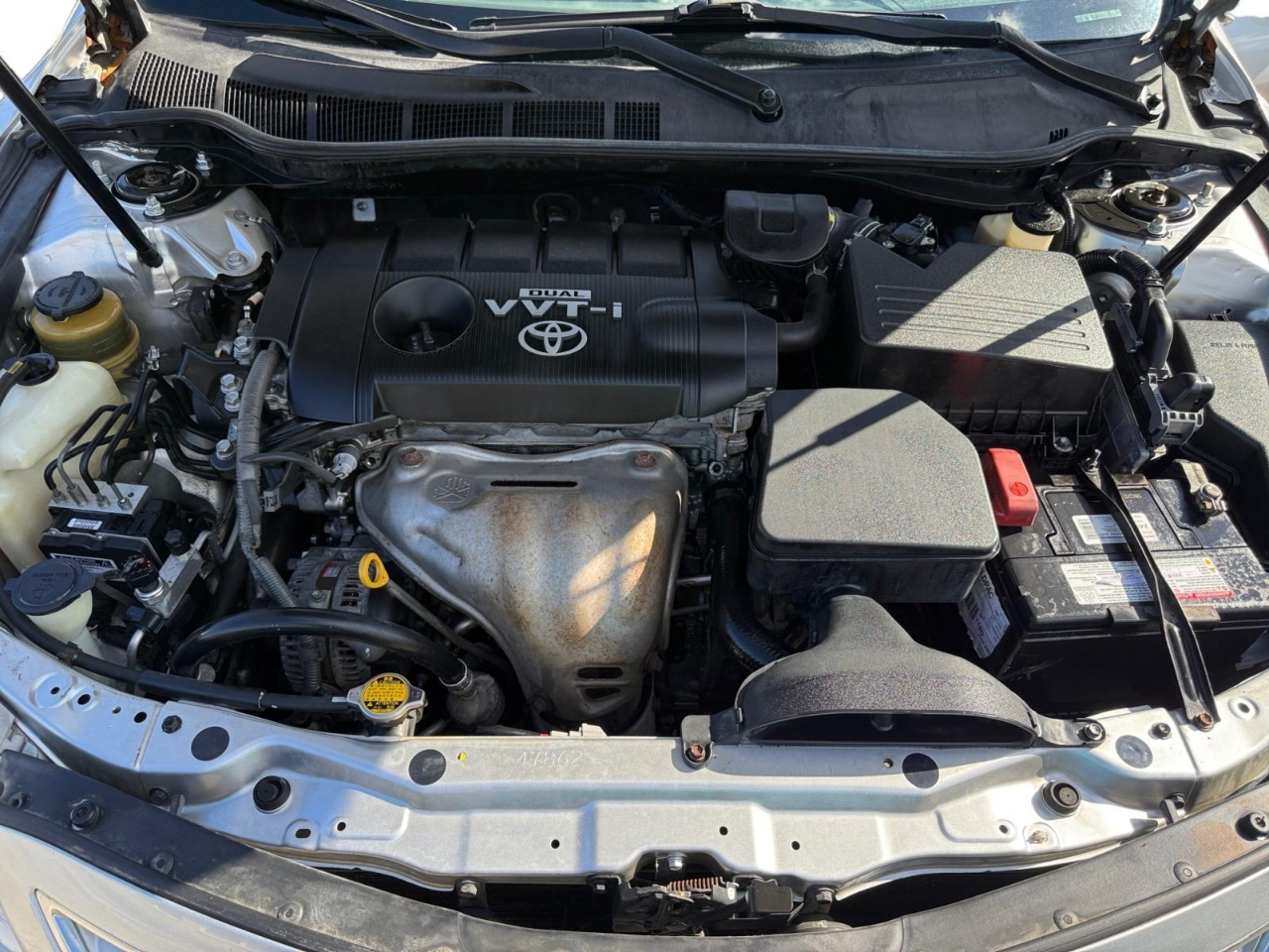 22/32 City/Highway MPG Silver 2010 Toyota Camry SE FWD 6-Speed Automatic Electronic with Overdrive 2.5L I4 SMPI DOHC Cloth. Awards: * 2010 KBB.com 10 Most Comfortable Cars Under $30,000 * 2010 KBB.com Best Resale Value Awards Cloth, 4-Wheel Disc Brakes, 6 Speakers, 7J x 17 AL5 Disc Wheels, ABS brakes, Air Conditioning, Alloy wheels, AM/FM radio, Brake assist, Bumpers: body-color, CD player, Delay-off headlights, Driver door bin, Driver vanity mirror, Dual front impact airbags, Dual front side impact airbags, Electronic Stability Control, Four wheel independent suspension, Front anti-roll bar, Front Bucket Seats, Front Center Armrest, Front fog lights, Front reading lights, Fully automatic headlights, Illuminated entry, Knee airbag, Leather Shift Knob, Leather steering wheel, Low tire pressure warning, Occupant sensing airbag, Outside temperature display, Overhead airbag, Overhead console, Panic alarm, Passenger door bin, Passenger vanity mirror, Power door mirrors, Power driver seat, Power steering, Power windows, Rear anti-roll bar, Rear seat center armrest, Rear window defroster, Remote keyless entry, Sonic Sport Fabric Seat Trim, Speed control, Speed-sensing steering, Sport steering wheel, Steering wheel mounted audio controls, Tachometer, Telescoping steering wheel, Tilt steering wheel, Traction control, and Variably intermittent wipers.