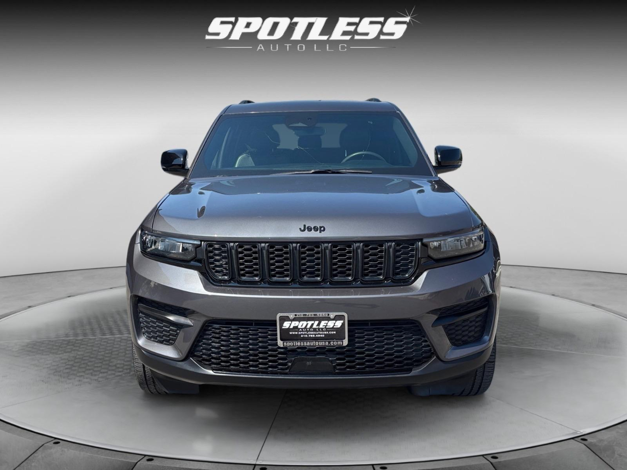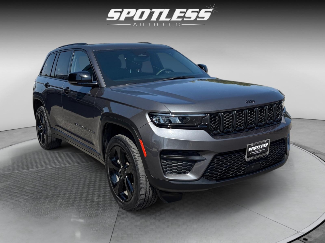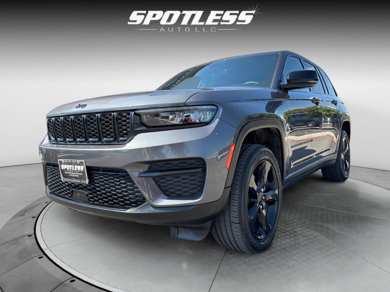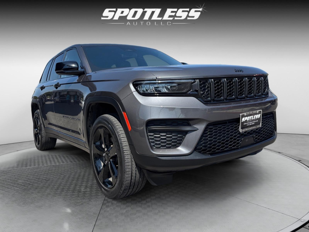 19/26 City/Highway MPG Baltic Gray Metallic Clearcoat 2023 Jeep Grand Cherokee Altitude 4WD 8-Speed Automatic 3.6L V6 24V VVT 4WD. Quick Order Package 23B Altitude, 4WD, 3.45 Rear Axle Ratio, 4-Wheel Disc Brakes, 6 Speakers, ABS brakes, Air Conditioning, Alloy wheels, Anti-whiplash front head restraints, Automatic temperature control, Brake assist, Cloth Seats, Compass, Delay-off headlights, Driver door bin, Driver vanity mirror, Dual front impact airbags, Dual front side impact airbags, Electronic Stability Control, Four wheel independent suspension, Front anti-roll bar, Front Bucket Seats, Front dual zone A/C, Front reading lights, Fully automatic headlights, Heated door mirrors, Illuminated entry, Knee airbag, Low tire pressure warning, Occupant sensing airbag, Outside temperature display, Overhead airbag, Overhead console, Panic alarm, ParkView Rear Back-Up Camera, Passenger door bin, Passenger vanity mirror, Power door mirrors, Power driver seat, Power steering, Power windows, Radio data system, Rear anti-roll bar, Rear reading lights, Rear window defroster, Rear window wiper, Remote keyless entry, Security system, Speed control, Speed-Sensitive Wipers, Split folding rear seat, Spoiler, Steering wheel mounted audio controls, Tachometer, Telescoping steering wheel, Tilt steering wheel, Traction control, Trip computer, Variably intermittent wipers, Voltmeter, and Wheels: 17" x 6.5" Fully Painted Aluminum.