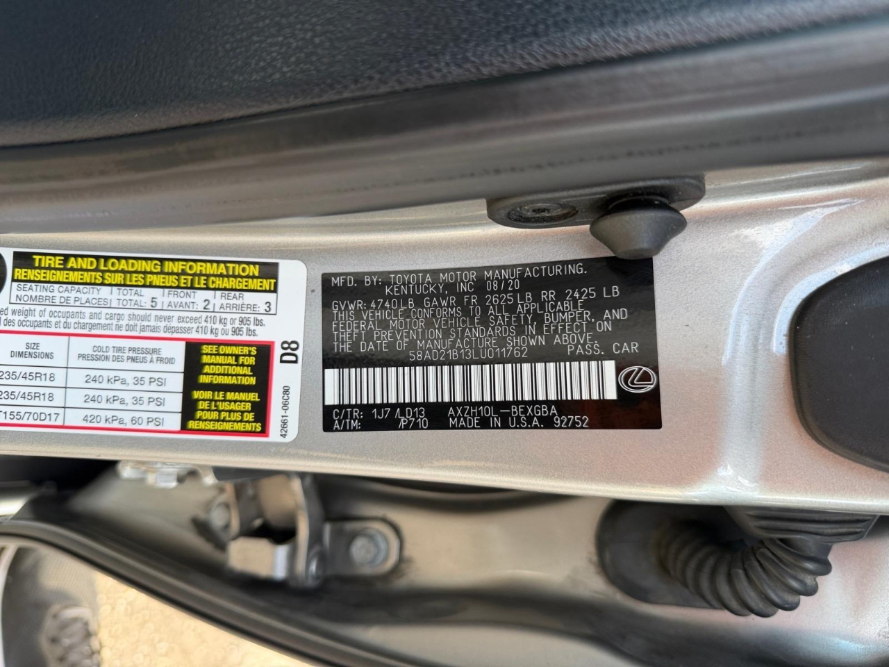 Recent Arrival! 43/44 City/Highway MPG Silver 2020 Lexus ES 300h FWD eCVT 2.5L I4 DOHC 16V VVT-i 2.5L I4 DOHC 16V VVT-i. Awards: * JD Power Vehicle Dependability Study * 2020 KBB.com Best Buy Awards 2.5L I4 DOHC 16V VVT-i, 10 Speakers, 10-Way Power Adjustable Front Seats, 4-Wheel Disc Brakes, ABS brakes, Air Conditioning, Alloy wheels, AM/FM radio: SiriusXM, Auto High-beam Headlights, Auto-dimming door mirrors, Auto-dimming Rear-View mirror, Automatic temperature control, Brake assist, Bumpers: body-color, CD player, Compass, Delay-off headlights, Driver door bin, Driver vanity mirror, Dual front impact airbags, Dual front side impact airbags, Electronic Stability Control, Emergency communication system: Lexus Enform Safety Connect, Exterior Parking Camera Rear, Four wheel independent suspension, Front anti-roll bar, Front Bucket Seats, Front Center Armrest, Front dual zone A/C, Front reading lights, Fully automatic headlights, Garage door transmitter: HomeLink, Illuminated entry, Knee airbag, Leather Shift Knob, Leather steering wheel, Low tire pressure warning, Occupant sensing airbag, Outside temperature display, Overhead airbag, Overhead console, Panic alarm, Passenger door bin, Passenger vanity mirror, Perforated NuLuxe Seat Trim, Power door mirrors, Power driver seat, Power moonroof, Power passenger seat, Power steering, Power windows, Radio data system, Radio: Lexus Premium Sound System w/10 Speakers, Rear anti-roll bar, Rear reading lights, Rear seat center armrest, Rear side impact airbag, Rear window defroster, Remote keyless entry, Security system, Speed control, Speed-sensing steering, Spoiler, Steering wheel mounted audio controls, Tachometer, Telescoping steering wheel, Tilt steering wheel, Traction control, Trip computer, Turn signal indicator mirrors, Variably intermittent wipers, and Wheels: 17" x 7.5J Split 10-Spoke Aluminum Alloy.