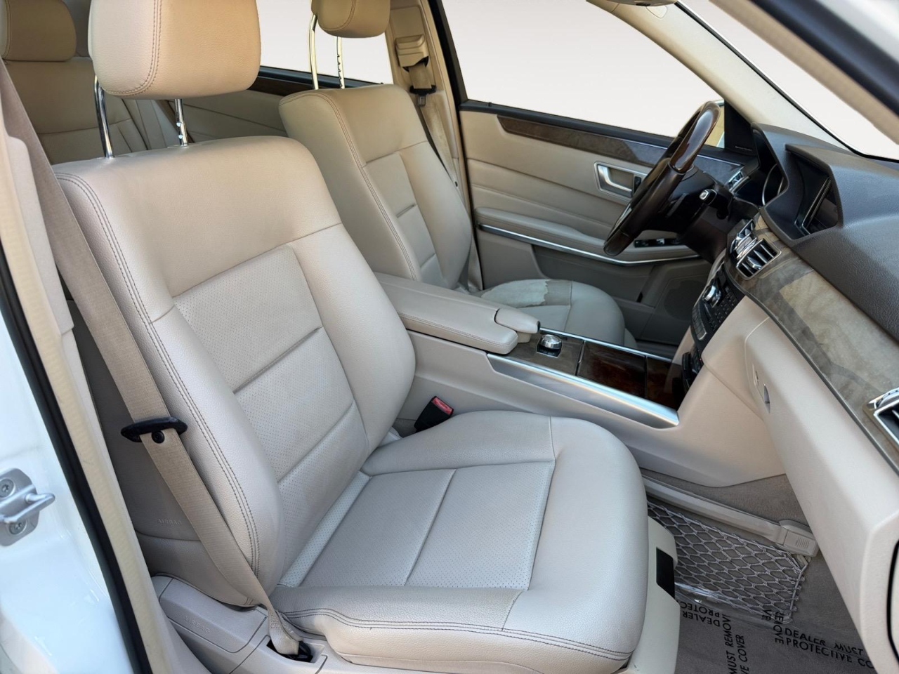 21/30 City/Highway MPG White 2014 Mercedes-Benz E-Class E 350 RWD 7-Speed Automatic 3.5L 6-Cylinder DOHC 4-Wheel Disc Brakes, 8 Speakers, ABS brakes, Air Conditioning, Alloy wheels, AM/FM radio, Anti-whiplash front head restraints, Auto tilt-away steering wheel, Auto-dimming door mirrors, Auto-dimming Rear-View mirror, Automatic temperature control, Bodyside moldings, Brake assist, Bumpers: body-color, CD player, Delay-off headlights, Driver door bin, Driver vanity mirror, Dual front impact airbags, Dual front side impact airbags, DVD-Audio, Electronic Stability Control, Emergency communication system: mbrace2, Four wheel independent suspension, Front anti-roll bar, Front Bucket Seats, Front Center Armrest, Front dual zone A/C, Front reading lights, Fully automatic headlights, Garage door transmitter: Homelink, Genuine wood console insert, Genuine wood dashboard insert, Genuine wood door panel insert, Head restraints memory, Heated door mirrors, Illuminated entry, Knee airbag, Leather Shift Knob, Leather steering wheel, Low tire pressure warning, MB-Tex Upholstery, Memory seat, Occupant sensing airbag, Outside temperature display, Overhead airbag, Overhead console, Panic alarm, Passenger door bin, Passenger vanity mirror, Power adjustable front head restraints, Power Adjustable Front Seats, Power adjustable rear head restraints, Power door mirrors, Power driver seat, Power moonroof, Power passenger seat, Power steering, Power windows, Premium audio system: COMAND®, Radio data system, Radio: COMAND® AM/FM/WB/In-Dash DVD/CD Player, Rain sensing wipers, Rear anti-roll bar, Rear fog lights, Rear reading lights, Rear seat center armrest, Rear window defroster, Remote keyless entry, Security system, Speed control, Speed-sensing steering, Steering wheel memory, Steering wheel mounted audio controls, Tachometer, Telescoping steering wheel, Tilt steering wheel, Traction control, Trip computer, Turn signal indicator mirrors, Variably intermittent wipers, Weather band radio, and Wheels: 17" 5-Spoke Wheels.