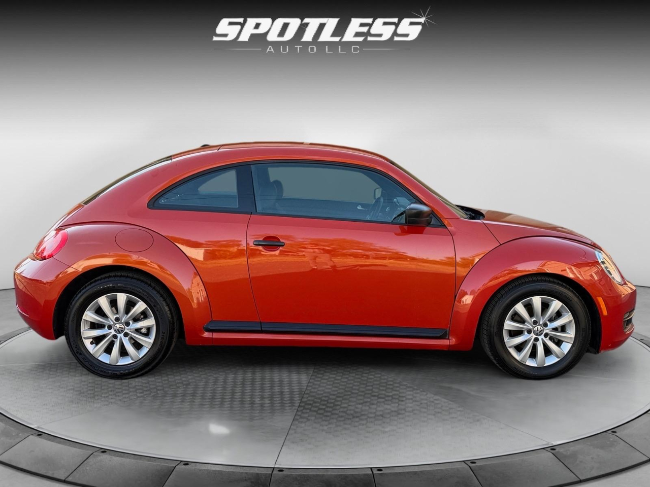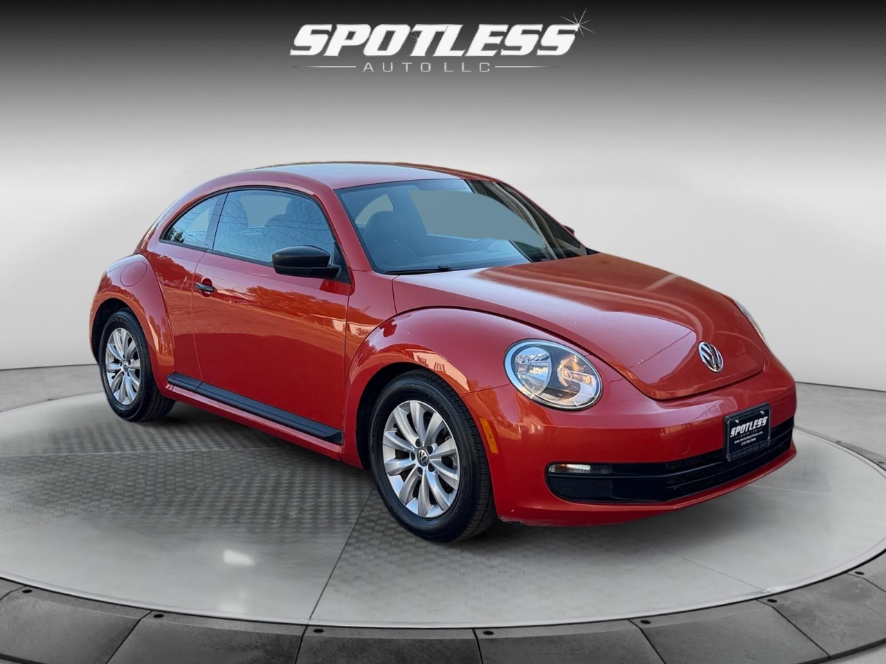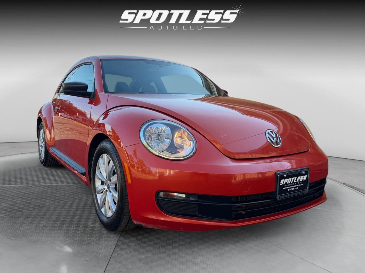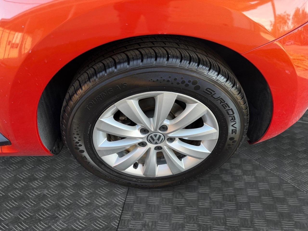 25/34 City/Highway MPG Orange 2016 Volkswagen Beetle 1.8T S FWD 6-Speed Automatic 1.8L I4 Turbocharged DOHC 16V SULEV II 170hp Cloth. Cloth, 4-Wheel Disc Brakes, 8 Speakers, ABS brakes, Air Conditioning, Alloy wheels, AM/FM radio, Auto-dimming Rear-View mirror, Bodyside moldings, Brake assist, Bumpers: body-color, CD player, Cloth Seating Surfaces, Driver door bin, Driver vanity mirror, Dual front impact airbags, Dual front side impact airbags, Electronic Stability Control, Four wheel independent suspension, Front anti-roll bar, Front Bucket Seats, Front Center Armrest w/Storage, Front reading lights, Front Seats, Fully automatic headlights, Heated door mirrors, Illuminated entry, Leather Shift Knob, Leather steering wheel, Low tire pressure warning, Occupant sensing airbag, Outside temperature display, Overhead console, Panic alarm, Passenger door bin, Passenger vanity mirror, Power door mirrors, Power steering, Power windows, Radio data system, Radio: AM/FM 5" Touchscreen w/CD Player, Rear anti-roll bar, Rear reading lights, Rear window defroster, Remote keyless entry, Speed control, Speed-sensing steering, Split folding rear seat, Spoiler, Steering wheel mounted audio controls, Tachometer, Telescoping steering wheel, Tilt steering wheel, Traction control, Trip computer, Turn signal indicator mirrors, Variably intermittent wipers, and Wheels: 16" Whirl Alloy.