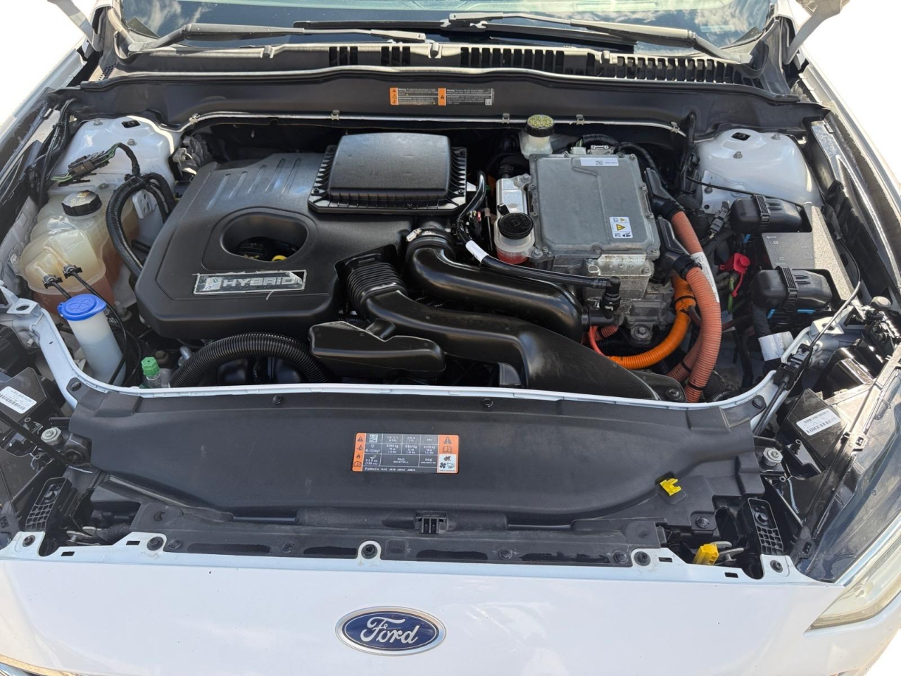 Recent Arrival! 43/41 City/Highway MPG Oxford White 2017 Ford Fusion Hybrid SE FWD eCVT I4 Hybrid I4 Hybrid. Awards: * 2017 KBB.com 10 Best Sedans Under $25,000 * 2017 KBB.com Brand Image Awards * 2017 KBB.com 10 Most Awarded Brands Adaptive Cruise Control w/Stop & Go (Pre-Collision Assist w/Pedestrian Detection), Equipment Group 602A, Fusion SE Hybrid Luxury Driver Assist Package (Auto High Beams, BLIS Blind Spot Information System, Heated Steering Wheel, Lane-Keeping System, Rain-Sensing Wipers, and SYNC Connect), Fusion SE Hybrid Luxury Package (Auto-Dimming Rear-View Mirror, Heated Leather Front Bucket Seats, Intelligent Access w/Remote Start System, Leather-Wrapped Steering Wheel, LED Fog Lamps, LED Headlamps, LED Taillamps (Level 3), Upgraded Sideview Mirrors w/Heat, and Warm Interior Accents), Fusion SE Hybrid Technology Package ((2) 4.2" Driver Configurable LCD Display, Power Converter 110V Outlet, and SYNC 3 Communications & Entertainment System), I4 Hybrid, 4-Wheel Disc Brakes, 9 Speakers, ABS brakes, Air Conditioning, Alloy wheels, AM/FM radio: SiriusXM, Automatic temperature control, Brake assist, Bumpers: body-color, CD player, Cloth Front Bucket Seats, Compass, Delay-off headlights, Driver door bin, Driver vanity mirror, Dual front impact airbags, Dual front side impact airbags, Electronic Stability Control, Emergency communication system: 911 Assist, Exterior Parking Camera Rear, Four wheel independent suspension, Front anti-roll bar, Front Bucket Seats, Front Center Armrest, Front dual zone A/C, Front License Plate Bracket, Front reading lights, Fully automatic headlights, Illuminated entry, Knee airbag, Low tire pressure warning, Occupant sensing airbag, Outside temperature display, Overhead airbag, Overhead console, Panic alarm, Passenger door bin, Passenger vanity mirror, Power door mirrors, Power driver seat, Power passenger seat, Power steering, Power windows, Radio data system, Radio: AM/FM Stereo w/MP3/Single-CD Player, Rear anti-roll bar, Rear reading lights, Rear seat center armrest, Rear window defroster, Remote keyless entry, Security system, Speed control, Speed-sensing steering, Speed-Sensitive Wipers, Split folding rear seat, Steering wheel mounted audio controls, SYNC Communications & Entertainment System, Tachometer, Telescoping steering wheel, Tilt steering wheel, Traction control, Trip computer, Variably intermittent wipers, and Wheels: 17" Premium Painted Luster Nickel.