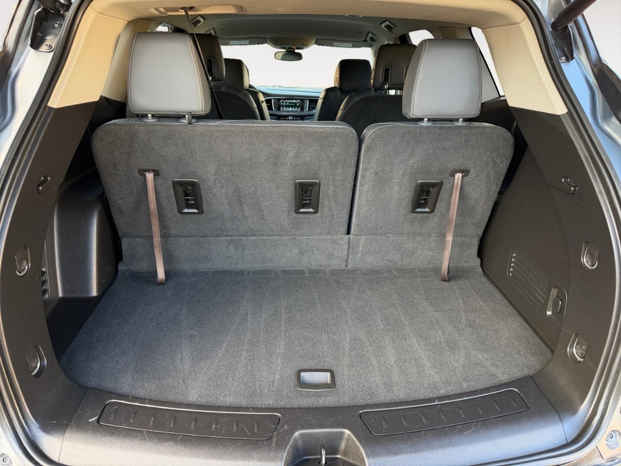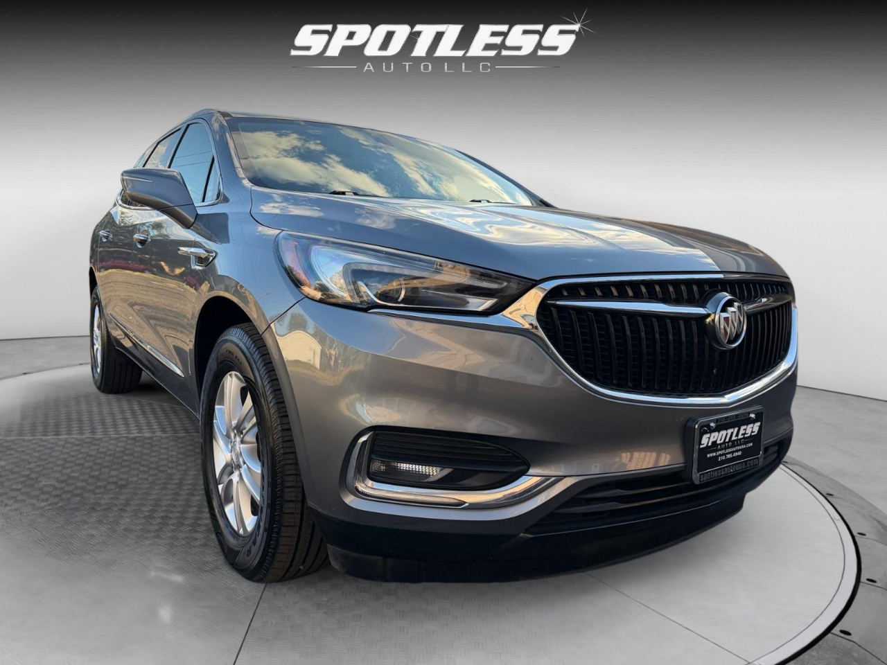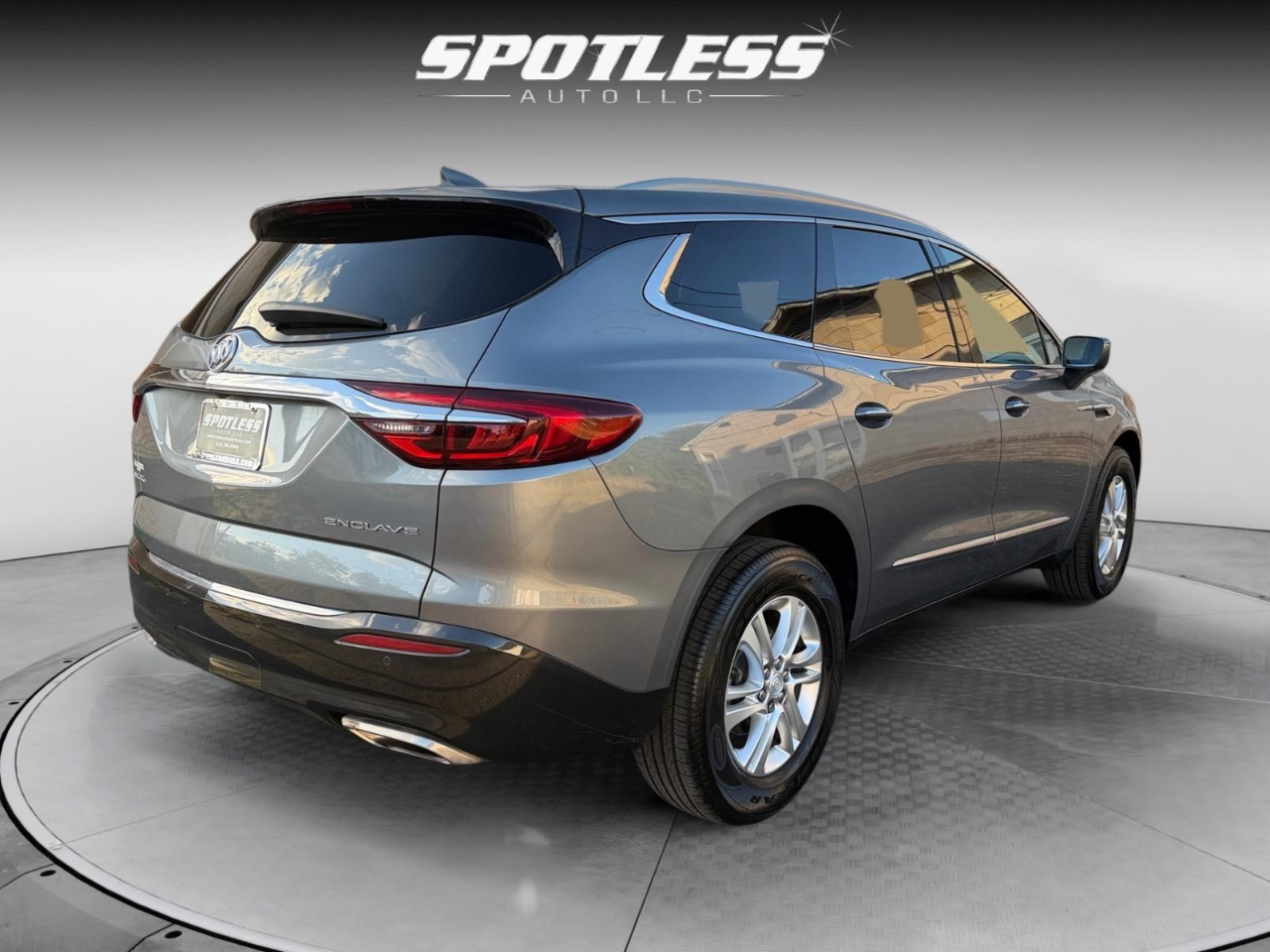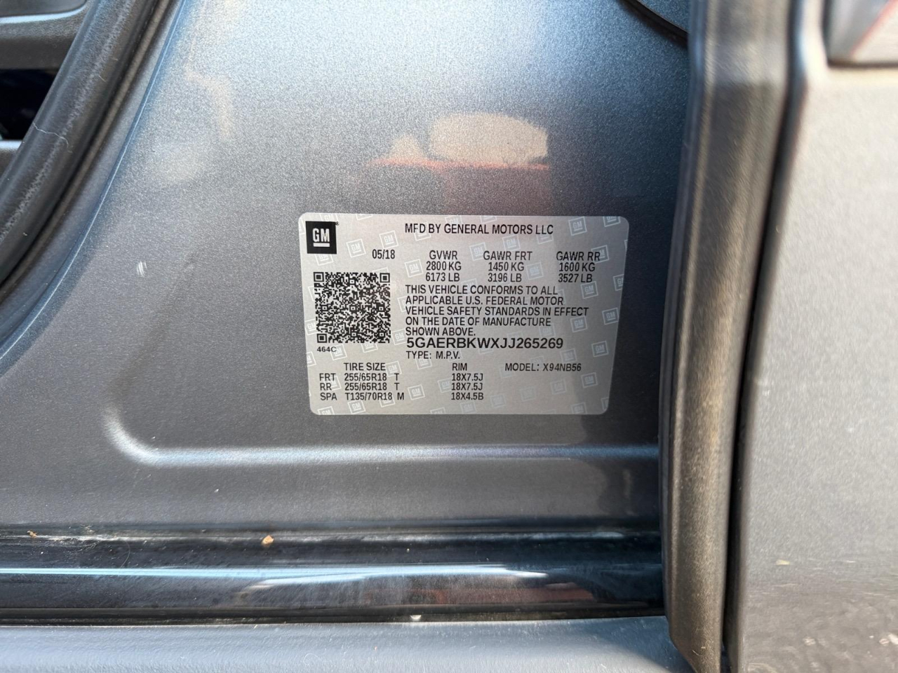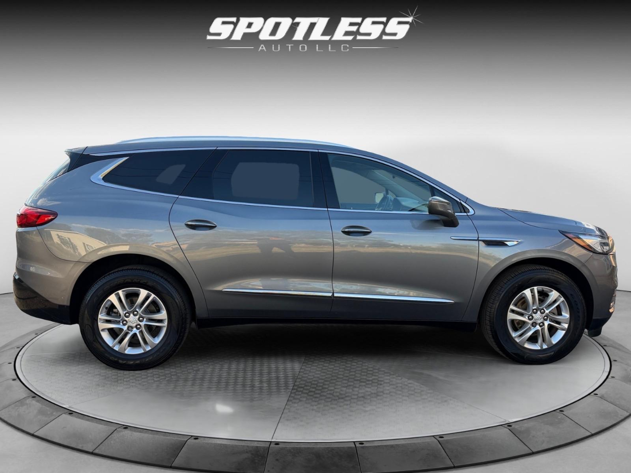 Odometer is 19993 miles below market average! 18/26 City/Highway MPG Satin Steel Metallic 2018 Buick Enclave Essence FWD 9-Speed Automatic 3.6L V6 SIDI VVT FWD. Awards: * 2018 KBB.com Brand Image Awards Buick Interior Protection Package (LPO) (3rd Row All-Weather Floor Mats, All-Weather Cargo Mat (LPO), and All-Weather Floor Mats), Preferred Equipment Group 1SL, FWD, 18" Painted Aluminum Wheels, 3.49 Axle Ratio, 3rd row seats: split-bench, 4-Wheel Disc Brakes, 6 Speakers, 6-Speaker System, 7-Passenger Seating, ABS brakes, Air Conditioning, Alloy wheels, AM/FM radio: SiriusXM, Apple CarPlay/Android Auto, Auto High-beam Headlights, Auto-dimming door mirrors, Auto-dimming Rear-View mirror, Automatic temperature control, Brake assist, Bumpers: body-color, Compass, Delay-off headlights, Driver door bin, Driver vanity mirror, Dual front impact airbags, Dual front side impact airbags, Electronic Stability Control, Emergency communication system: OnStar Guidance, Four wheel independent suspension, Front anti-roll bar, Front Bucket Seats, Front Center Armrest, Front dual zone A/C, Front License Plate Mounting Bracket, Front reading lights, Fully automatic headlights, Garage door transmitter, Heated door mirrors, Heated Driver & Front Passenger Seats, Heated front seats, Illuminated entry, Leather steering wheel, Low tire pressure warning, Occupant sensing airbag, Outside temperature display, Overhead airbag, Overhead console, Panic alarm, Passenger door bin, Passenger vanity mirror, Perforated Leather-Appointed Seat Trim, Power door mirrors, Power Driver Lumbar Control Seat Adjuster, Power driver seat, Power Liftgate, Power Passenger Lumbar Control Seat Adjuster, Power passenger seat, Power steering, Power windows, Premium audio system: Buick Infotainment System, Radio data system, Radio: Buick Infotainment System AM/FM Stereo, Rear air conditioning, Rear anti-roll bar, Rear Parking Sensors, Rear reading lights, Rear window defroster, Rear window wiper, Remote keyless entry, Roof rack: rails only, Security system, SiriusXM Satellite Radio, Speed control, Speed-sensing steering, Spoiler, Steering wheel mounted audio controls, Tachometer, Telescoping steering wheel, Tilt steering wheel, Traction control, Trip computer, Turn signal indicator mirrors, Variably intermittent wipers, and Voltmeter.