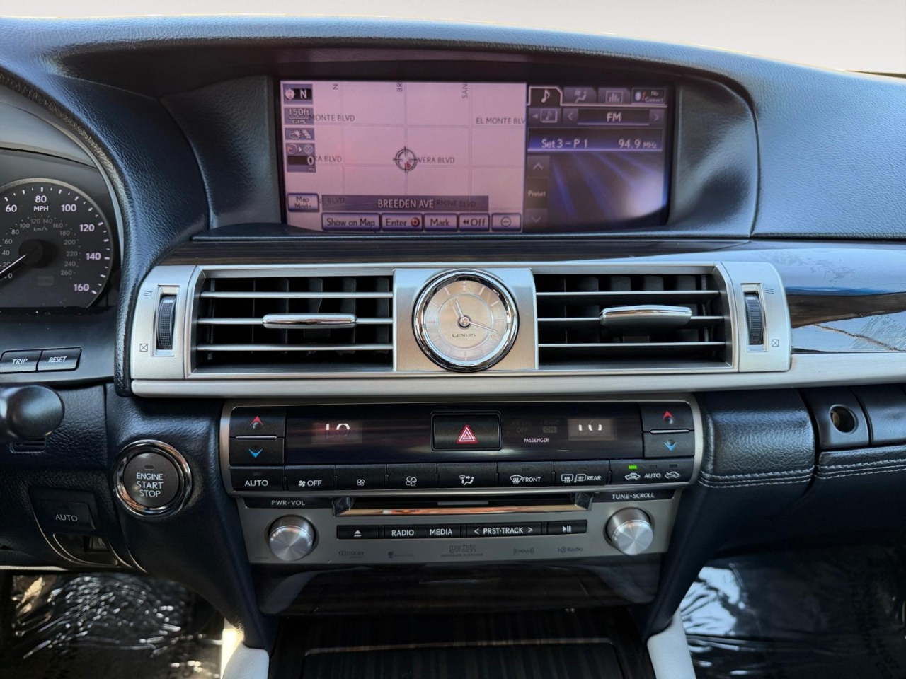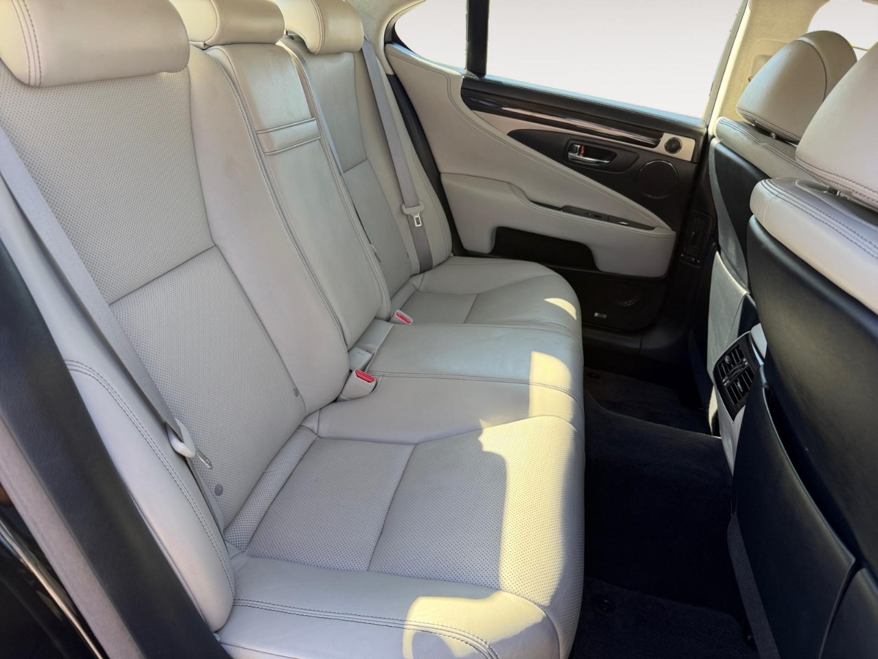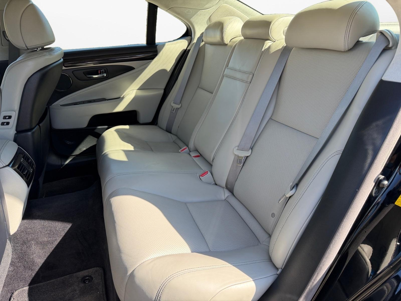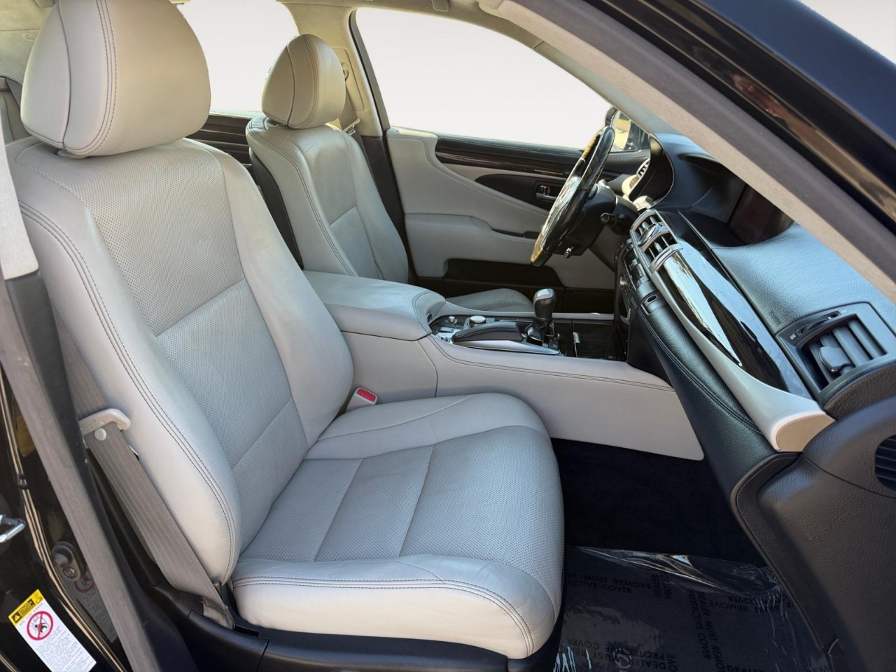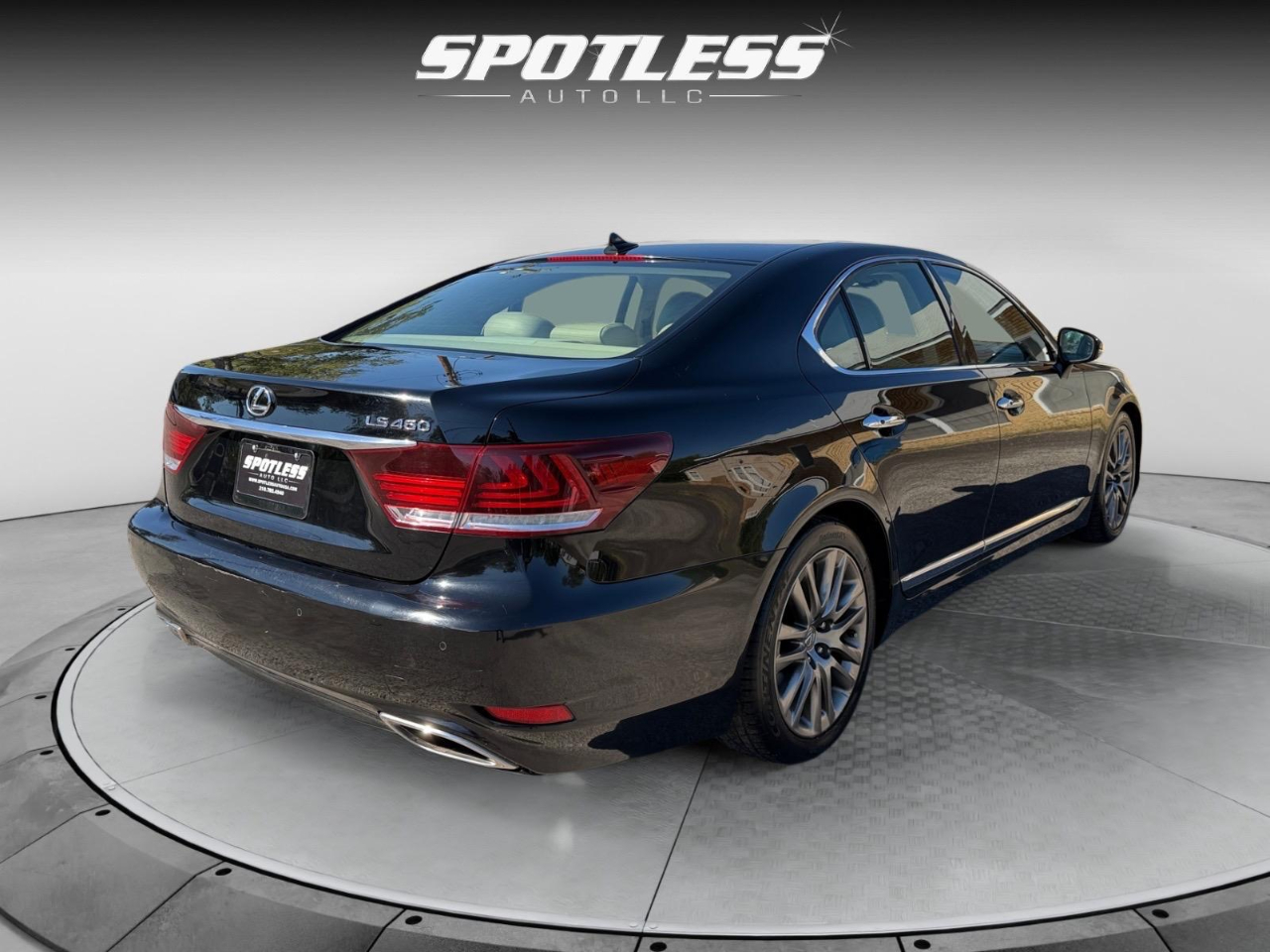 Black 2013 Lexus LS 460 RWD 8-Speed Automatic with Sequential Shift 4.6L V8 DOHC 32V VVT-iE Leather. Awards: * JD Power APEAL Study, JD Power Initial Quality Study * 2013 KBB.com 5-Year Cost to Own Awards * 2013 KBB.com Best Resale Value Awards * 2013 KBB.com Brand Image Awards Leather, 10 Speakers, 4-Wheel Disc Brakes, ABS brakes, Air Conditioning, Alloy wheels, AM/FM radio: SiriusXM, AM/FM/CD Player w/MP3/WMA Capability, Anti-whiplash front head restraints, Auto tilt-away steering wheel, Auto-dimming door mirrors, Auto-dimming Rear-View mirror, Automatic temperature control, Bodyside moldings, Brake assist, Bumpers: body-color, CD player, Compass, Delay-off headlights, Door auto-latch, Driver door bin, Driver vanity mirror, Dual front impact airbags, Dual front side impact airbags, DVD-Audio, Electronic Stability Control, Emergency communication system: Safety Connect, Exterior Parking Camera Rear, Four wheel independent suspension, Front anti-roll bar, Front Bucket Seats, Front Center Armrest, Front dual zone A/C, Front fog lights, Front reading lights, Fully automatic headlights, Garage door transmitter: HomeLink, Genuine wood console insert, Genuine wood dashboard insert, Genuine wood door panel insert, Head restraints memory, Heated door mirrors, Heated front seats, High intensity discharge headlights: Bi-Xenon, Illuminated entry, Knee airbag, Leather Seat Trim, Leather Shift Knob, Leather steering wheel, Low tire pressure warning, Memory seat, Navigation System, Occupant sensing airbag, Outside temperature display, Overhead airbag, Overhead console, Panic alarm, Passenger door bin, Passenger vanity mirror, Power adjustable front head restraints, Power door mirrors, Power driver seat, Power moonroof, Power passenger seat, Power steering, Power windows, Radio data system, Rain sensing wipers, Rear anti-roll bar, Rear reading lights, Rear seat center armrest, Rear window defroster, Remote keyless entry, Seatbelt memory, Security system, Speed control, Speed-Sensitive Wipers, Steering wheel memory, Steering wheel mounted audio controls, Tachometer, Telescoping steering wheel, Tilt steering wheel, Traction control, Trip computer, Turn signal indicator mirrors, Variably intermittent wipers, and Wheels: 18" x 7.5J Split 5-Spoke Alloy.
