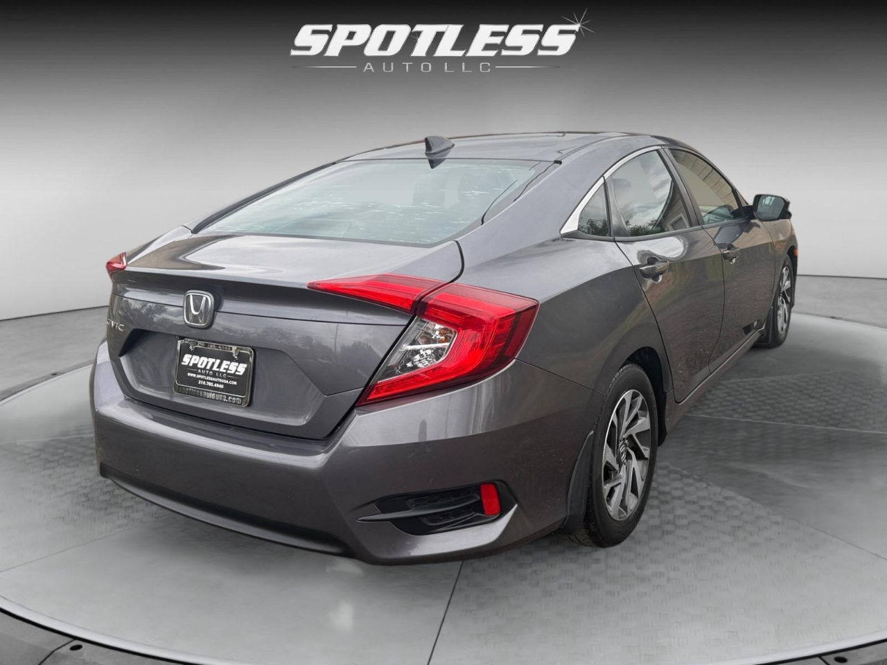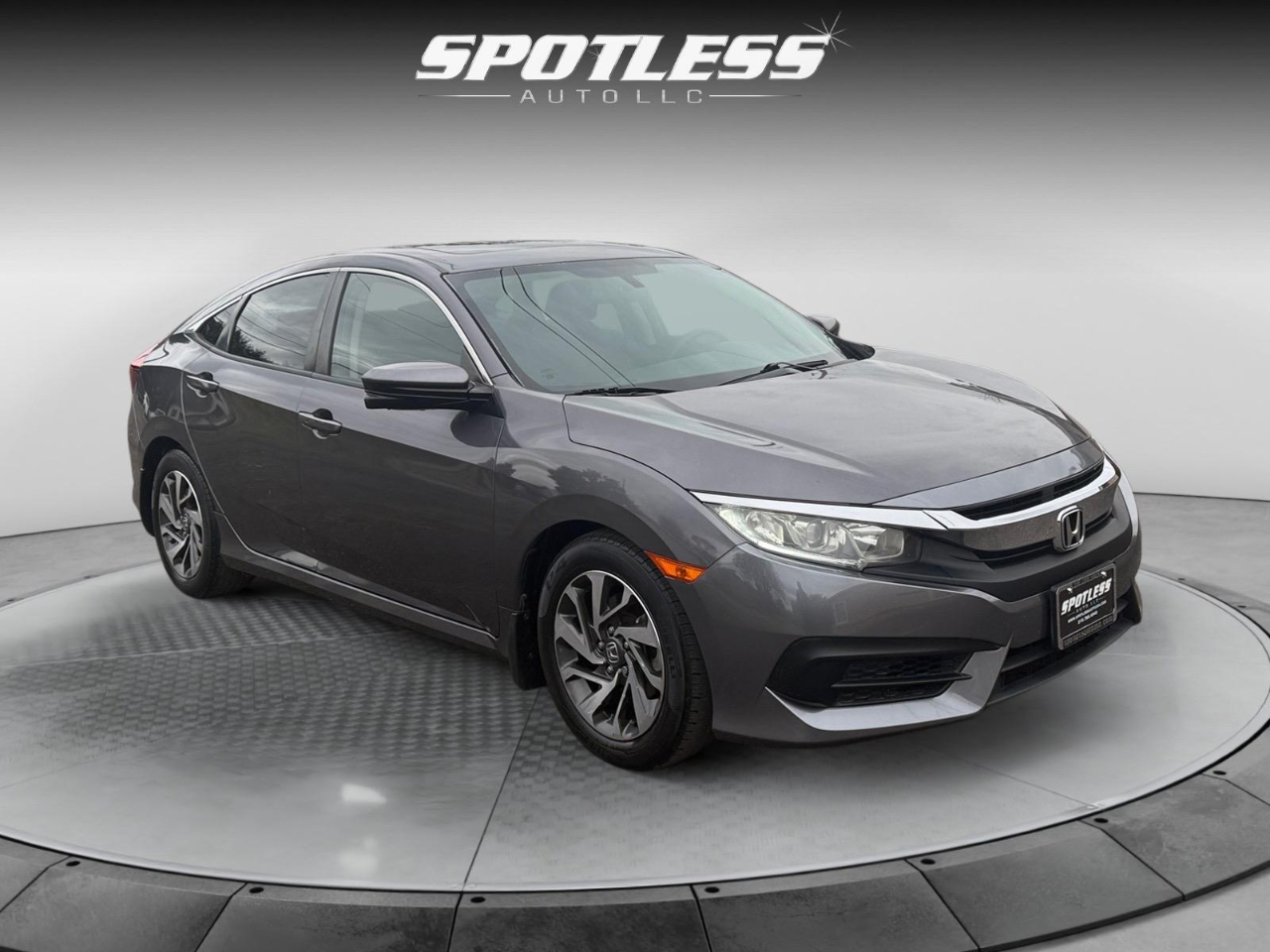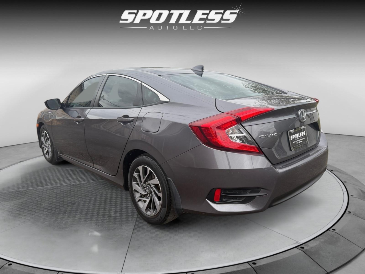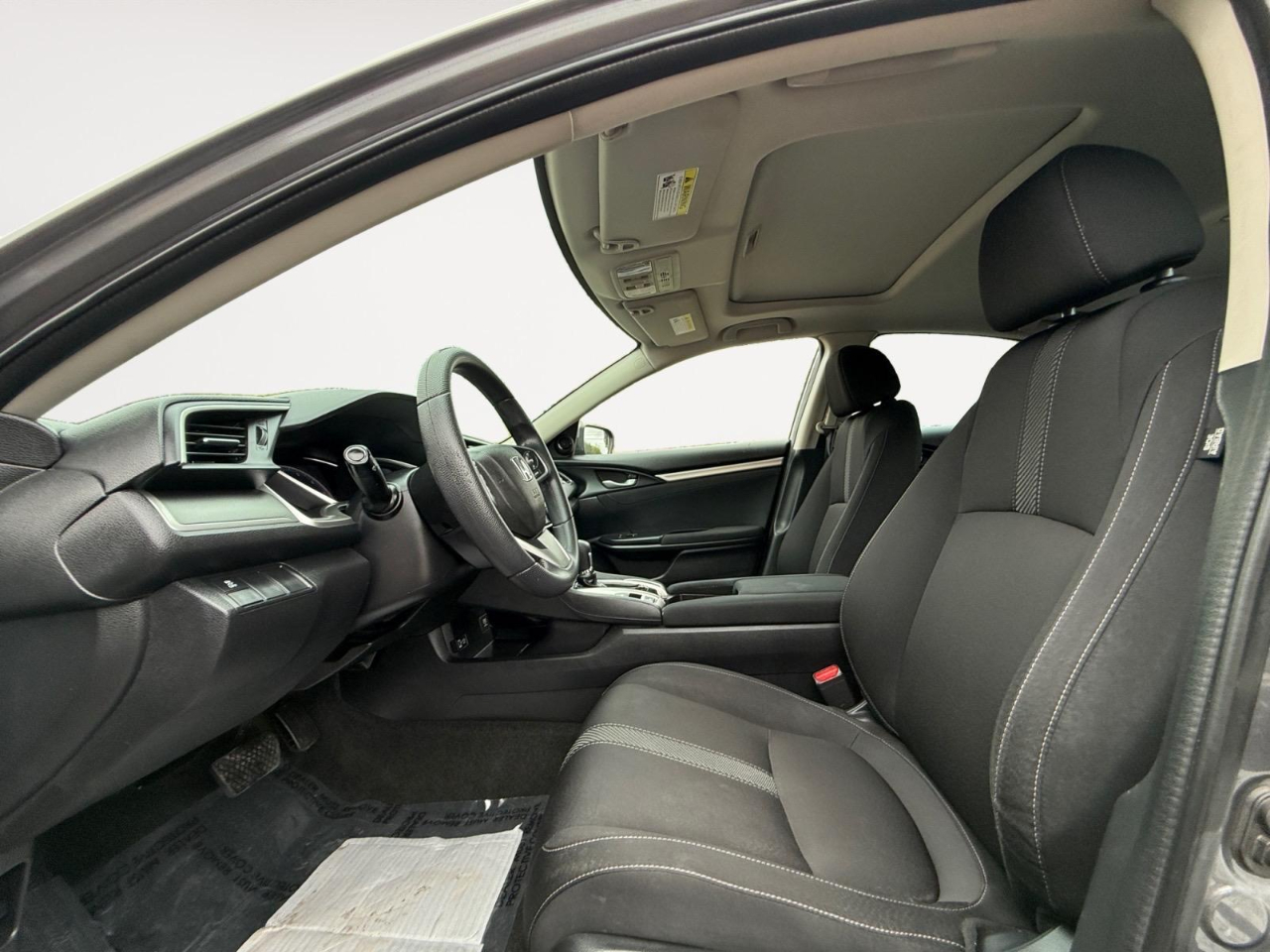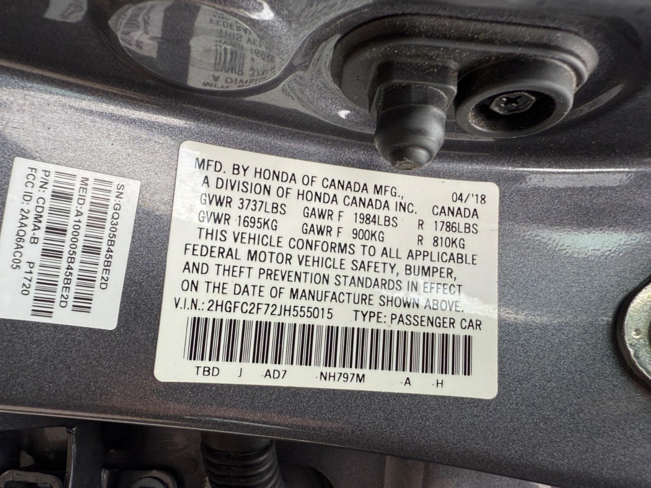 31/40 City/Highway MPG Gray 2018 Honda Civic EX FWD CVT 2.0L I4 DOHC 16V i-VTEC Cloth. Awards: * 2018 KBB.com 10 Most Awarded Brands * 2018 KBB.com Brand Image Awards Kelley Blue Book Brand Image Awards are based on the Brand Watch(tm) study from Kelley Blue Book Market Intelligence. Award calculated among non-luxury shoppers. For more information, visit www.kbb.com. Kelley Blue Book is a registered trademark of Kelley Blue Book Co., Inc. Cloth, 16" Alloy Wheels, 4-Wheel Disc Brakes, 8 Speakers, ABS brakes, Air Conditioning, Alloy wheels, AM/FM radio, Apple CarPlay/Android Auto, Automatic temperature control, Brake assist, Bumpers: body-color, Cloth Seat Trim, Compass, Delay-off headlights, Driver door bin, Driver vanity mirror, Dual front impact airbags, Dual front side impact airbags, Electronic Stability Control, Emergency communication system: HondaLink, Exterior Parking Camera Rear, Four wheel independent suspension, Front anti-roll bar, Front Bucket Seats, Front Center Armrest, Front reading lights, Fully automatic headlights, Heated door mirrors, Illuminated entry, Low tire pressure warning, Occupant sensing airbag, Outside temperature display, Overhead airbag, Panic alarm, Passenger door bin, Passenger vanity mirror, Power door mirrors, Power moonroof, Power steering, Power windows, Radio data system, Radio: 180-Watt AM/FM/HD/SiriusXM Audio System, Rear anti-roll bar, Rear seat center armrest, Rear window defroster, Reclining Front Bucket Seats, Remote keyless entry, Security system, Speed control, Speed-sensing steering, Speed-Sensitive Wipers, Split folding rear seat, Steering wheel mounted audio controls, Tachometer, Telescoping steering wheel, Tilt steering wheel, Traction control, Trip computer, and Variably intermittent wipers.