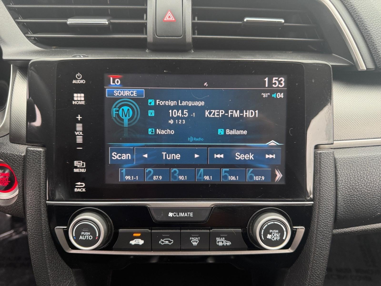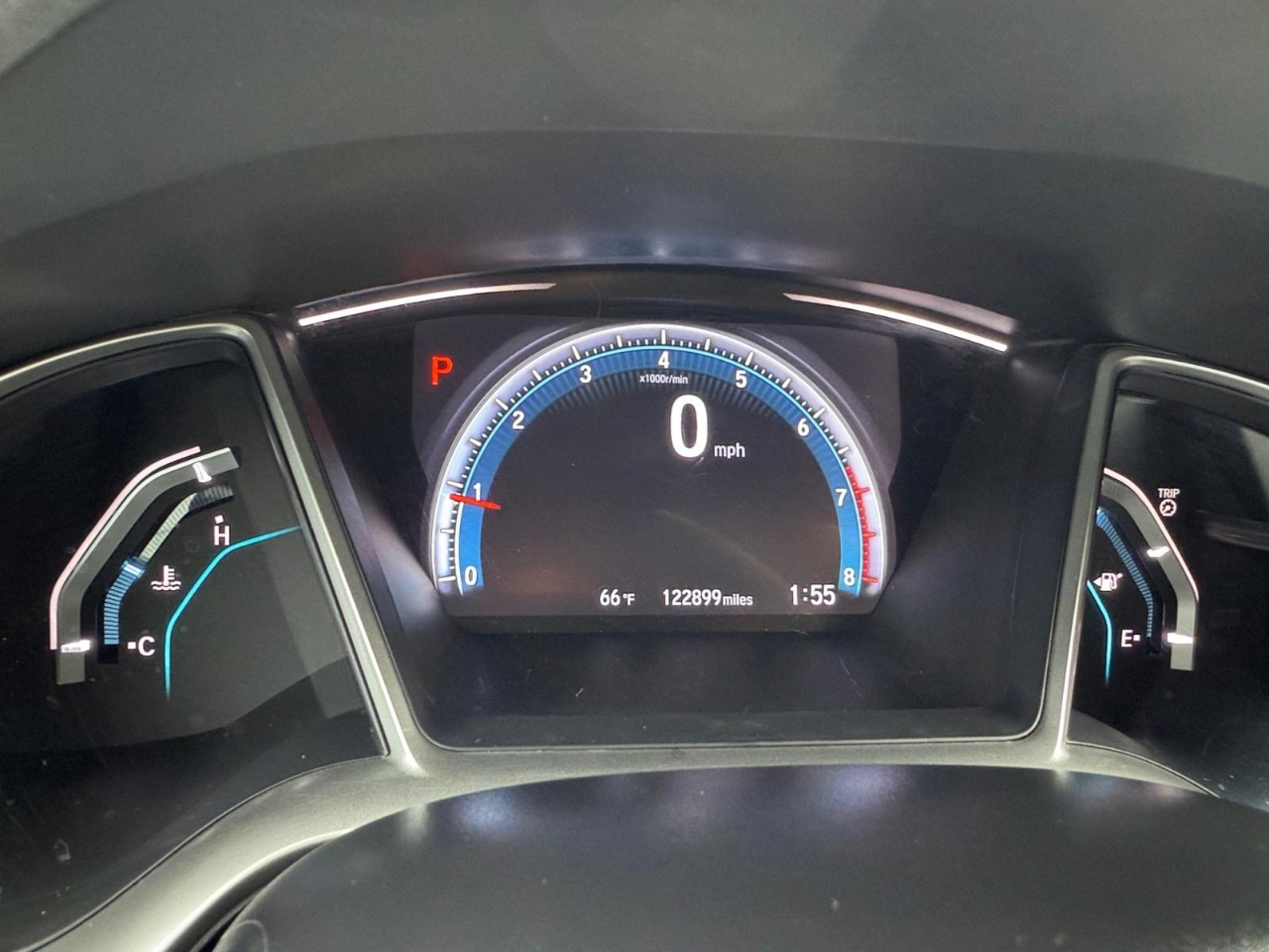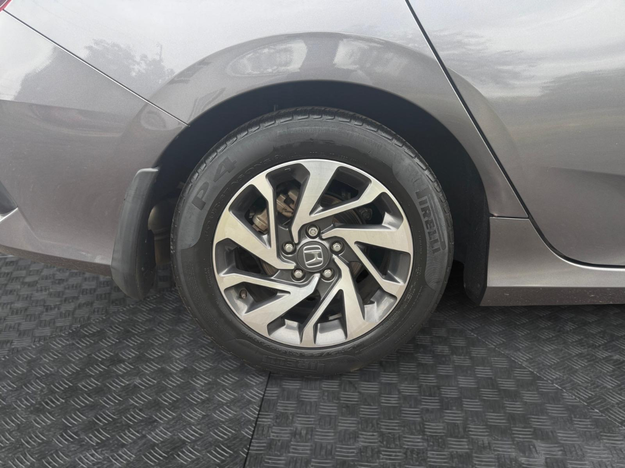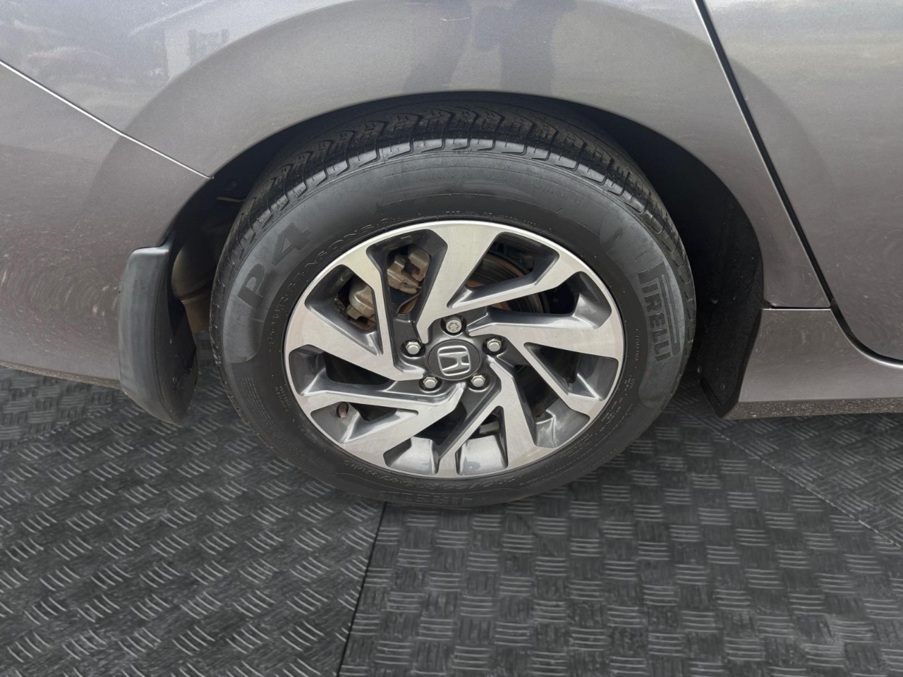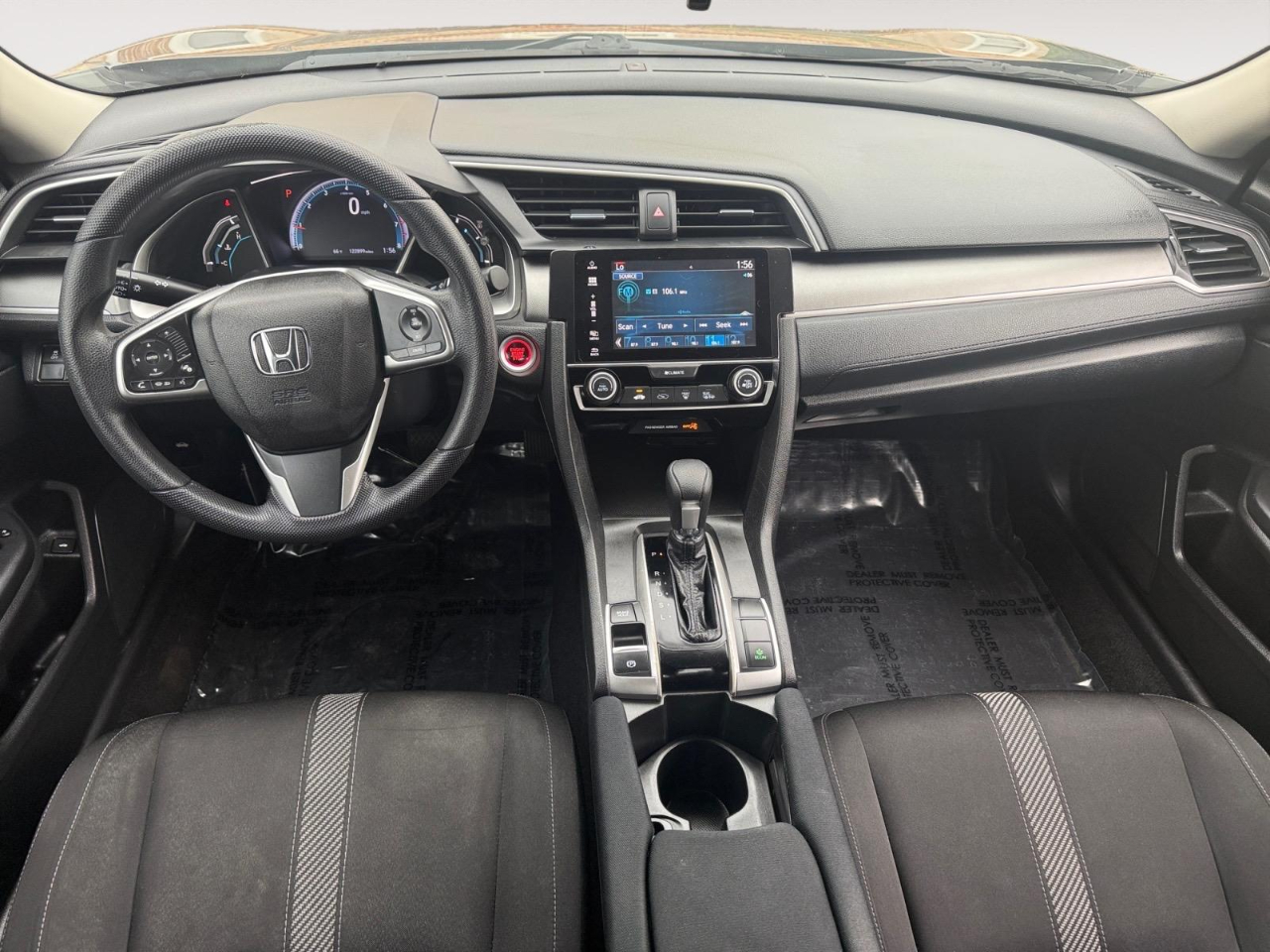 31/40 City/Highway MPG Gray 2018 Honda Civic EX FWD CVT 2.0L I4 DOHC 16V i-VTEC Cloth. Awards: * 2018 KBB.com 10 Most Awarded Brands * 2018 KBB.com Brand Image Awards Kelley Blue Book Brand Image Awards are based on the Brand Watch(tm) study from Kelley Blue Book Market Intelligence. Award calculated among non-luxury shoppers. For more information, visit www.kbb.com. Kelley Blue Book is a registered trademark of Kelley Blue Book Co., Inc. Cloth, 16" Alloy Wheels, 4-Wheel Disc Brakes, 8 Speakers, ABS brakes, Air Conditioning, Alloy wheels, AM/FM radio, Apple CarPlay/Android Auto, Automatic temperature control, Brake assist, Bumpers: body-color, Cloth Seat Trim, Compass, Delay-off headlights, Driver door bin, Driver vanity mirror, Dual front impact airbags, Dual front side impact airbags, Electronic Stability Control, Emergency communication system: HondaLink, Exterior Parking Camera Rear, Four wheel independent suspension, Front anti-roll bar, Front Bucket Seats, Front Center Armrest, Front reading lights, Fully automatic headlights, Heated door mirrors, Illuminated entry, Low tire pressure warning, Occupant sensing airbag, Outside temperature display, Overhead airbag, Panic alarm, Passenger door bin, Passenger vanity mirror, Power door mirrors, Power moonroof, Power steering, Power windows, Radio data system, Radio: 180-Watt AM/FM/HD/SiriusXM Audio System, Rear anti-roll bar, Rear seat center armrest, Rear window defroster, Reclining Front Bucket Seats, Remote keyless entry, Security system, Speed control, Speed-sensing steering, Speed-Sensitive Wipers, Split folding rear seat, Steering wheel mounted audio controls, Tachometer, Telescoping steering wheel, Tilt steering wheel, Traction control, Trip computer, and Variably intermittent wipers.