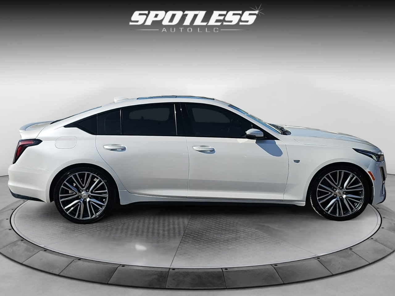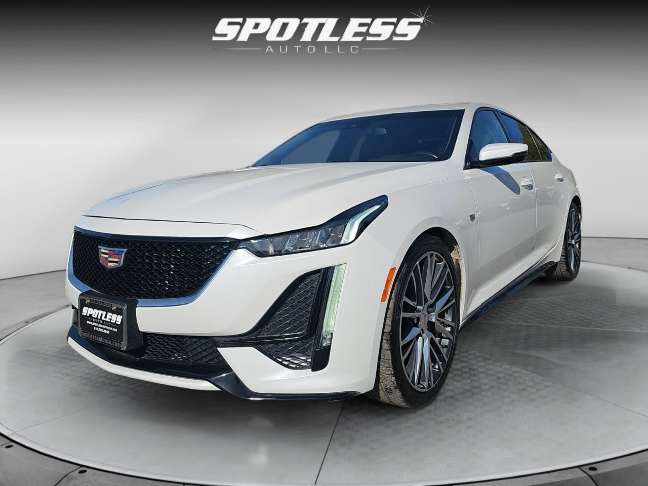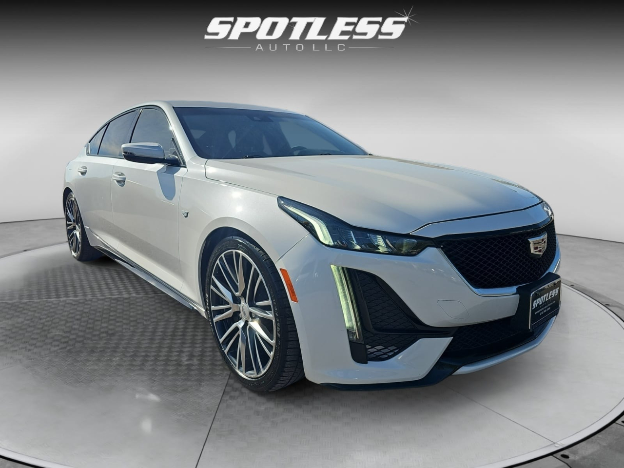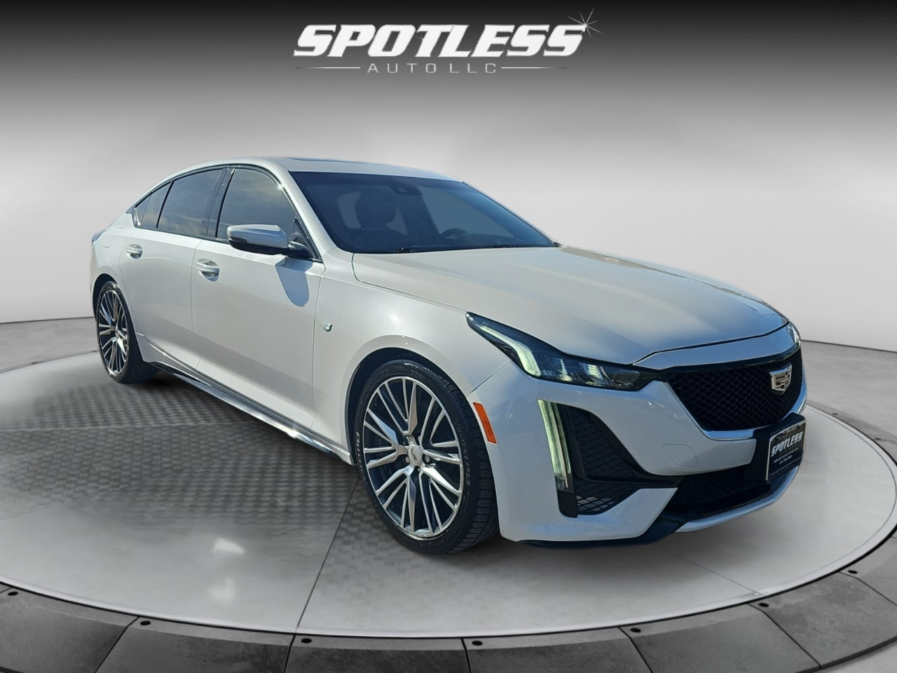 Recent Arrival! Odometer is 10779 miles below market average! 23/32 City/Highway MPG Crystal White Tricoat 2020 Cadillac CT5 Sport RWD 10-Speed Automatic 2.0L I4 Turbocharged DOHC 16V LEV3-SULEV30 237hp Awards: * JD Power Initial Quality Study Driver Awareness Plus Package (8" Diagonal Color Reconfigurable DIC Display, Following Distance Indicator, Head-Up Display, IntelliBeam Automatic High Beam On/Off, and Lane Keep Assist w/Lane Departure Warning), Lighting Package (Front Cornering Lamps, Illuminating Door Handles, and Illuminating Front Sill Plates), Navigation & Bose Premium Audio Package, Preferred Equipment Group 1SE (Automatic Emergency Braking, Body-Color Heated Pwr-Adjustable Outside Mirrors, Dual Diagonal Color Driver Information Center, HD Rear Vision Camera, Inside Rear-View Auto-Dimming Mirror, LED Reflective Windshield Alert, Manual Tilt & Telescoping Steering Column, and Rear Park Assist), Radio: Cadillac User Experience w/Embedded Nav (Bose Performance Series Premium 15-Speaker System and SiriusXM Radio), 4-Wheel Disc Brakes, 9 Speakers, ABS brakes, Air Conditioning, Alloy wheels, AM/FM radio: SiriusXM, Apple CarPlay/Android Auto, Auto-dimming door mirrors, Auto-dimming Rear-View mirror, Automatic Stop/Start w/Disable, Automatic temperature control, Brake assist, Bumpers: body-color, Compass, Delay-off headlights, Driver 4-Way Power Lumbar Seat Adjuster, Driver door bin, Driver vanity mirror, Dual front impact airbags, Dual front side impact airbags, Electronic Stability Control, Emergency communication system: OnStar and Cadillac connected services capable, Exterior Parking Camera Rear, Four wheel independent suspension, Front anti-roll bar, Front Bucket Seats, Front Center Armrest, Front dual zone A/C, Front License Plate Bracket, Front Passenger 4-Way Power Lumbar Seat Adjuster, Front reading lights, Fully automatic headlights, Garage door transmitter, HD Radio, Heated door mirrors, Illuminated entry, Knee airbag, Leather steering wheel, Leatherette Seating Surfaces, Low tire pressure warning, Memory seat, Occupant sensing airbag, Outside temperature display, Overhead airbag, Overhead console, Panic alarm, Passenger door bin, Passenger vanity mirror, Power door mirrors, Power driver seat, Power passenger seat, Power steering, Power windows, Premium 9-Speaker Audio System Feature, Radio data system, Radio: Cadillac User Experience, Rain sensing wipers, Rear anti-roll bar, Rear reading lights, Rear seat center armrest, Rear window defroster, Remote keyless entry, Speed control, Speed-sensing steering, Split folding rear seat, Spoiler, Steering wheel mounted audio controls, Tachometer, Telescoping steering wheel, Tilt steering wheel, Traction control, Trip computer, Turn signal indicator mirrors, UltraView Dual Pane Sunroof, Variably intermittent wipers, Voltmeter, Wheels: 19" Premium Painted Alloy w/Pearl Nickel Finish, Wheels: 20" Polished Alloy (LPO), and Wheels: 20" Transit Steel.