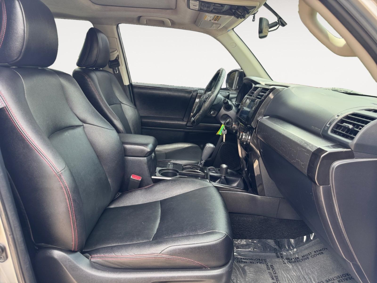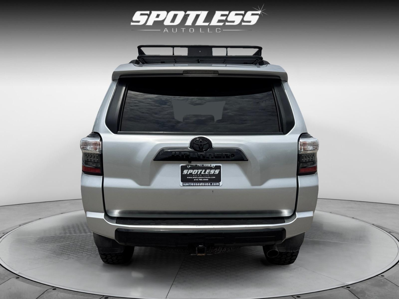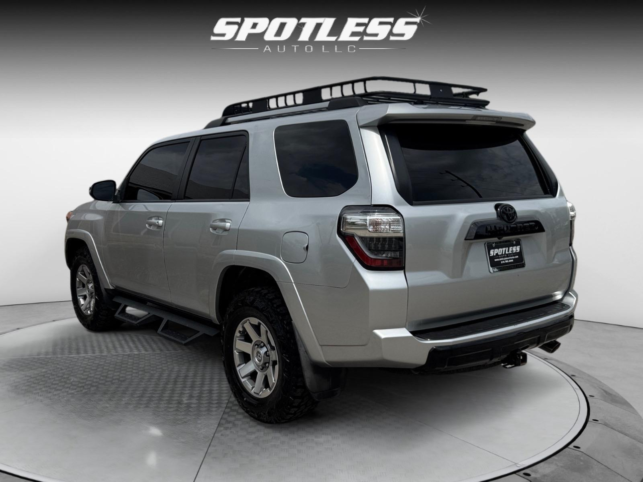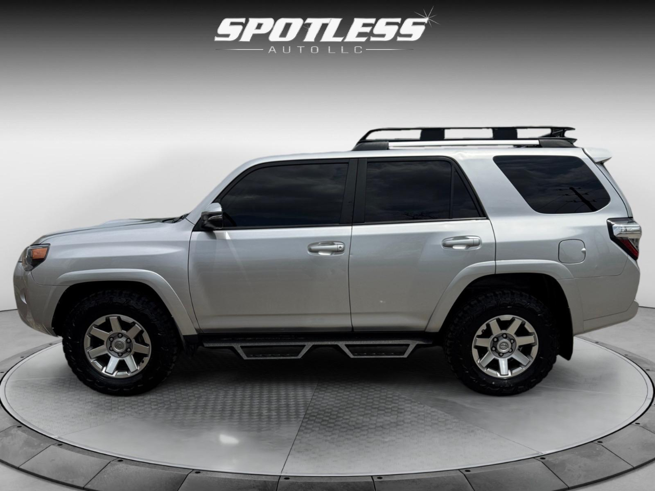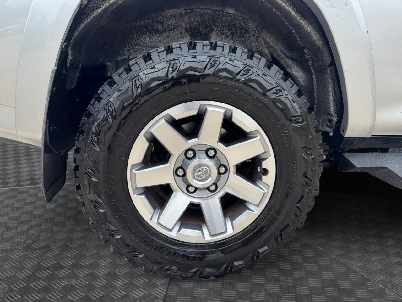 Silver 2016 Toyota 4Runner SR5 4WD 5-Speed Automatic with Overdrive 4.0L V6 SMPI DOHC 4WD, Cloth. Awards: * 2016 KBB.com Best Resale Value Awards 4WD, Cloth, 17" x 7.0" 6-Spoke Alloy Wheels, 3.727 Axle Ratio, 4-Wheel Disc Brakes, 8 Speakers, ABS brakes, Air Conditioning, Alloy wheels, AM/FM radio: SiriusXM, Anti-whiplash front head restraints, Brake assist, Bumpers: body-color, CD player, Driver door bin, Driver vanity mirror, Dual front impact airbags, Dual front side impact airbags, Electronic Stability Control, Exterior Parking Camera Rear, Front anti-roll bar, Front Bucket Seats, Front Center Armrest, Front fog lights, Front reading lights, Front wheel independent suspension, Heated door mirrors, Illuminated entry, Knee airbag, Leather Shift Knob, Leather steering wheel, Low Fabric Seat Trim, Low tire pressure warning, Occupant sensing airbag, Outside temperature display, Overhead airbag, Overhead console, Panic alarm, Passenger door bin, Passenger vanity mirror, Power door mirrors, Power driver seat, Power steering, Power windows, Radio: Entune Audio Plus w/Connected Navigation, Rear anti-roll bar, Rear seat center armrest, Rear window defroster, Rear window wiper, Remote keyless entry, Roof rack: rails only, Speed control, Speed-sensing steering, Split folding rear seat, Spoiler, Steering wheel mounted audio controls, Tachometer, Telescoping steering wheel, Tilt steering wheel, Traction control, Trip computer, Variably intermittent wipers, and Voltmeter.