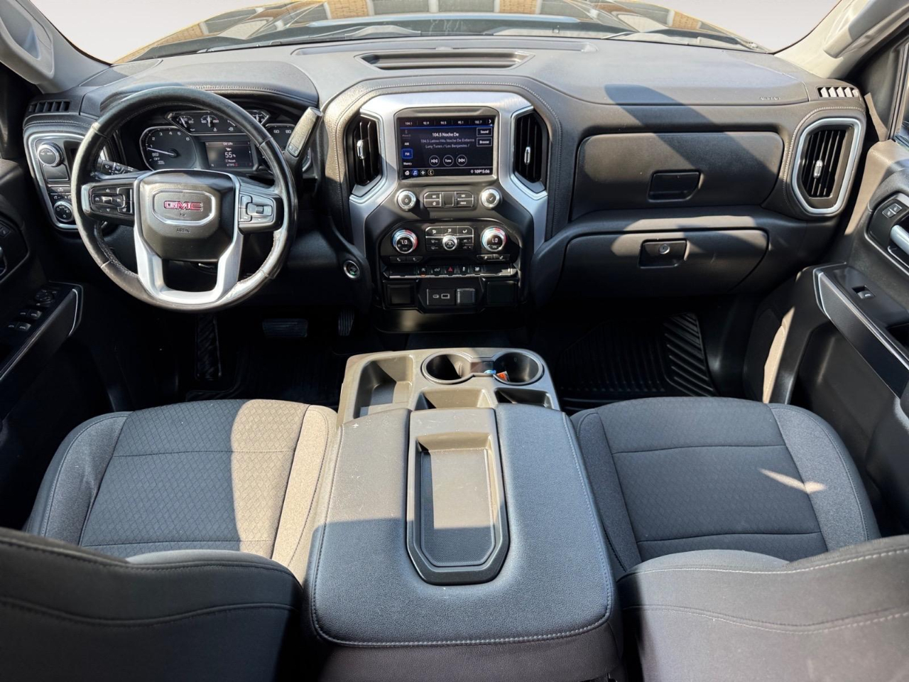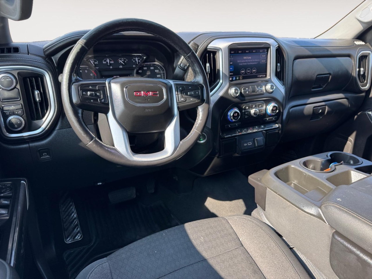 Odometer is 9677 miles below market average! Onyx Black 2021 GMC Sierra 1500 SLE RWD 8-Speed Automatic EcoTec3 5.3L V8 8-Speed Automatic, Black Cloth. Preferred Equipment Group 3SA (4G LTE Wi-Fi Hotspot Capable, Chrome Grille, Color-Keyed Carpeting Floor Covering, Compass, Deep-Tinted Glass, Front Rubberized-Vinyl Floor Mats, GMC Connected Access Capable, OnStar & GMC Connected Services Capable, Power Door Locks, Power Front Windows w/Driver Express Up/Down, Power Front Windows w/Passenger Express Down, Power Rear Windows w/Express Down, Rear Rubberized-Vinyl Floor Mats, and Steering Wheel Audio Controls), SLE Convenience Package (12-Volt Rear Auxiliary Power Outlet, Dual-Zone Automatic Climate Control, Electric Rear-Window Defogger, Electrical Lock Control Steering Column, Heated Steering Wheel, Keyless Open & Start, LED Cargo Area Lighting, Manual Tilt-Wheel & Telescoping Steering Column, Rear Dual USB Charging-Only Ports, Rear Wheelhouse Liners, Remote Vehicle Starter System, and Theft Deterrent System (Unauthorized Entry)), SLE Value Package (Auto-Locking Rear Differential), Trailering Package (Hitch Guidance), 8-Speed Automatic, Black Cloth, 10-Way Power Driver Seat Adjuster w/Lumbar, 170 Amp Alternator, 20" x 9" Polished Aluminum Wheels, 220 Amp Alternator, 3.23 Rear Axle Ratio, 3.42 Rear Axle Ratio, 4-Way Manual Passenger Seat Adjuster, 4-Wheel Disc Brakes, 6 Speakers, 6-Speaker Audio System Feature, ABS brakes, Air Conditioning, Alloy wheels, AM/FM radio: SiriusXM, Apple CarPlay/Android Auto, Automatic temperature control, Auxiliary External Transmission Oil Cooler, Brake assist, Bumpers: chrome, Cloth Seat Trim, Delay-off headlights, Driver door bin, Driver vanity mirror, Dual front impact airbags, Dual front side impact airbags, Electronic Stability Control, External Engine Oil Cooling, Front 40/20/40 Split-Bench Seat, Front anti-roll bar, Front Center Armrest w/Storage, Front dual zone A/C, Front License Plate Kit, Front reading lights, Front wheel independent suspension, Fully automatic headlights, Heated door mirrors, Heated Driver & Front Outboard Passenger Seating, Heated front seats, Heated steering wheel, Heavy Duty Suspension, Illuminated entry, Low tire pressure warning, Occupant sensing airbag, Outside temperature display, Overhead airbag, Overhead console, Panic alarm, Passenger door bin, Passenger vanity mirror, Power door mirrors, Power driver seat, Power steering, Power windows, Premium audio system: GMC Infotainment System, Radio data system, Radio: GMC Infotainment Audio System, Rear reading lights, Rear step bumper, Rear window defroster, Remote keyless entry, Security system, SiriusXM Radio, Speed control, Speed-sensing steering, Split folding rear seat, Standard Tailgate, Steering wheel mounted audio controls, Tachometer, Telescoping steering wheel, Tilt steering wheel, Traction control, Trip computer, Variably intermittent wipers, Voltmeter, and Wheels: 17" x 8" Bright Silver Painted Aluminum.