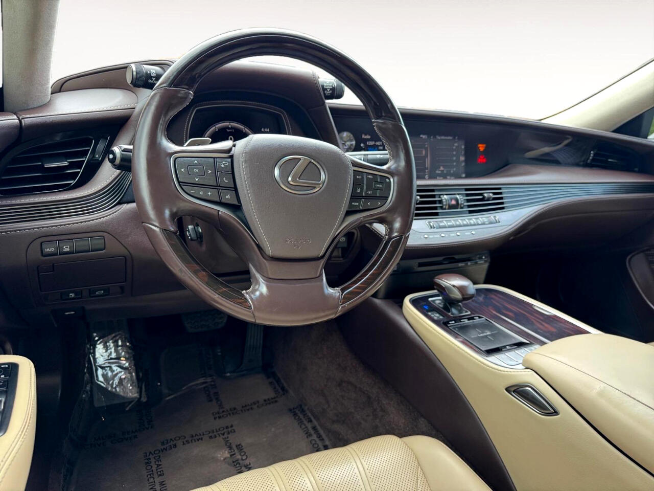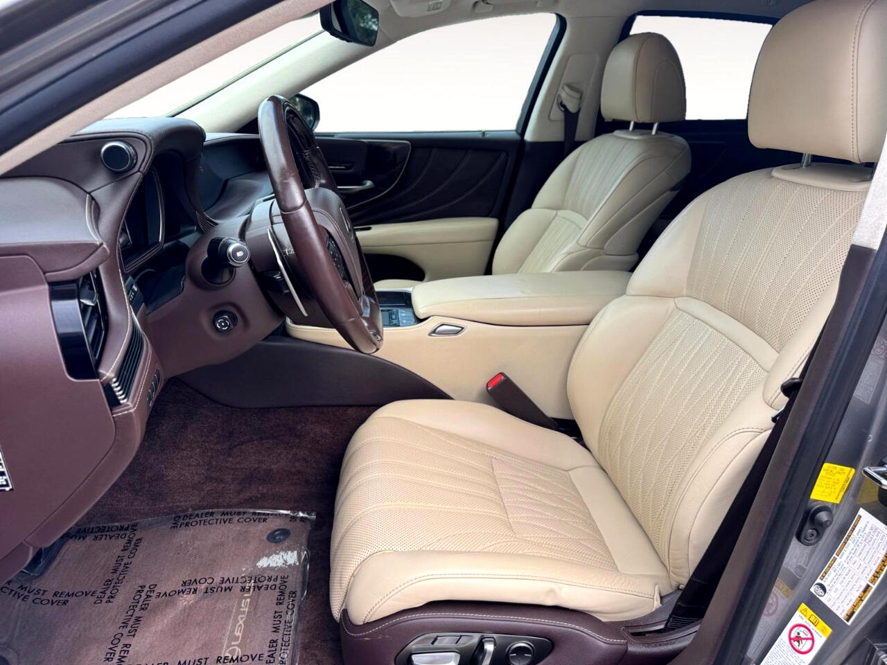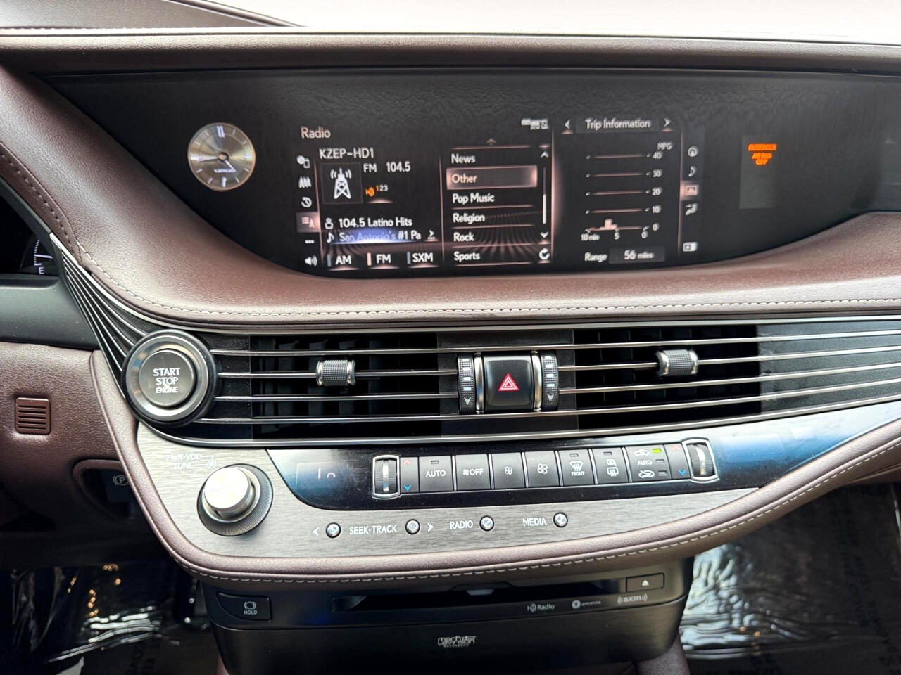 19/30 City/Highway MPG Brown 2018 Lexus LS 500 Base RWD 10-Speed Automatic 3.5L V6 DOHC 24V Leather. Awards: * 2018 KBB.com Brand Image Awards * 2018 KBB.com 10 Most Awarded Brands Leather, 12 Speakers, 4-Wheel Disc Brakes, ABS brakes, Air Conditioning, Alloy wheels, AM/FM radio: SiriusXM, Auto High-beam Headlights, Auto tilt-away steering wheel, Auto-dimming door mirrors, Auto-dimming Rear-View mirror, Automatic temperature control, Brake assist, Bumpers: body-color, CD player, Compass, Delay-off headlights, Door auto-latch, Driver door bin, Driver vanity mirror, Dual front impact airbags, Dual front side impact airbags, DVD-Audio, Electronic Stability Control, Emergency communication system, Exterior Parking Camera Rear, Four wheel independent suspension, Front anti-roll bar, Front Bucket Seats, Front Center Armrest, Front dual zone A/C, Front reading lights, Fully automatic headlights, Garage door transmitter: HomeLink, Genuine wood console insert, Genuine wood door panel insert, Head restraints memory, Heated door mirrors, Heated front seats, Heated steering wheel, Heated/Cooled Front Bucket Seats, Illuminated entry, Knee airbag, Leather Shift Knob, Leather steering wheel, Low tire pressure warning, Memory seat, Navigation System, Occupant sensing airbag, Outside temperature display, Overhead airbag, Overhead console, Panic alarm, Passenger door bin, Passenger vanity mirror, Power adjustable front head restraints, Power door mirrors, Power driver seat, Power moonroof, Power passenger seat, Power steering, Power windows, Radio data system, Radio: Pioneer DVD Audio System w/Navigation, Rain sensing wipers, Rear anti-roll bar, Rear reading lights, Rear seat center armrest, Rear Window Blind, Rear window defroster, Remote keyless entry, Security system, Smooth Leather Seat Trim, Speed control, Speed-sensing steering, Speed-Sensitive Wipers, Steering wheel memory, Steering wheel mounted audio controls, Tachometer, Telescoping steering wheel, Tilt steering wheel, Traction control, Trip computer, Turn signal indicator mirrors, Ultra Suede Headliner, Variably intermittent wipers, Ventilated front seats, and Wheels: 19" Cast Aluminum Resonator.