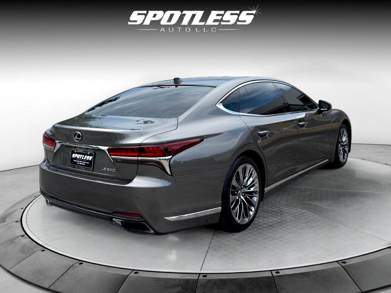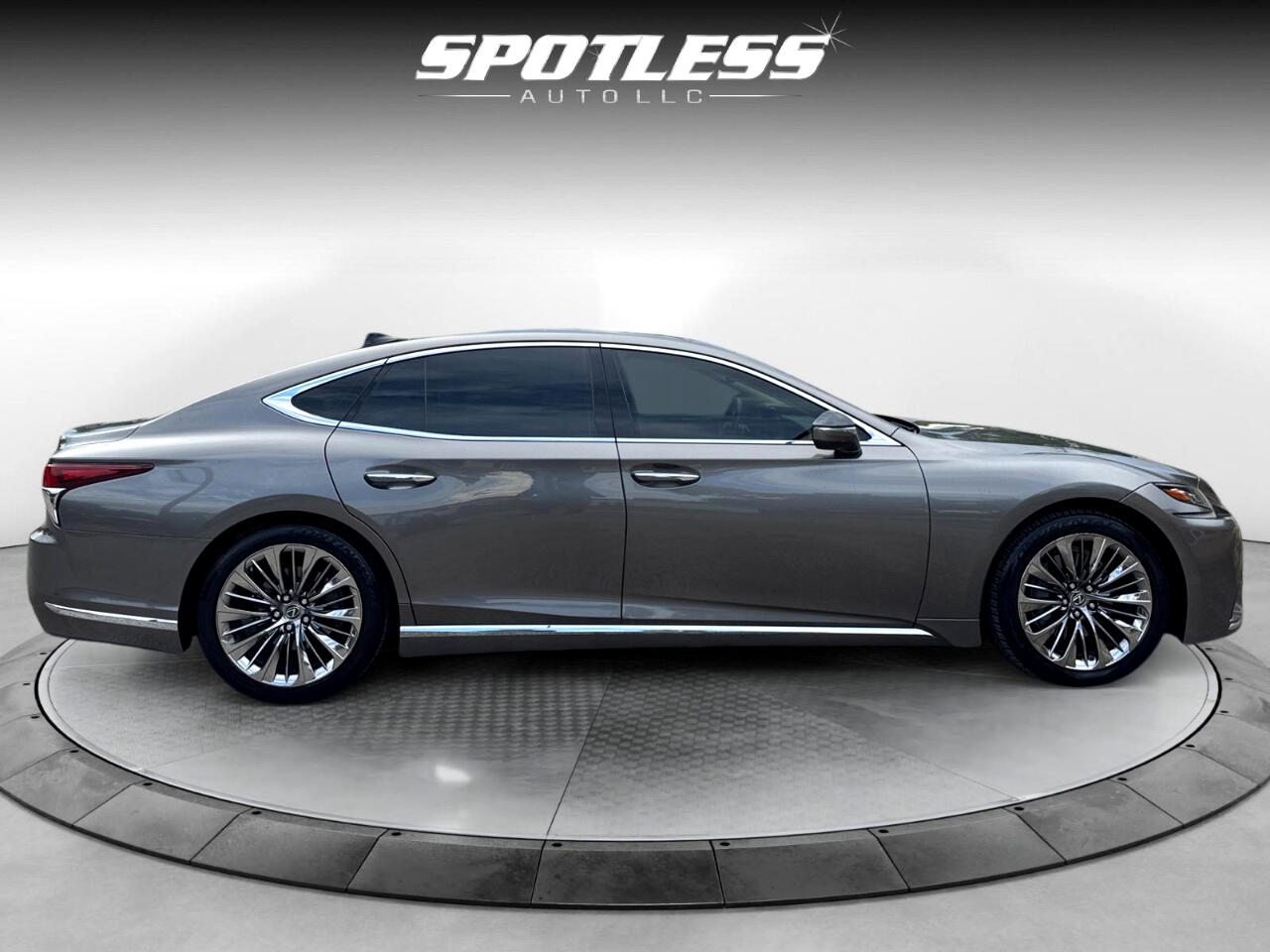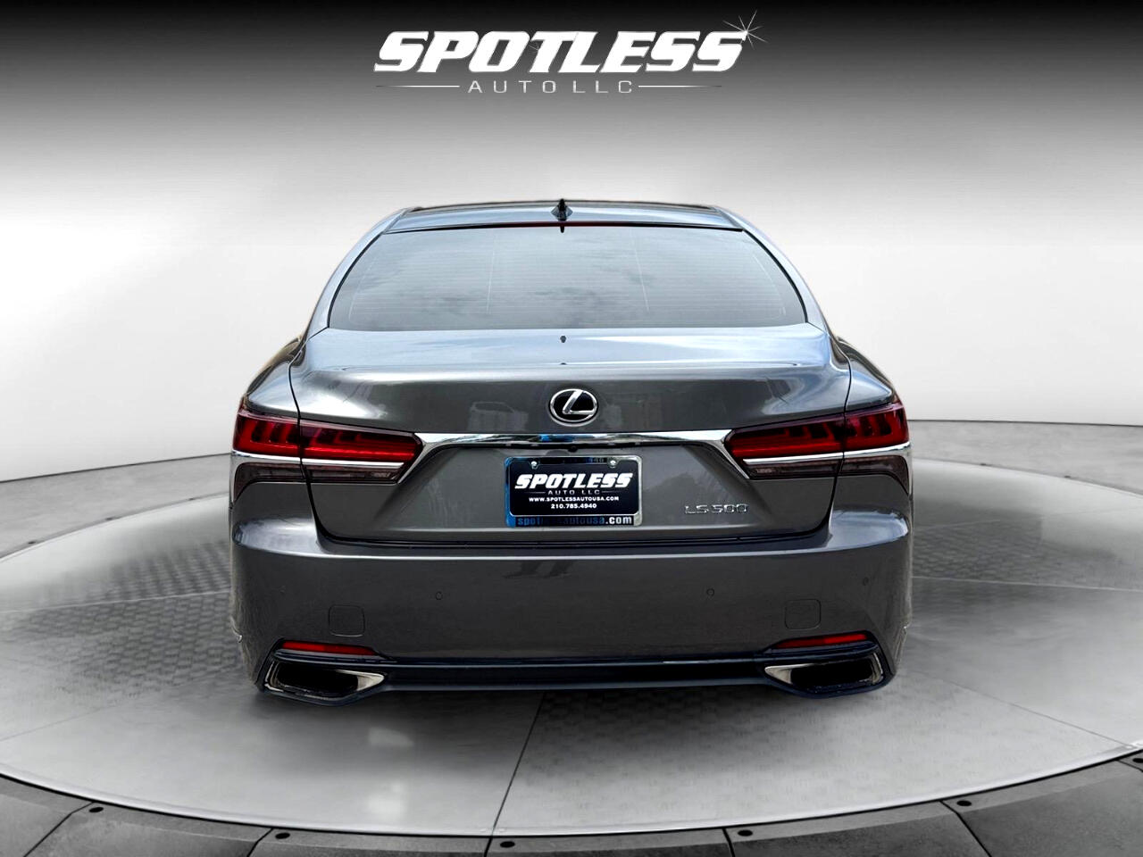 19/30 City/Highway MPG Brown 2018 Lexus LS 500 Base RWD 10-Speed Automatic 3.5L V6 DOHC 24V Leather. Awards: * 2018 KBB.com Brand Image Awards * 2018 KBB.com 10 Most Awarded Brands Leather, 12 Speakers, 4-Wheel Disc Brakes, ABS brakes, Air Conditioning, Alloy wheels, AM/FM radio: SiriusXM, Auto High-beam Headlights, Auto tilt-away steering wheel, Auto-dimming door mirrors, Auto-dimming Rear-View mirror, Automatic temperature control, Brake assist, Bumpers: body-color, CD player, Compass, Delay-off headlights, Door auto-latch, Driver door bin, Driver vanity mirror, Dual front impact airbags, Dual front side impact airbags, DVD-Audio, Electronic Stability Control, Emergency communication system, Exterior Parking Camera Rear, Four wheel independent suspension, Front anti-roll bar, Front Bucket Seats, Front Center Armrest, Front dual zone A/C, Front reading lights, Fully automatic headlights, Garage door transmitter: HomeLink, Genuine wood console insert, Genuine wood door panel insert, Head restraints memory, Heated door mirrors, Heated front seats, Heated steering wheel, Heated/Cooled Front Bucket Seats, Illuminated entry, Knee airbag, Leather Shift Knob, Leather steering wheel, Low tire pressure warning, Memory seat, Navigation System, Occupant sensing airbag, Outside temperature display, Overhead airbag, Overhead console, Panic alarm, Passenger door bin, Passenger vanity mirror, Power adjustable front head restraints, Power door mirrors, Power driver seat, Power moonroof, Power passenger seat, Power steering, Power windows, Radio data system, Radio: Pioneer DVD Audio System w/Navigation, Rain sensing wipers, Rear anti-roll bar, Rear reading lights, Rear seat center armrest, Rear Window Blind, Rear window defroster, Remote keyless entry, Security system, Smooth Leather Seat Trim, Speed control, Speed-sensing steering, Speed-Sensitive Wipers, Steering wheel memory, Steering wheel mounted audio controls, Tachometer, Telescoping steering wheel, Tilt steering wheel, Traction control, Trip computer, Turn signal indicator mirrors, Ultra Suede Headliner, Variably intermittent wipers, Ventilated front seats, and Wheels: 19" Cast Aluminum Resonator.
