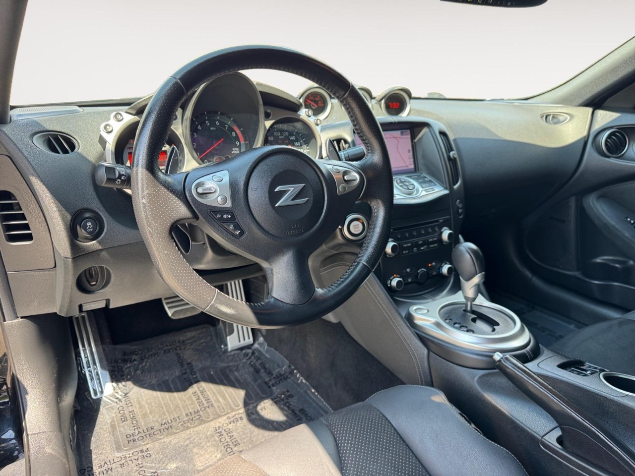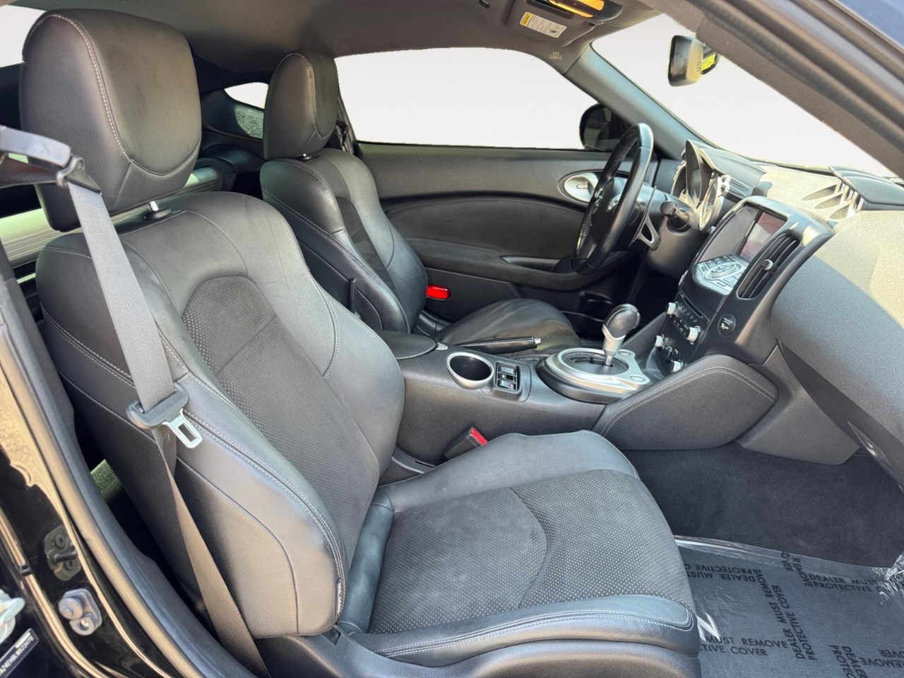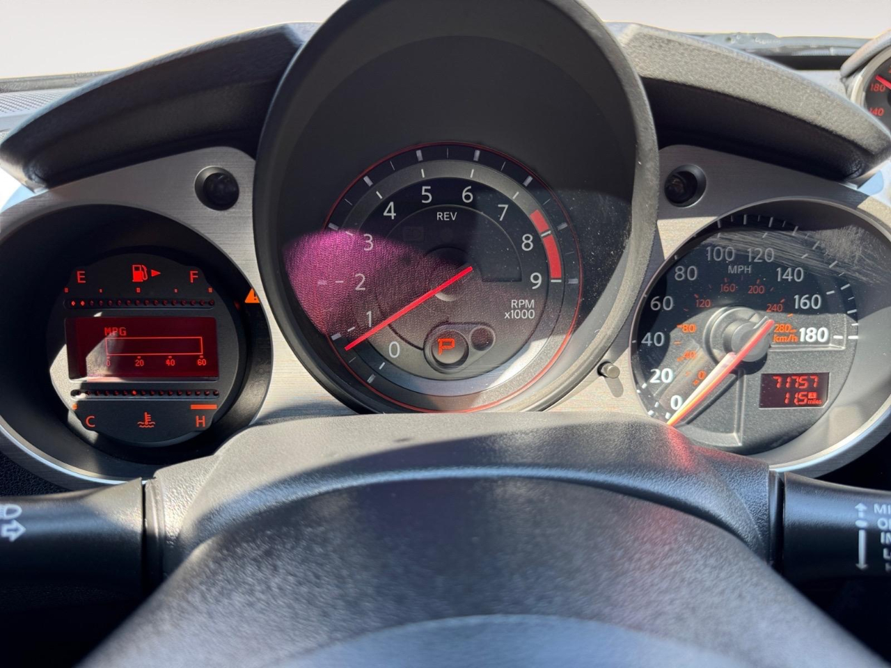 19/26 City/Highway MPG Magnetic Black Pearl 2020 Nissan 370Z Sport RWD 7-Speed Automatic 3.7L V6 4-Wheel Disc Brakes, 8 Speakers, ABS brakes, Air Conditioning, Alloy wheels, AM/FM radio: SiriusXM, Anti-whiplash front head restraints, Auto-dimming Rear-View mirror, Automatic temperature control, Body Color Splash Guards, Brake assist, Bumpers: body-color, Carpeted Floor Mat, Carpeted Trunk Mat, CD player, Delay-off headlights, Driver door bin, Driver vanity mirror, Dual front impact airbags, Dual front side impact airbags, DVD-Audio, Electronic Stability Control, First Aid Kit, Four wheel independent suspension, Front anti-roll bar, Front Bucket Seats, Front Center Armrest, Front Heated Sport Seats, Front reading lights, Fully automatic headlights, Garage door transmitter: HomeLink, Heated door mirrors, Heated front seats, High intensity discharge headlights: Bi-Xenon, Illuminated entry, Illuminated Kick Plates, Leather Shift Knob, Leather steering wheel, Low tire pressure warning, Navigation System, Occupant sensing airbag, Outside temperature display, Overhead airbag, Panic alarm, Passenger door bin, Passenger vanity mirror, Power door mirrors, Power driver seat, Power passenger seat, Power steering, Power windows, Radio data system, Radio: 2 DIN AM/FM/CD Bose Audio System, Rear anti-roll bar, Rear window defroster, Remote keyless entry, Security system, Speed control, Speed-sensing steering, Spoiler, Steering wheel mounted audio controls, Synthetic Suede & Leather Seat Trim, Tachometer, Tilt steering wheel, Traction control, Trip computer, Variably intermittent wipers, Voltmeter, and Wheels: 19" x 9" Fr 19" x 10" Rr RAYS Forged Alloy.
