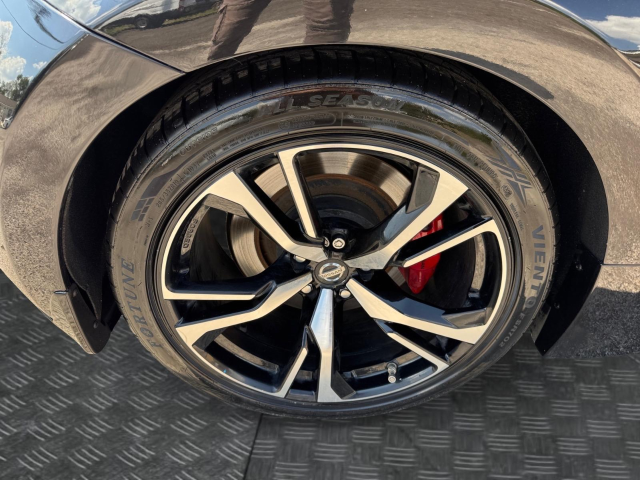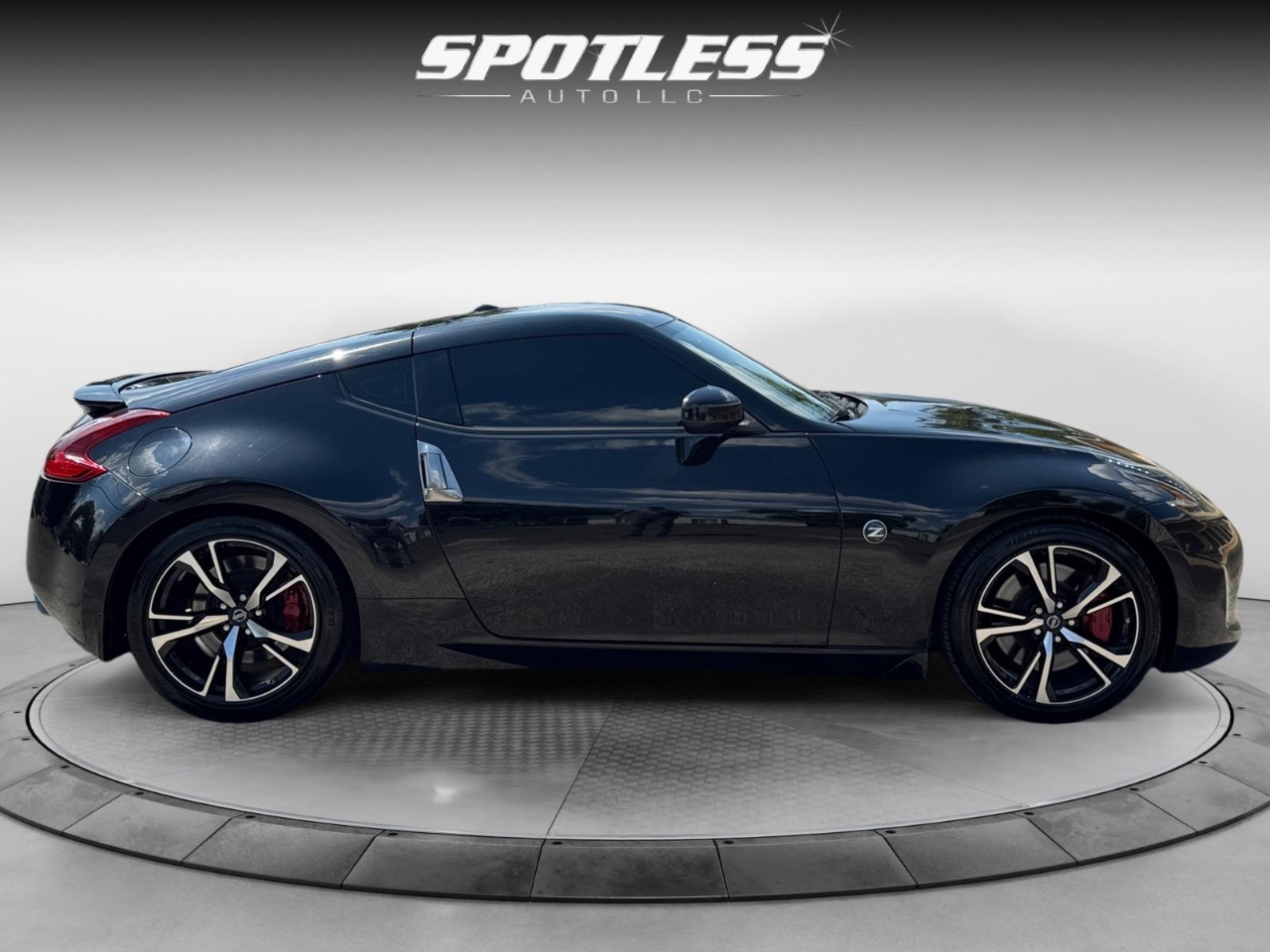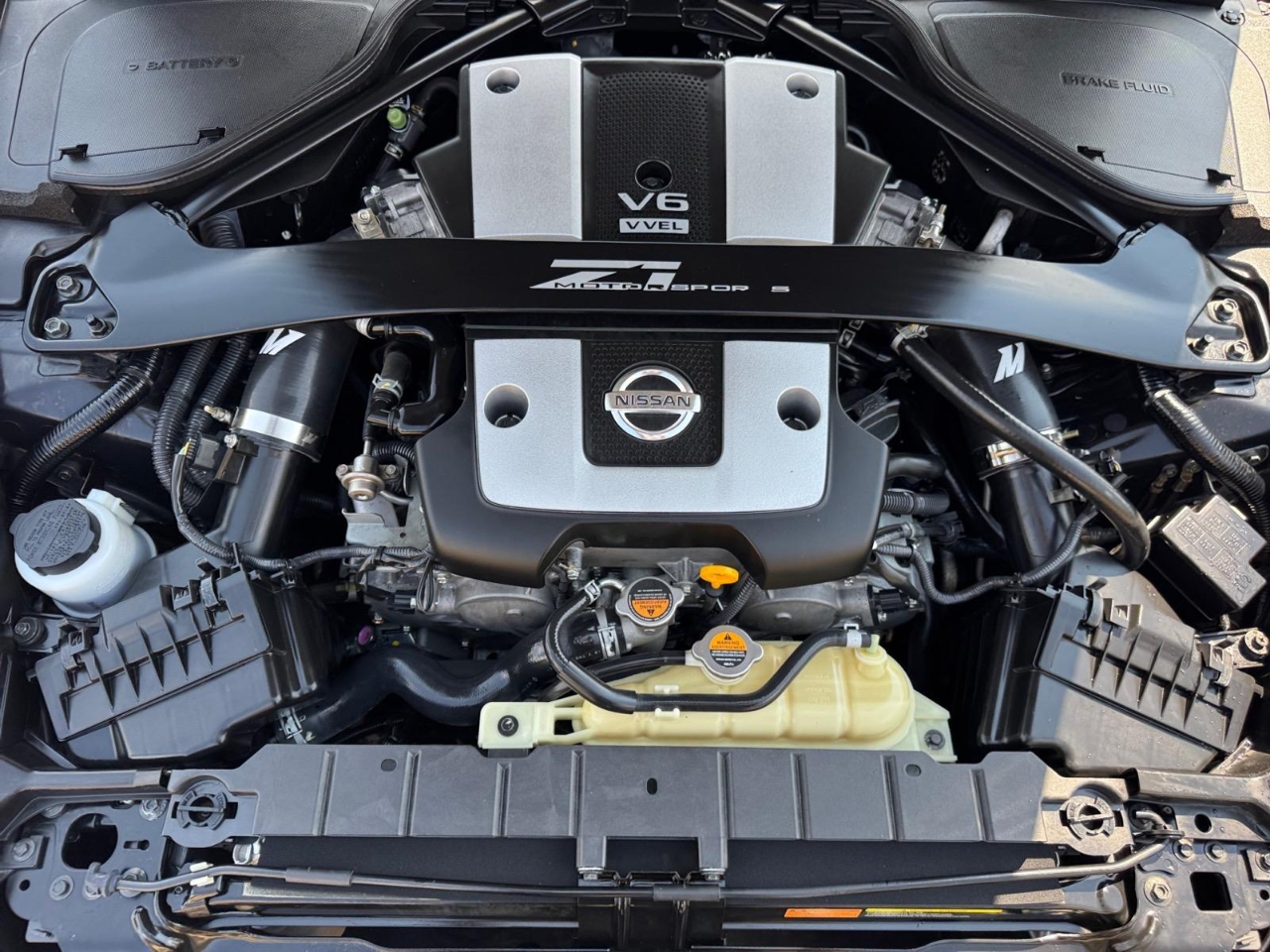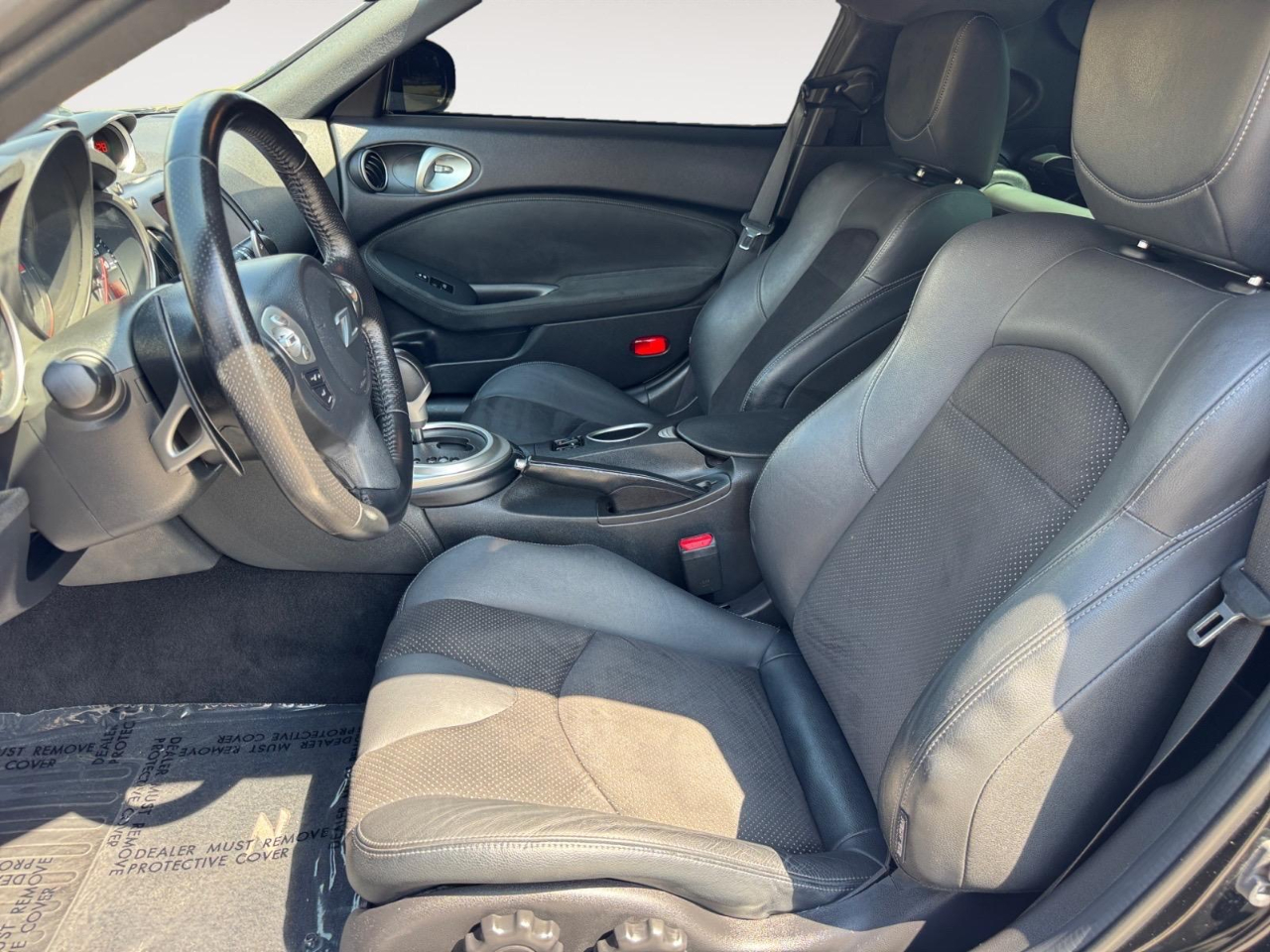 19/26 City/Highway MPG Magnetic Black Pearl 2020 Nissan 370Z Sport RWD 7-Speed Automatic 3.7L V6 4-Wheel Disc Brakes, 8 Speakers, ABS brakes, Air Conditioning, Alloy wheels, AM/FM radio: SiriusXM, Anti-whiplash front head restraints, Auto-dimming Rear-View mirror, Automatic temperature control, Body Color Splash Guards, Brake assist, Bumpers: body-color, Carpeted Floor Mat, Carpeted Trunk Mat, CD player, Delay-off headlights, Driver door bin, Driver vanity mirror, Dual front impact airbags, Dual front side impact airbags, DVD-Audio, Electronic Stability Control, First Aid Kit, Four wheel independent suspension, Front anti-roll bar, Front Bucket Seats, Front Center Armrest, Front Heated Sport Seats, Front reading lights, Fully automatic headlights, Garage door transmitter: HomeLink, Heated door mirrors, Heated front seats, High intensity discharge headlights: Bi-Xenon, Illuminated entry, Illuminated Kick Plates, Leather Shift Knob, Leather steering wheel, Low tire pressure warning, Navigation System, Occupant sensing airbag, Outside temperature display, Overhead airbag, Panic alarm, Passenger door bin, Passenger vanity mirror, Power door mirrors, Power driver seat, Power passenger seat, Power steering, Power windows, Radio data system, Radio: 2 DIN AM/FM/CD Bose Audio System, Rear anti-roll bar, Rear window defroster, Remote keyless entry, Security system, Speed control, Speed-sensing steering, Spoiler, Steering wheel mounted audio controls, Synthetic Suede & Leather Seat Trim, Tachometer, Tilt steering wheel, Traction control, Trip computer, Variably intermittent wipers, Voltmeter, and Wheels: 19" x 9" Fr 19" x 10" Rr RAYS Forged Alloy.