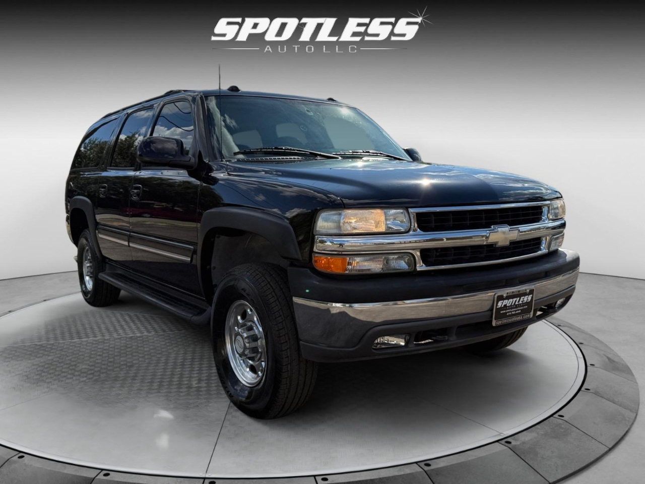 Smokin Asphalt 2005 Chevrolet Suburban 2500 LT 4WD 4-Speed Automatic HD with Overdrive Vortec 8.1L V8 SFI 4WD, Gray/Dark Charcoal Leather. Autoride Suspension Package, Heavy-Duty Handling/Trailering Suspension Package, Off-Road Skid Plate Package, 4WD, Gray/Dark Charcoal Leather, 1-Piece Removable Rear 3rd Row Bench, 16" x 6.5" Polished Forged Aluminum Wheels, 3.73 Rear Axle Ratio, 3rd row seats: bench, 4-Wheel Disc Brakes, 8 Speakers, ABS brakes, Air Conditioning, Alloy wheels, AM/FM radio, Auto-dimming Rear-View mirror, Black Roof-Mounted Luggage Rack, Bodyside moldings, Bumpers: chrome, Cassette, CD player, Compass, Driver & Right Front Passenger Side-Impact Airbags, Driver door bin, Driver vanity mirror, Dual front impact airbags, Electric Power Tilt-Sliding Sunroof w/Express-Open, Emergency communication system: OnStar, ETR AM/FM Stereo w/6-Disc In-Dash CD Changer, Front anti-roll bar, Front Center Armrest w/Storage, Front dual zone A/C, Front fog lights, Front reading lights, Front wheel independent suspension, Fully automatic headlights, Heated door mirrors, Heavy-Duty Air-to-Oil Auxiliary Transmission Oil Cooler, Heavy-Duty Rear Locking Differential, Illuminated entry, Leather steering wheel, Middle 60/40 Split-Folding Bench Seat, Occupant sensing airbag, Outside temperature display, Overhead console, Panic alarm, Passenger door bin, Passenger vanity mirror, Power door mirrors, Power driver seat, Power steering, Power windows, Radio data system, Rear air conditioning, Rear reading lights, Rear seat center armrest, Rear window defroster, Rear window wiper, Remote keyless entry, Roof rack: rails only, Security system, Speed control, Split folding rear seat, Steering wheel mounted audio controls, Tachometer, Tilt steering wheel, Tri-Zone Automatic Air Conditioning, Variably intermittent wipers, Voltmeter, and Weather band radio.
